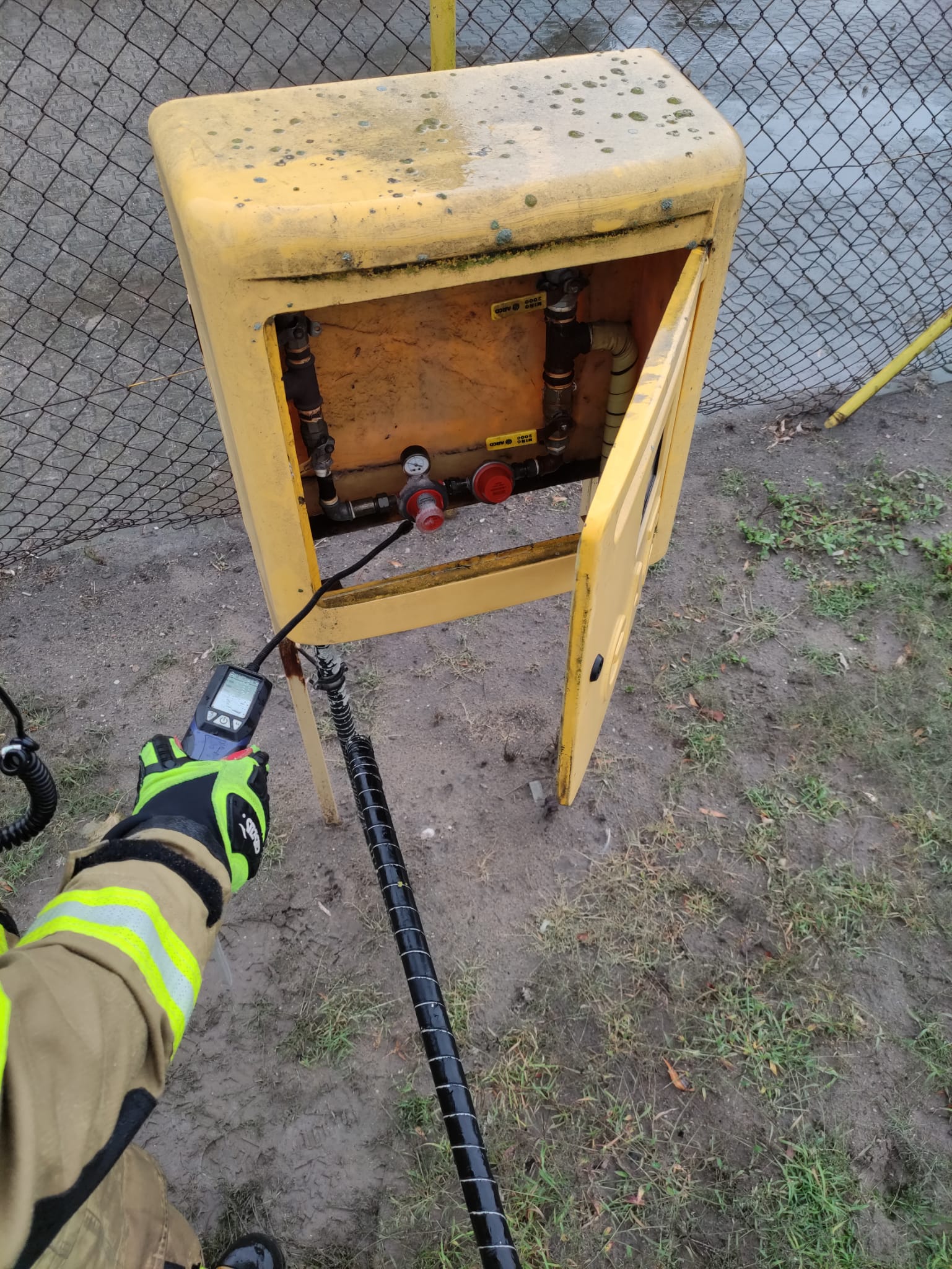 W pierwszej kolejności działania straży pożarnej polegały na zabezpieczeniu miejsca zdarzenia oraz wyznaczeniu strefy bezpiecznej w promieniu 100 metrów. W dalszej fazie działań strażacy, przy pomocy czujnika wielogazowego, dokonali pomiaru zagrożonego terenu w celu wykluczenia niebezpiecznych stężeń gazu, a także zakręcili zawory główne na zbiornikach gazu.