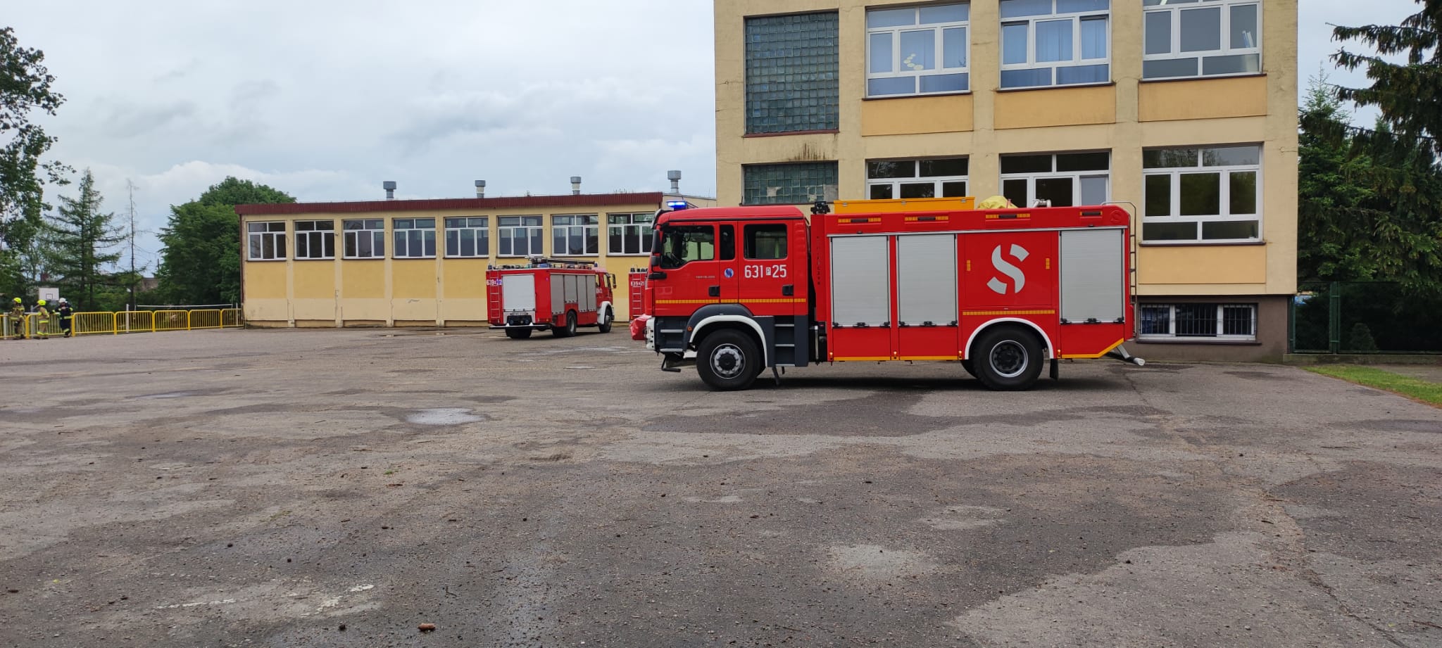 Po dojeździe straży pożarnej na miejsce zdarzenia okazało się, że pracownicy wykonujący ogrodzenie na boisku szkoły przewiercili gazociąg, z którego pod ciśnieniem wydobywa się gaz. Dyrekcja oraz pracownicy szkoły rozpoczęli ewakuację uczniów przed przybyciem jednostek ochrony przeciwpożarowej.