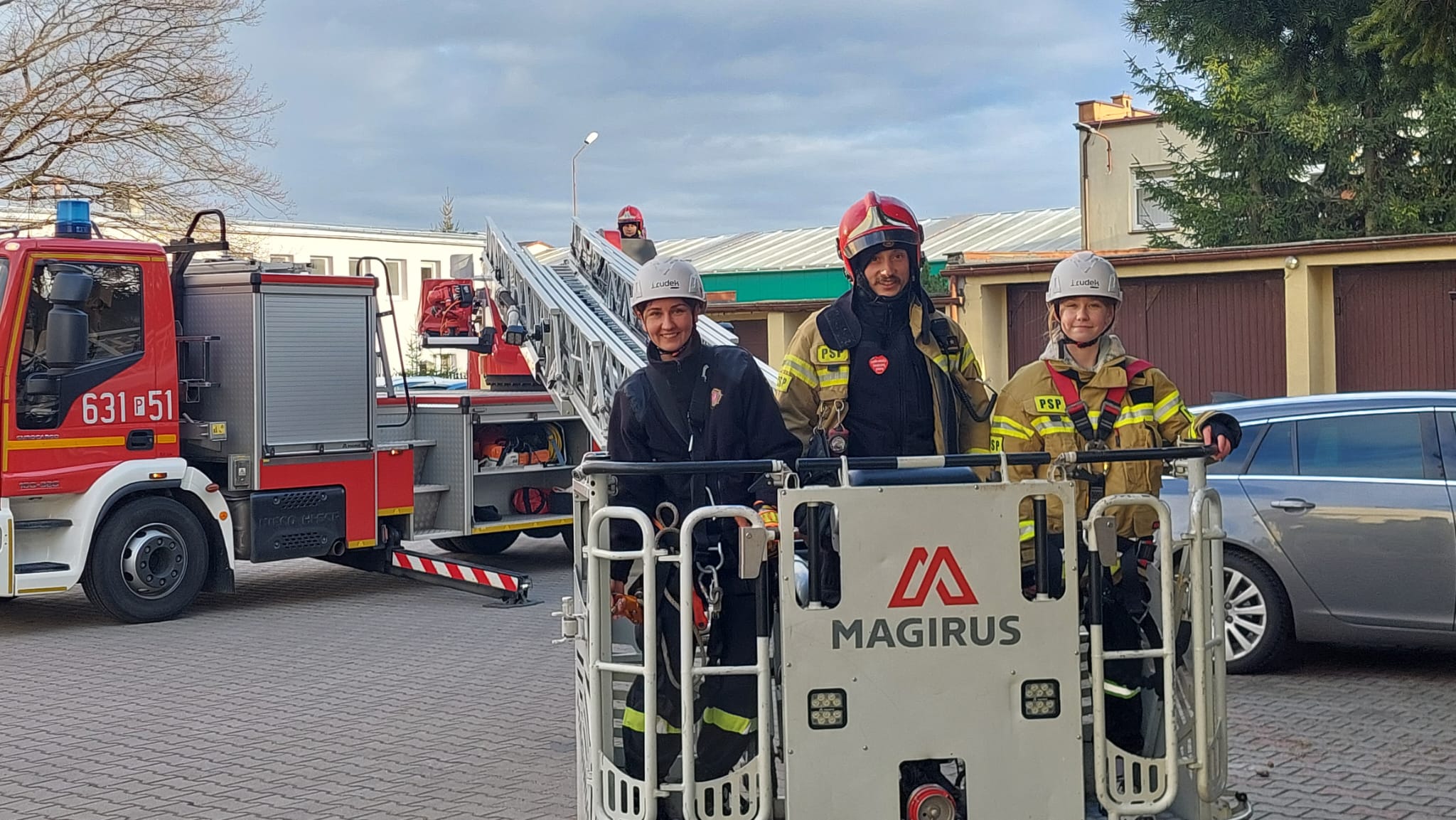 Po zmianie służby, wspólnym śniadaniu i zapoznaniu z załogą, która w tym dniu pełniła służbę obie druhny brały czynny udział w działaniach ratowniczych podczas pożaru garażu, gdzie poszkodowana została jedna osoba, którą trzeba było ewakuować, z płonącego warsztatu i udzielić kwalifikowanej pierwszej pomocy poszkodowanemu. Na szczęście to tylko ćwiczenia zorganizowane przez dowódcę JRG.