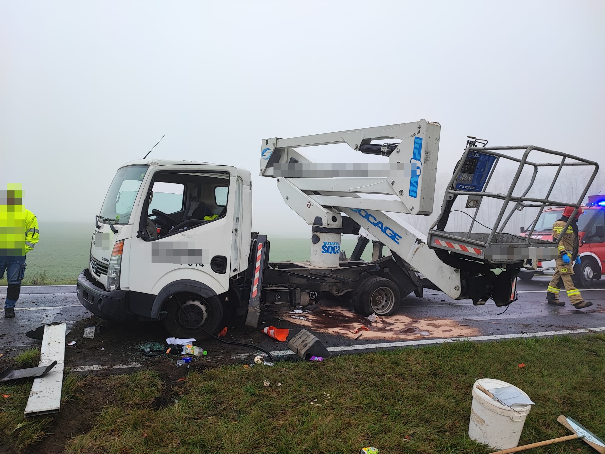 ZDERZENIE CIĘŻARÓWKI Z PODNOŚNIKIEM