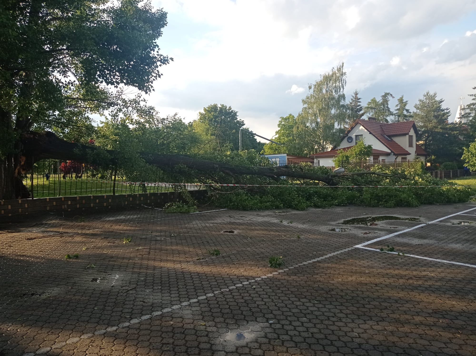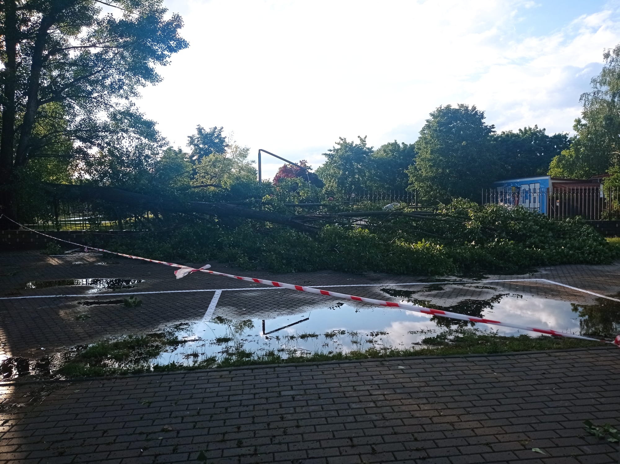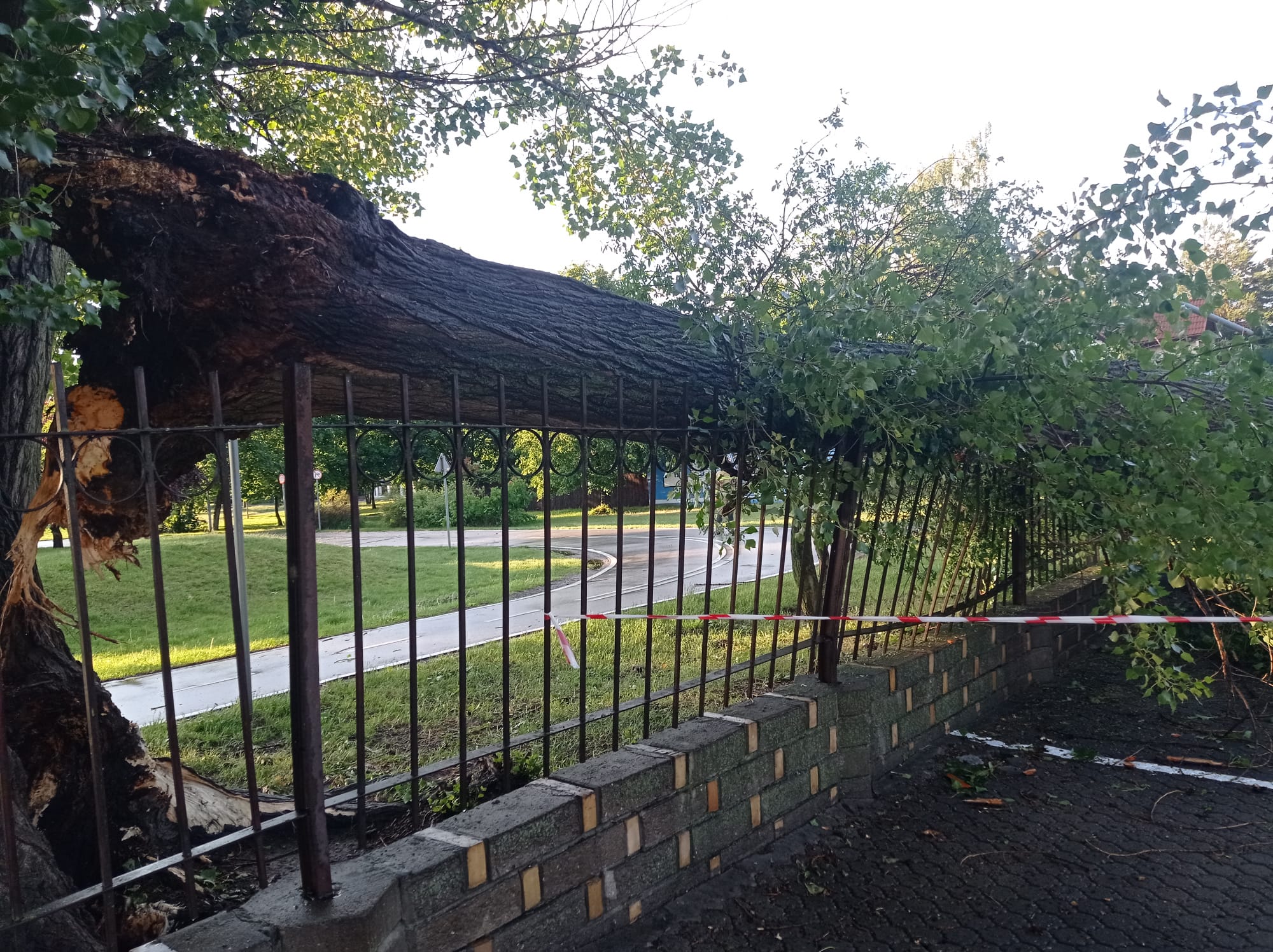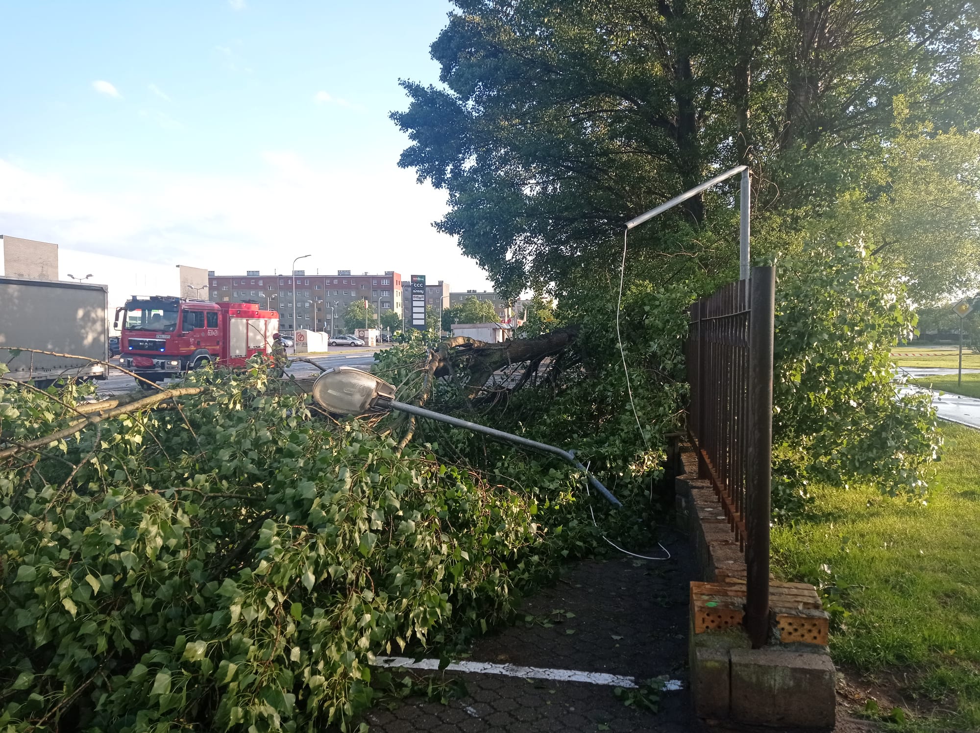 ZŁAMANE DRZEWO USZKODZIŁO LATARNIĘ