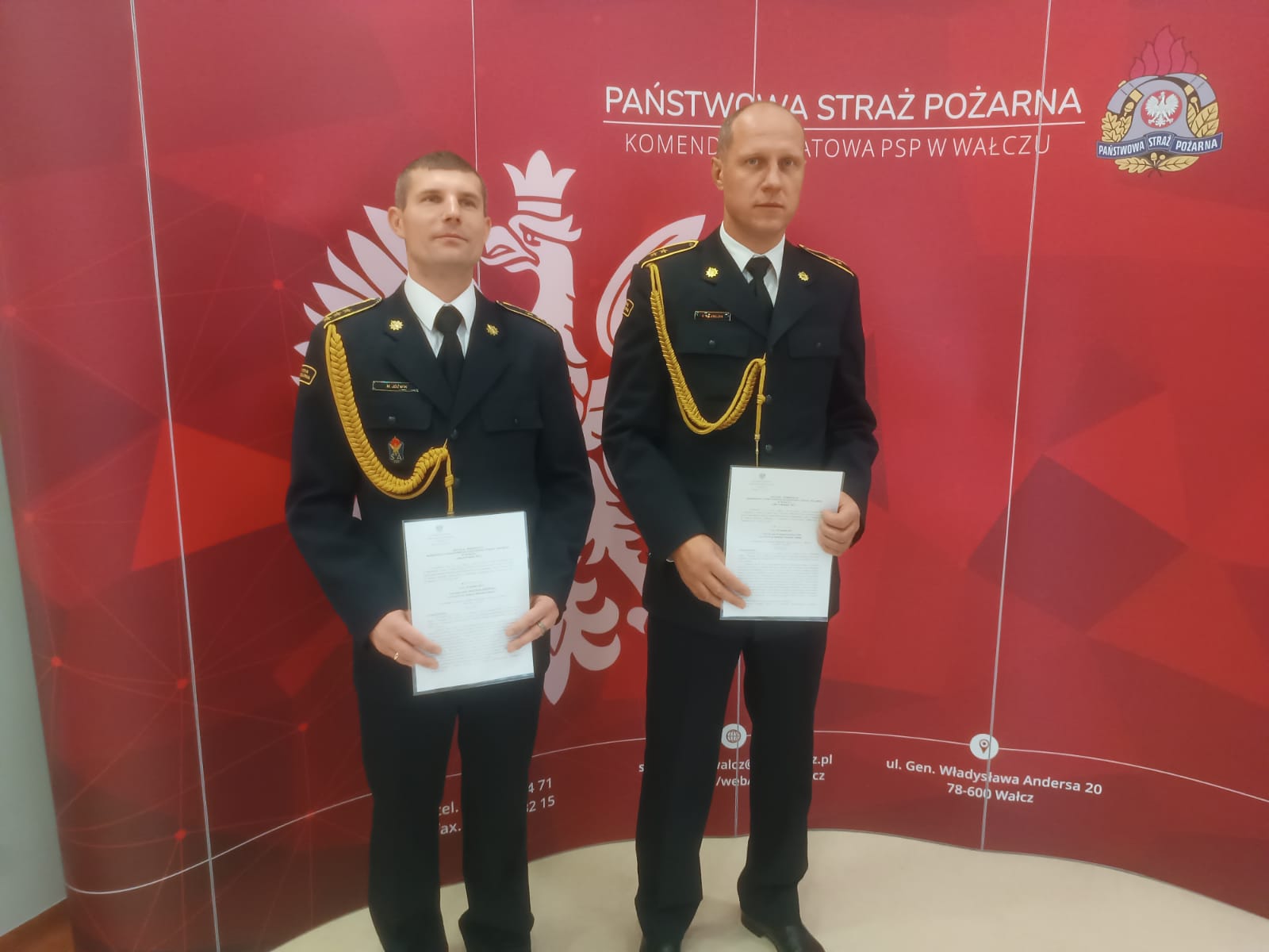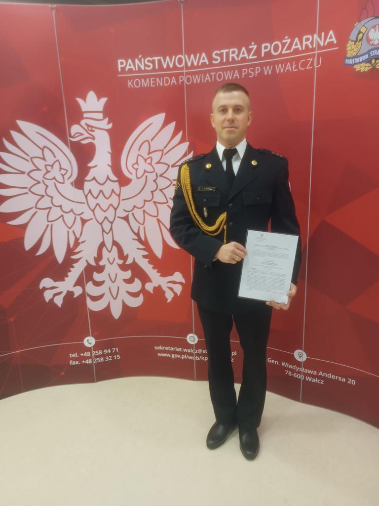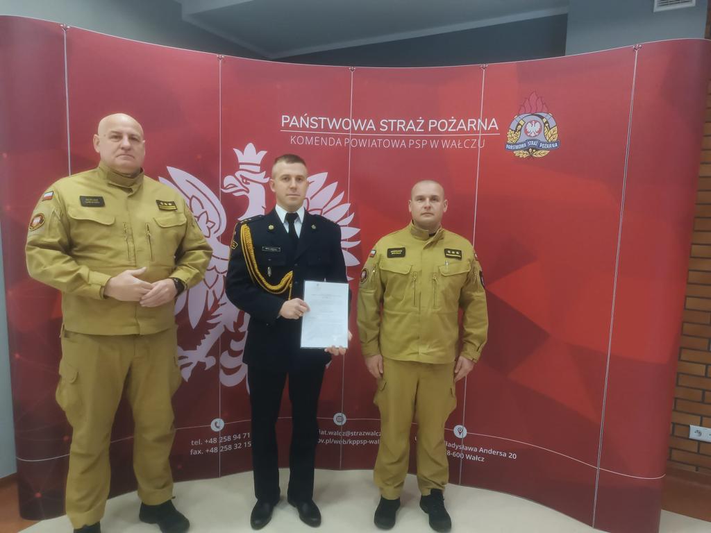 Dnia 30 listopada 2023 r. Komendant Powiatowy PSP w Wałczu st.bryg. Dariusz Lubianiec wręczył decyzję o mianowaniu na wyższe stanowiska służbowe trzem funkcjonariuszom kpt. inż. Arkadiuszowi Śliwińskiemu, asp. sztab. Maciejowi Jóźwikowi oraz st. asp. Grzegorzowi Kilańczykowi .