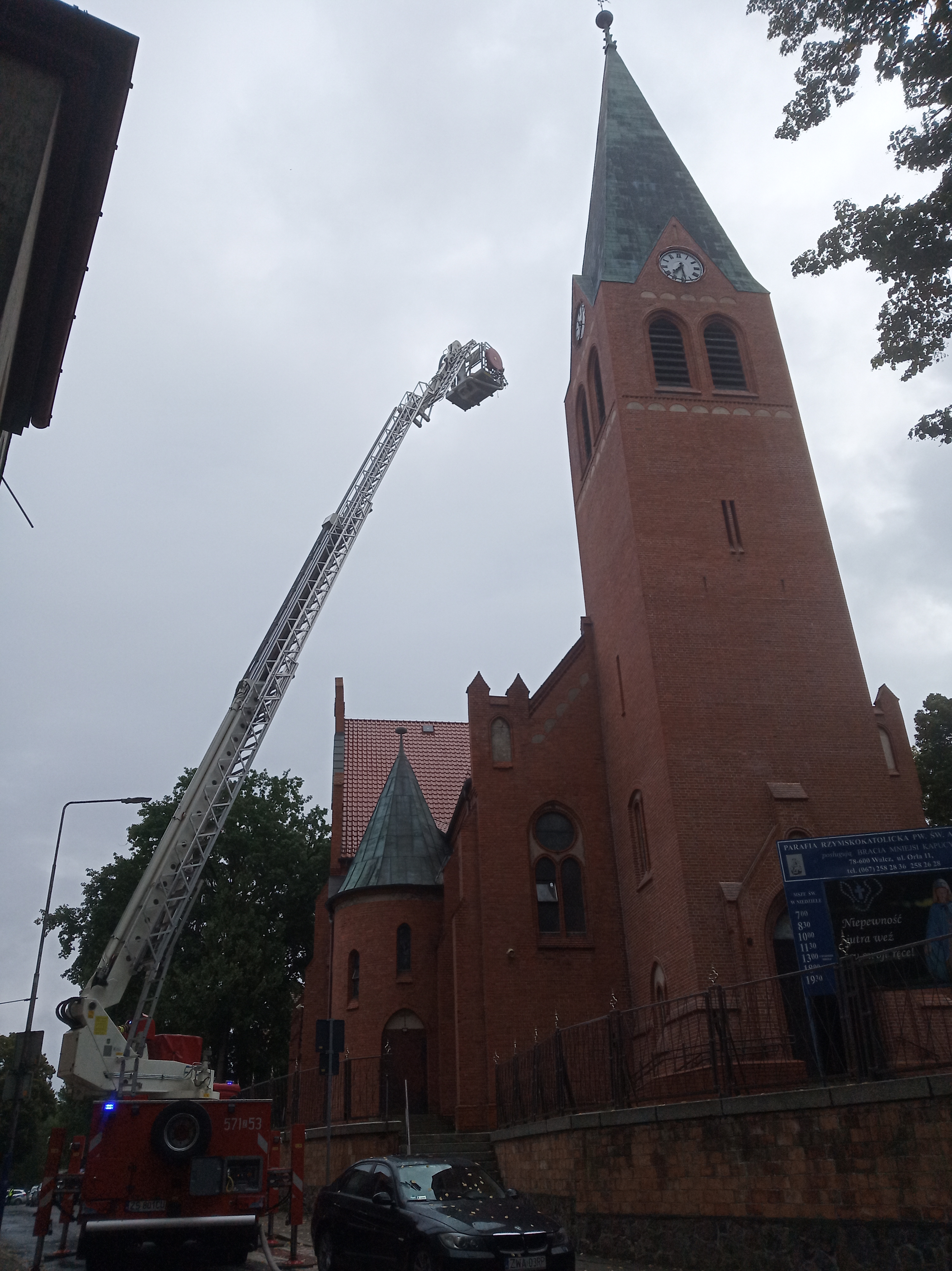 W dniu 17 września 2021 r. strażacy z Komendy Powiatowej Państwowej Straży Pożarnej w Wałczu, w ramach doskonalenia zawodowego przeprowadzili ćwiczenie w budynku kościoła pw. św. Antoniego w Wałczu przy ul. Orlej.
