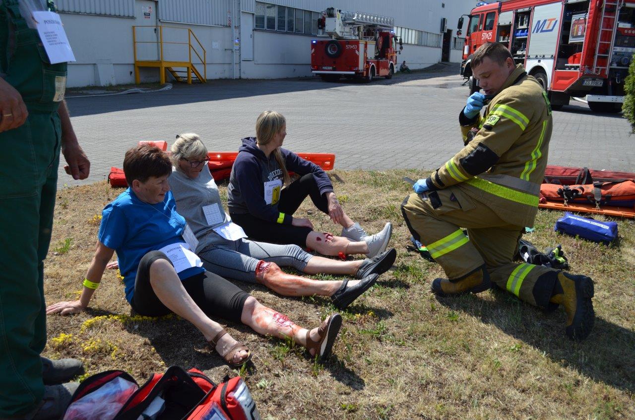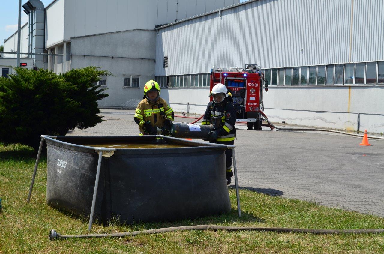 Głównym założeniem do ćwiczeń było powstanie pożaru na terenie fabryki grzejników. Z informacji uzyskanej od zgłaszającego wynikało, że w magazynie wysokiego składowania powstał pożar w wyniku zderzenia wózków widłowych i wybuchu butli z gazem LPG. W chwili zdarzenia w magazynie przebywało łącznie 20 osób. Zagrożony był również magazyn z butlami z acetylenem w zewnętrznym magazynie.