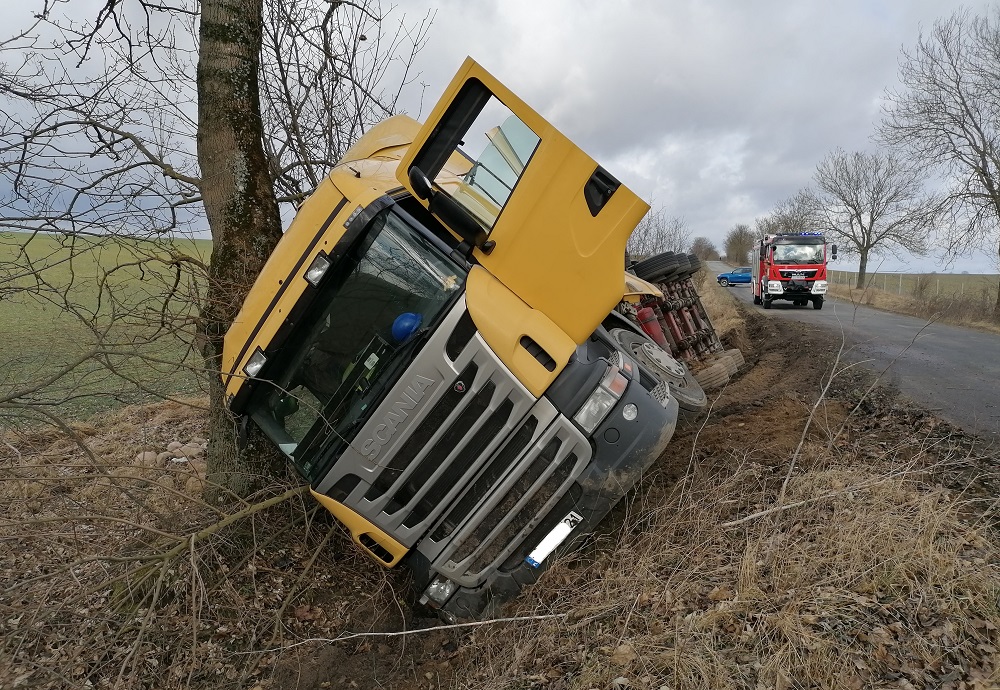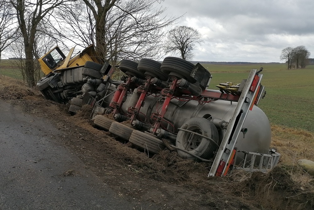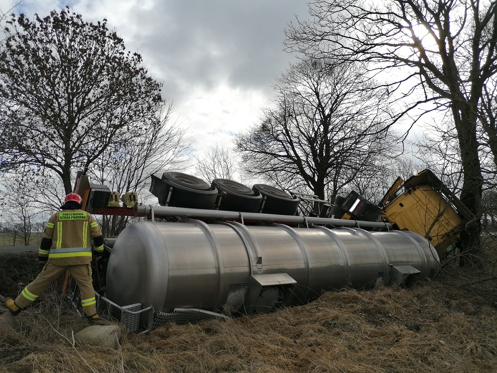 W dniu 12.03.2021 r. o godzinie 9:39 do Stanowiska Kierowania Komendanta Powiatowego PSP w Wałczu wpłynęło zgłoszenie o zdarzeniu drogowym z udziałem ciągnika siodłowego z cysterną, przewożącą mocznik azotowy na trasie Gostomia – Róża Wielka.