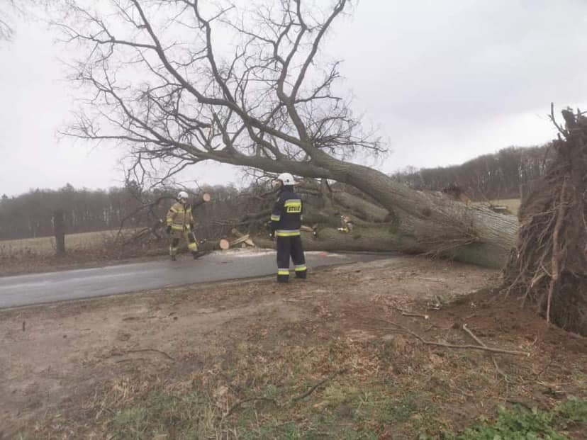 Niż o nazwie Eunice spowodował silne wiatry przewracające drzewa, które blokowały drogi krajowe, wojewódzkie, powiatowe, gminne, zrywały linie energetyczne pozbawiając mieszkańców prądu. Braki w zasilaniu w energię elektryczną gospodarstw domowych miały miejsce w całym powiecie wałeckim. Działania strażaków polegały na usuwaniu powalonych drzew i konarów, zabezpieczaniu uszkodzonych dachów, rynien i wielkoformatowych banerów reklamowych. Na szczęście obyło się bez osób poszkodowanych, nie odnotowano zniszczeń samochodów ratowniczo-gaśniczych oraz sprzętu. Działania związane z usuwaniem skutków anomalii pogodowych prowadzone były również w dniach 20-21.02.2022 r. Łącznie do godzin południowych 21.02.2022 r. odnotowano 232 zdarzenia.