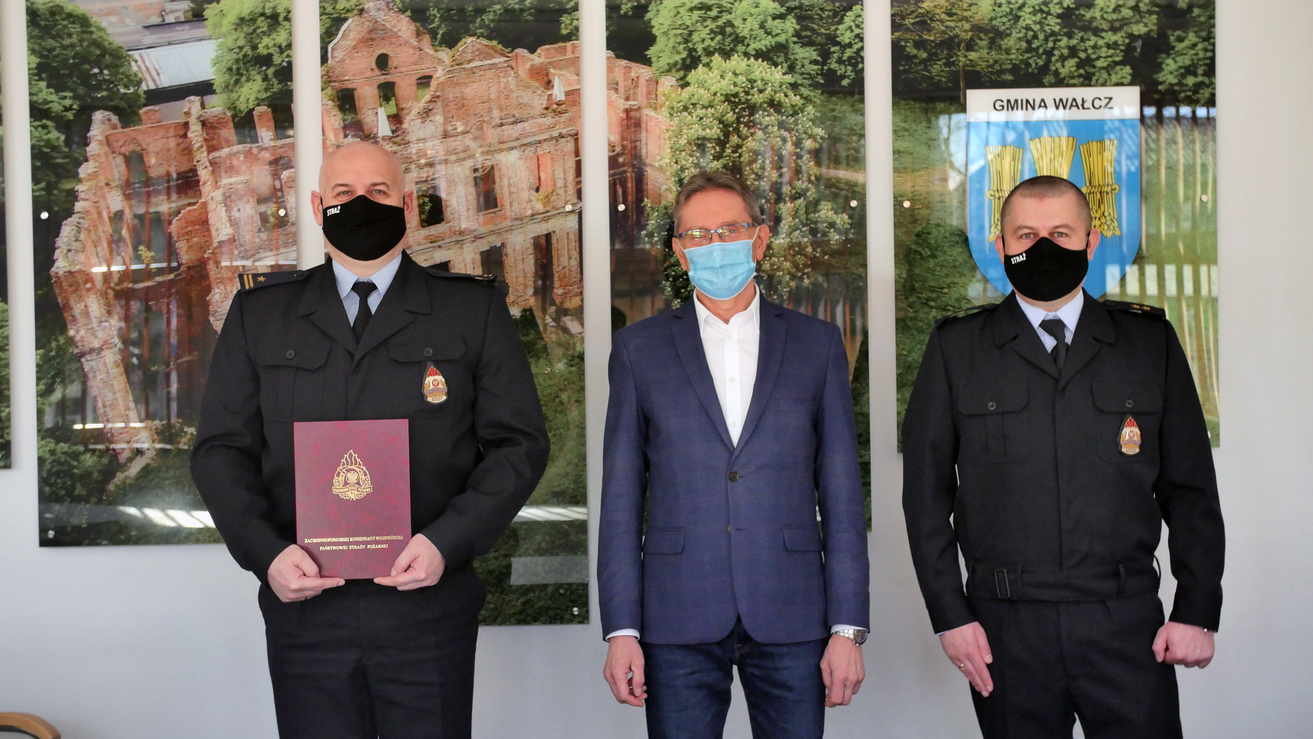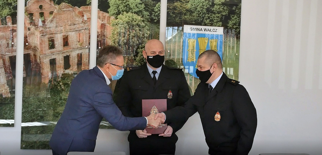 Gminę Wałcz reprezentował Wójt Gminy Wałcz Jan Matuszewski, natomiast Komendę Powiatową Państwowej Straży Pożarnej w Wałczu – mł. bryg. Dariusz Lubianiec Komendant Powiatowy PSP w Wałczu wraz z zastępcą mł. kpt. Marcinem Kulczykiem. Podpisana umowa po akceptacji przez Zachodniopomorskiego Komendanta Wojewódzkiego Państwowej Straży Pożarnej pozwoli na przekazanie przez Gminę Wałcz środków finansowych w kwocie 80 000,00 zł na zakup ww. samochodu gaśniczego poprzez Wojewódzki Fundusz Wsparcia.