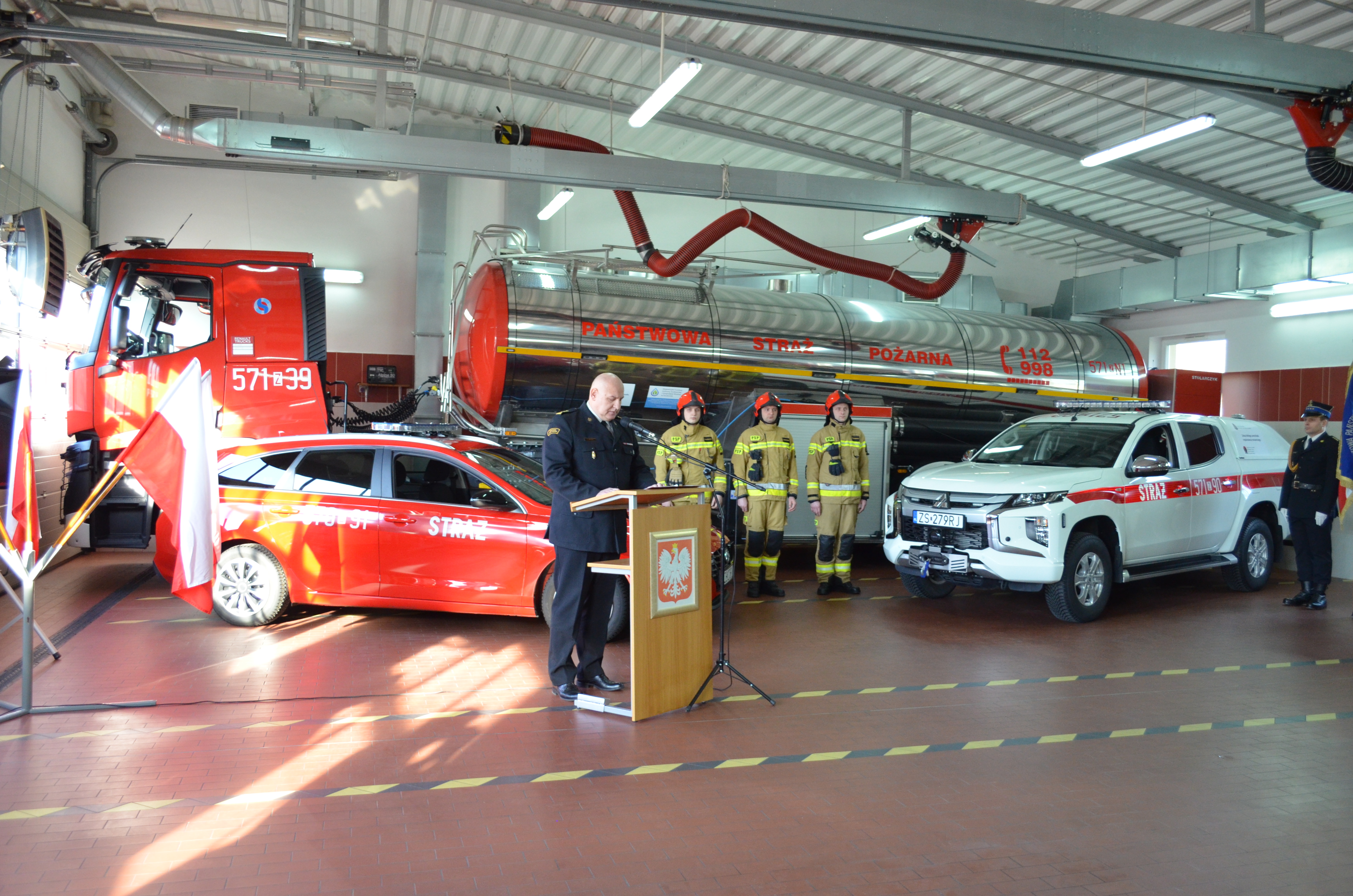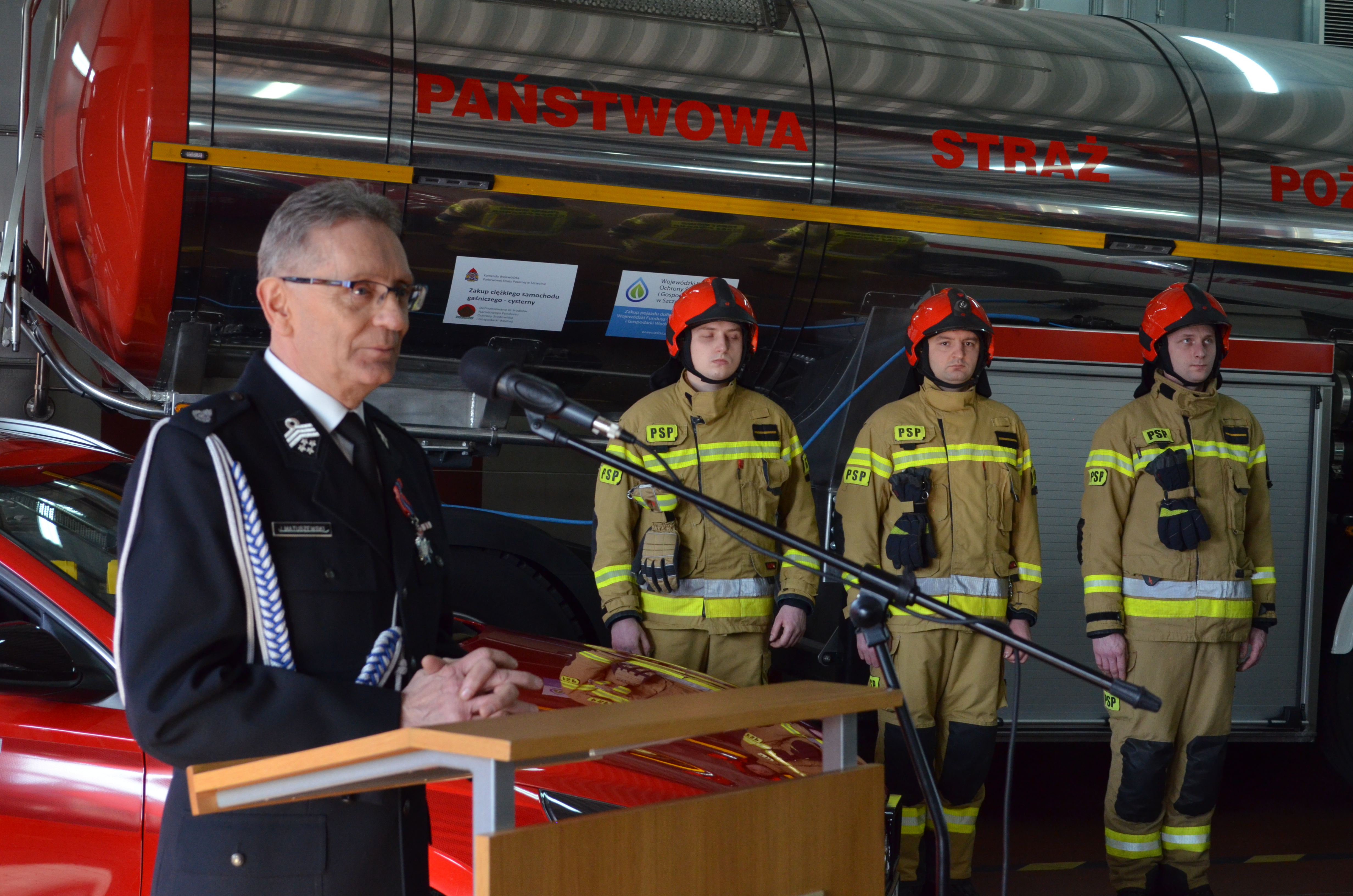 W pierwszej części spotkania Zachodniopomorski Komendant Wojewódzki PSP nadbryg. Jarosław Tomczyk przekazał na ręce Komendanta Powiatowego PSP w Wałczu st. bryg. Dariuszowi Lubianiec, kluczyki do samochodów: lekkiego samochodu rozpoznawczo-ratowniczego SLRR Mitsubishi L200, ciężkiego samochodu ratowniczo-gaśniczego GCBM 23/16 Renault C480, samochodu operacyjnego SLOp Hyundai I30. Poświęcenia pojazdów dokonał brat Andrzej Mańczak.
