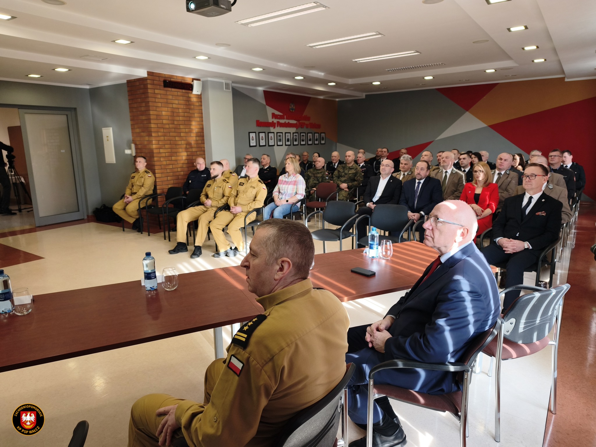 Podczas spotkania Zastępca Zachodniopomorskiego Komendanta Wojewódzkiego PSP st. bryg. Krzysztof Makowski zwrócił uwagę na rosnące znaczenie zagadnień związanych z ochroną ludności i obroną cywilną. Podkreślił konieczność dalszego wzmacniania systemowych rozwiązań w zakresie infrastruktury ochronnej oraz przygotowania struktur reagowania kryzysowego. Wskazał również, że rozwój systemu bezpieczeństwa wymaga ścisłej współpracy administracji publicznej, służb ratowniczych oraz innych instytucji odpowiedzialnych za reagowanie w sytuacjach zagrożeń.