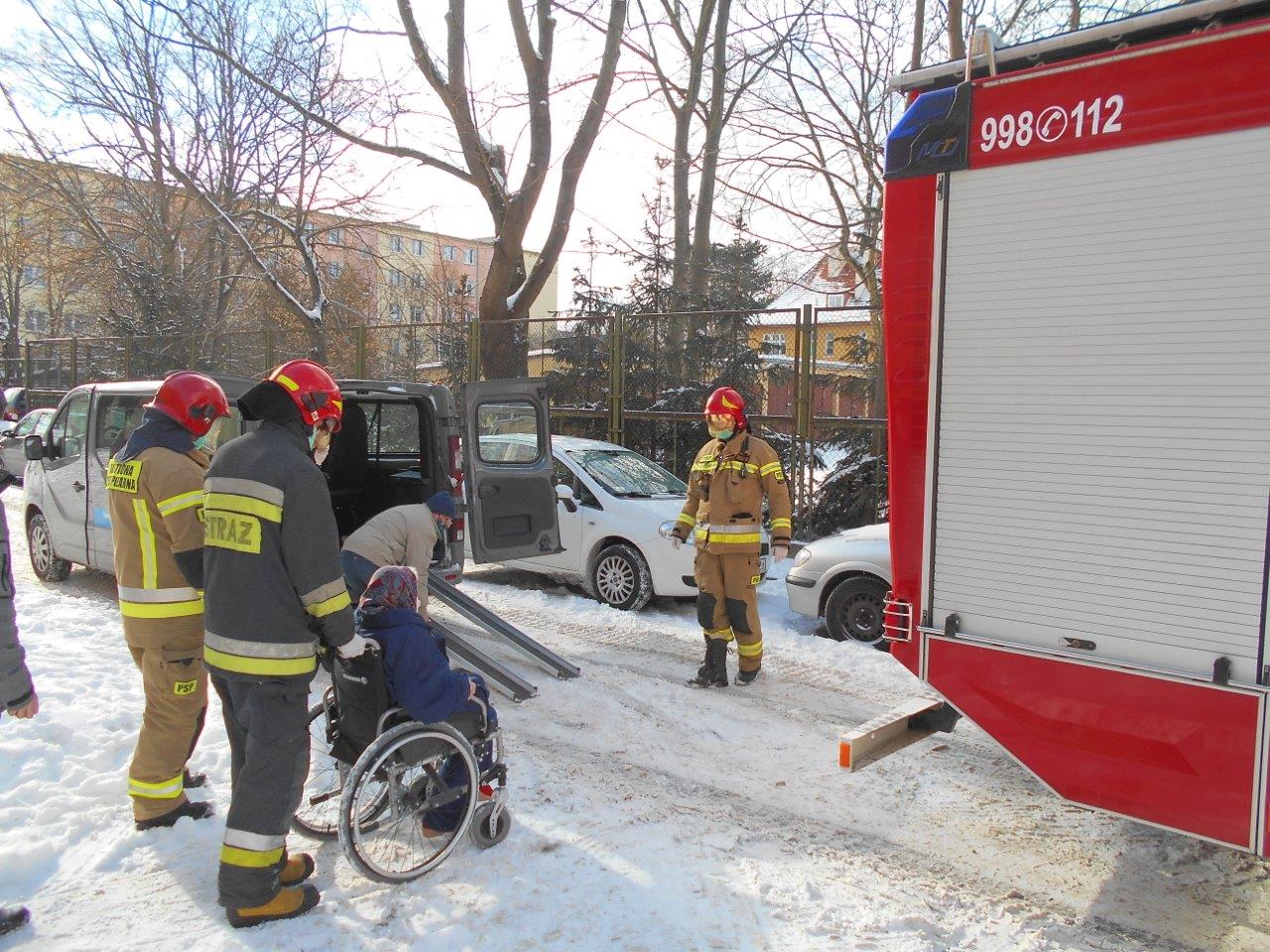 W dniu 11 lutego 2021 r. do Stanowiska Kierowania Komendanta Powiatowego Państwowej Straży Pożarnej w Wałczu wpłynęło zgłoszenie od koordynatora ds. szczepień miasta Wałcza o potrzebie pomocy w transporcie osoby niepełnosprawnej do punktu szczepień przeciwko COVID-19 w Wałczu.