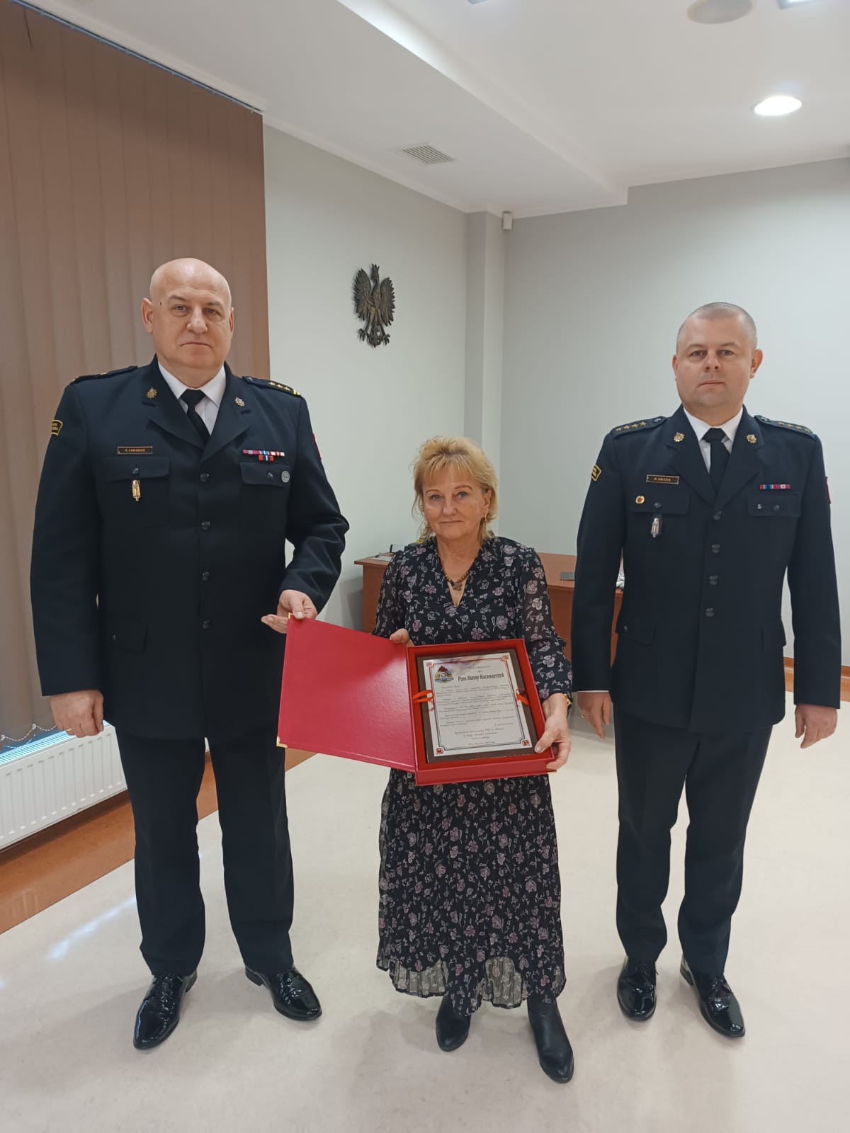 Pani Hanna Kaczmarczyk pracowała w Komendzie Powiatowej PSP w Wałczu od 1987 roku. W trakcie ponad 36 lat pracy zajmowała stanowisko pomocnicze w systemie codziennym. W trakcie pracy wykazywała się dużym zaangażowaniem, pracowitością oraz punktualnością. Poza podstawowymi obowiązkami, aktywnie angażowała się w różnorodne zadania, w tym organizację uroczystości strażackich.