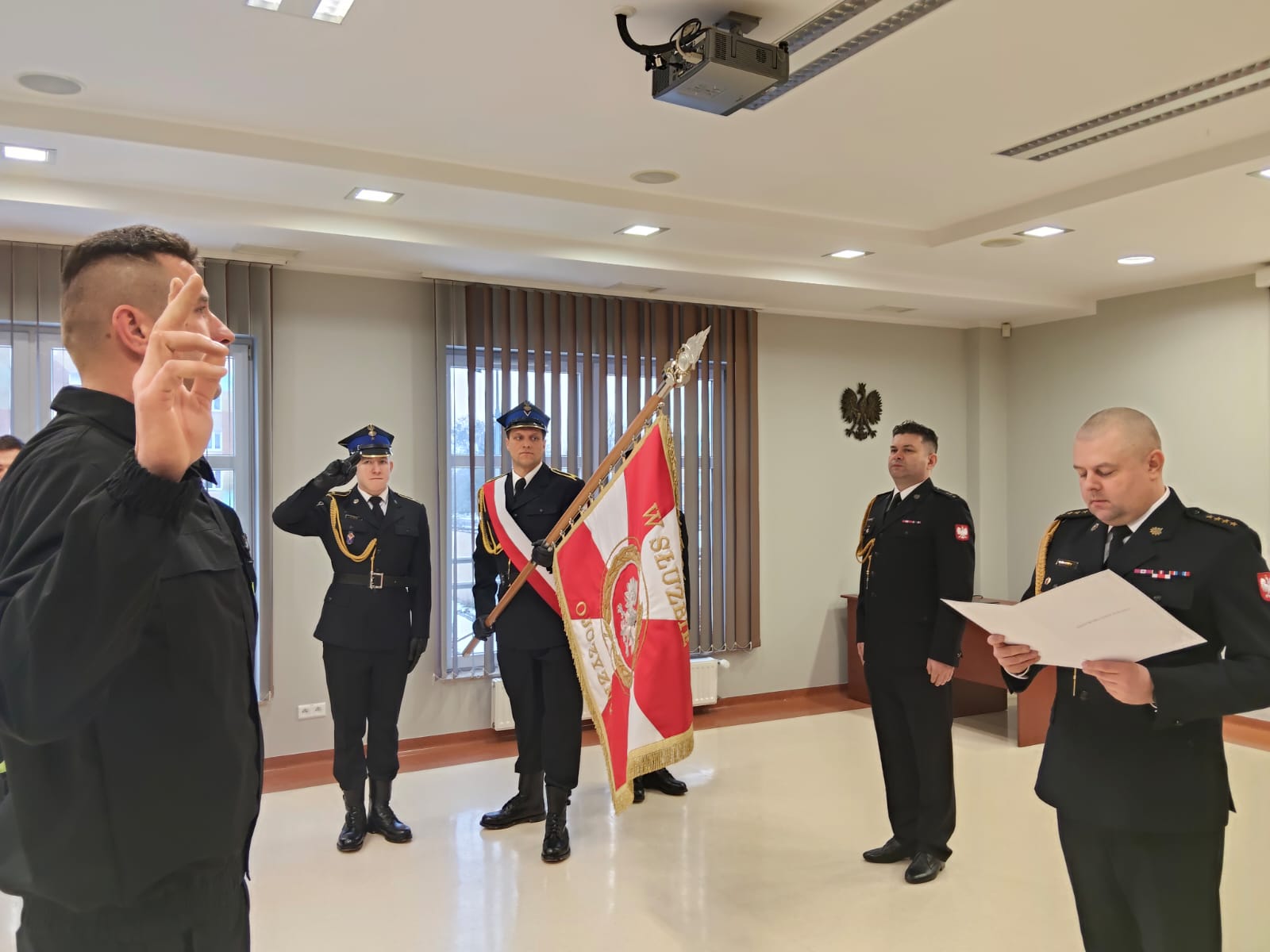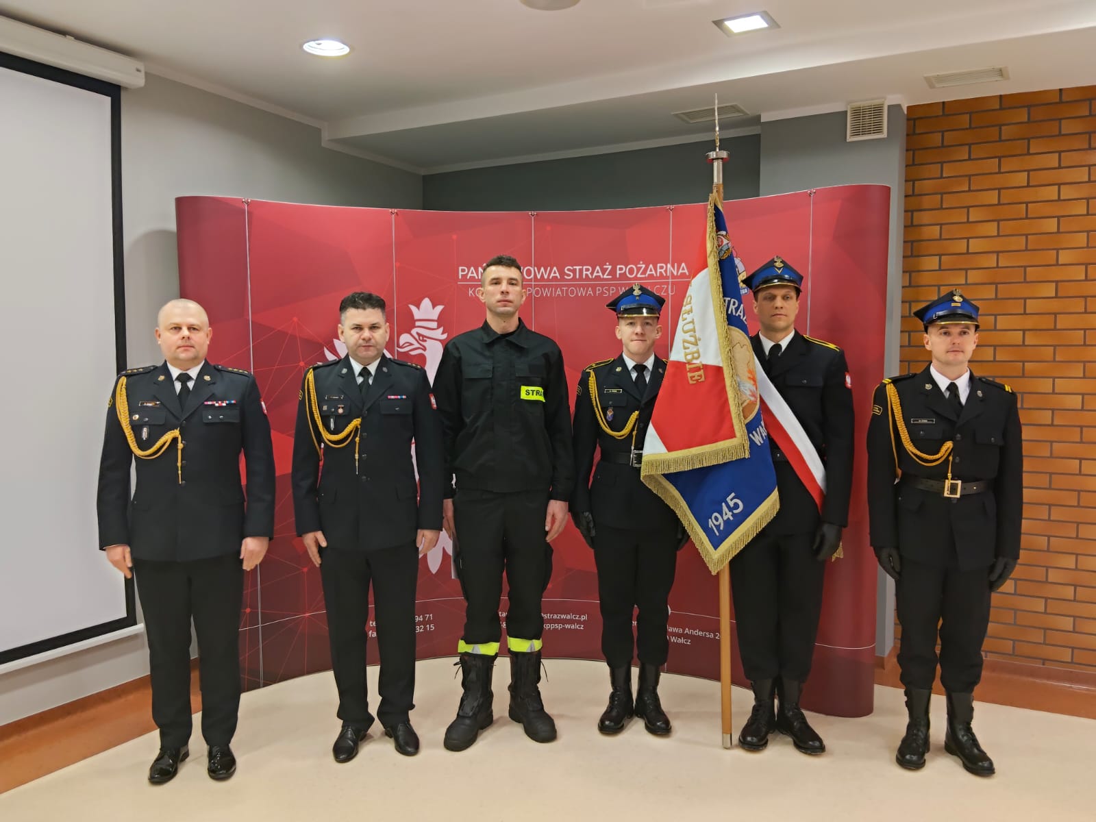 16 stycznia 2026 roku w sali konferencyjnej Komendy Powiatowej Państwowej Straży Pożarnej w Wałczu odbyło się ślubowanie, które w obecności Komendanta Powiatowego PSP i strażaków zmiany służbowej złożył str. Tomasz Rogoziński.