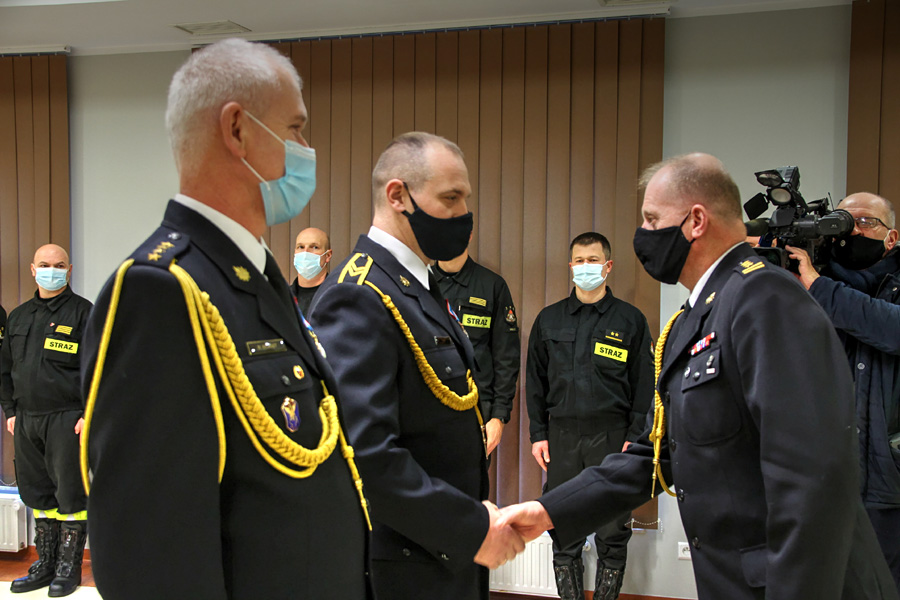 W dniu 18 grudnia 2020 r. w Komendzie Powiatowej Państwowej Straży Pożarnej w Wałczu odbyła się uroczysta zbiórka z okazji ślubowania strażaków stażystów w służbie przygotowawczej oraz wręczenia odznaczeń strażakom Komendy Powiatowej PSP w Wałczu.