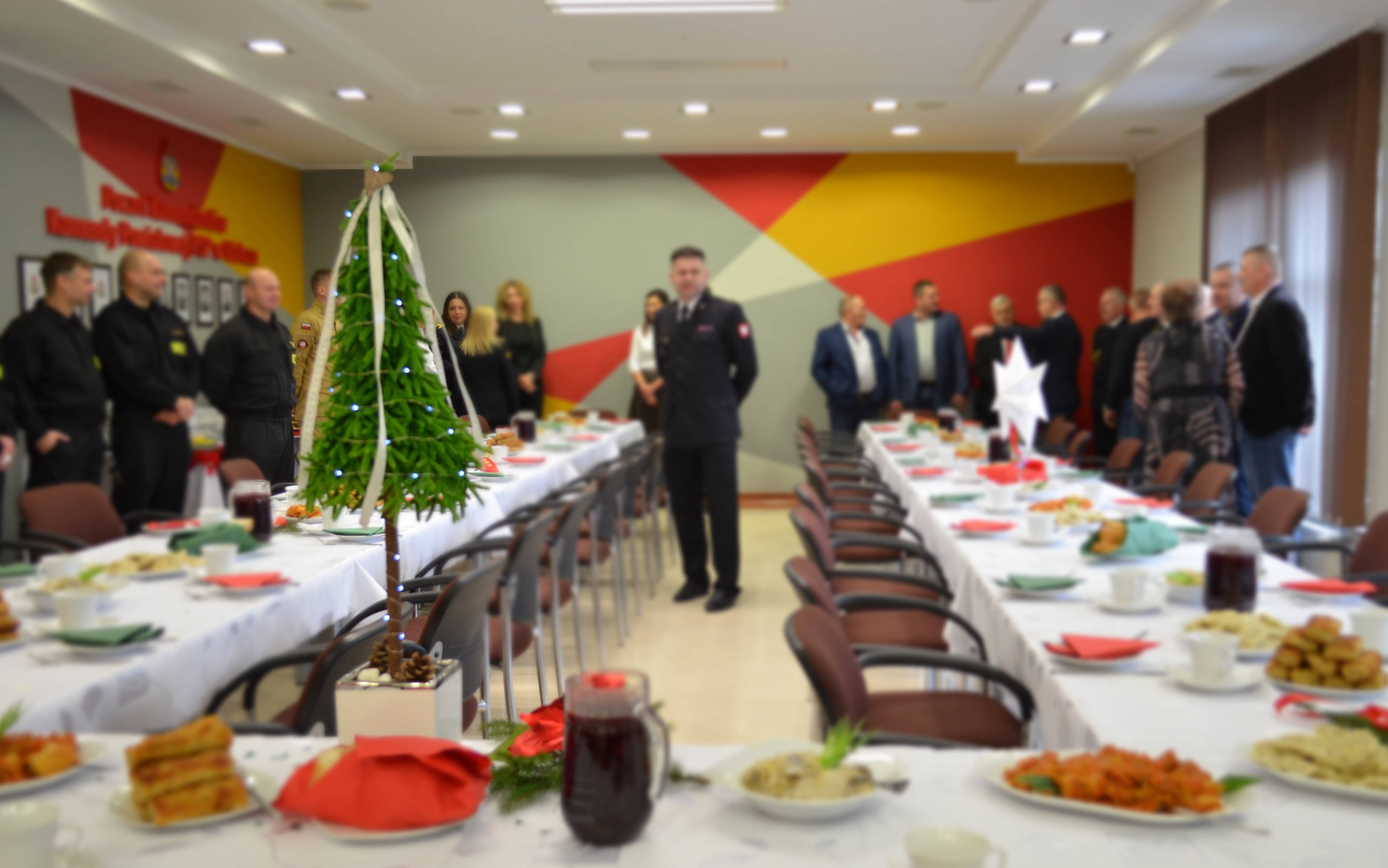 W dniu 18 grudnia 2025 r. w Komendzie Powiatowej Państwowej Straży Pożarnej w Wałczu odbyło się uroczyste spotkanie wigilijne z udziałem funkcjonariuszy, pracowników cywilnych oraz zaproszonych gości. Wydarzenie miało charakter oficjalny i stanowiło ważny element podtrzymywania tradycji oraz integracji środowiska pożarniczego.