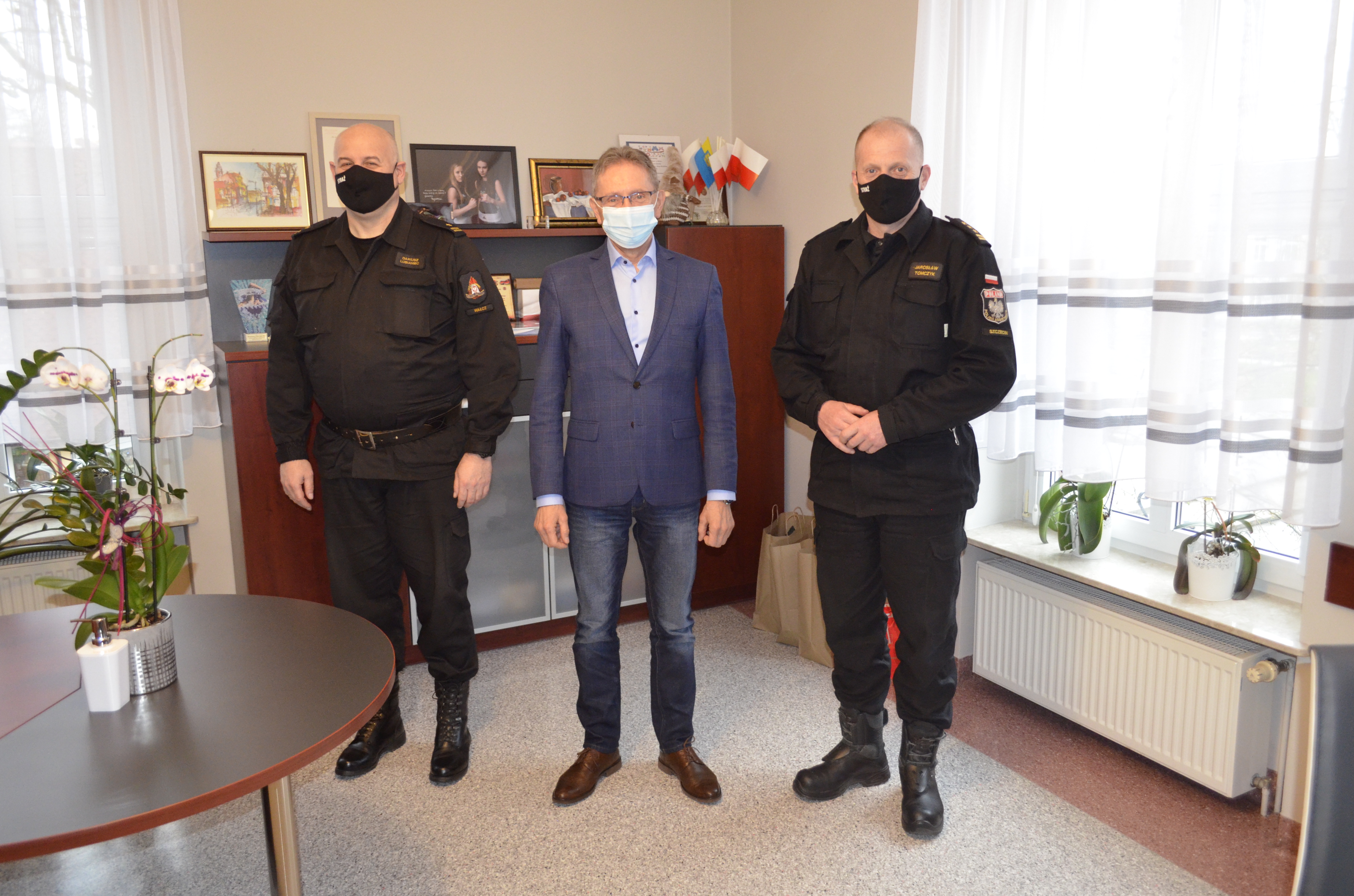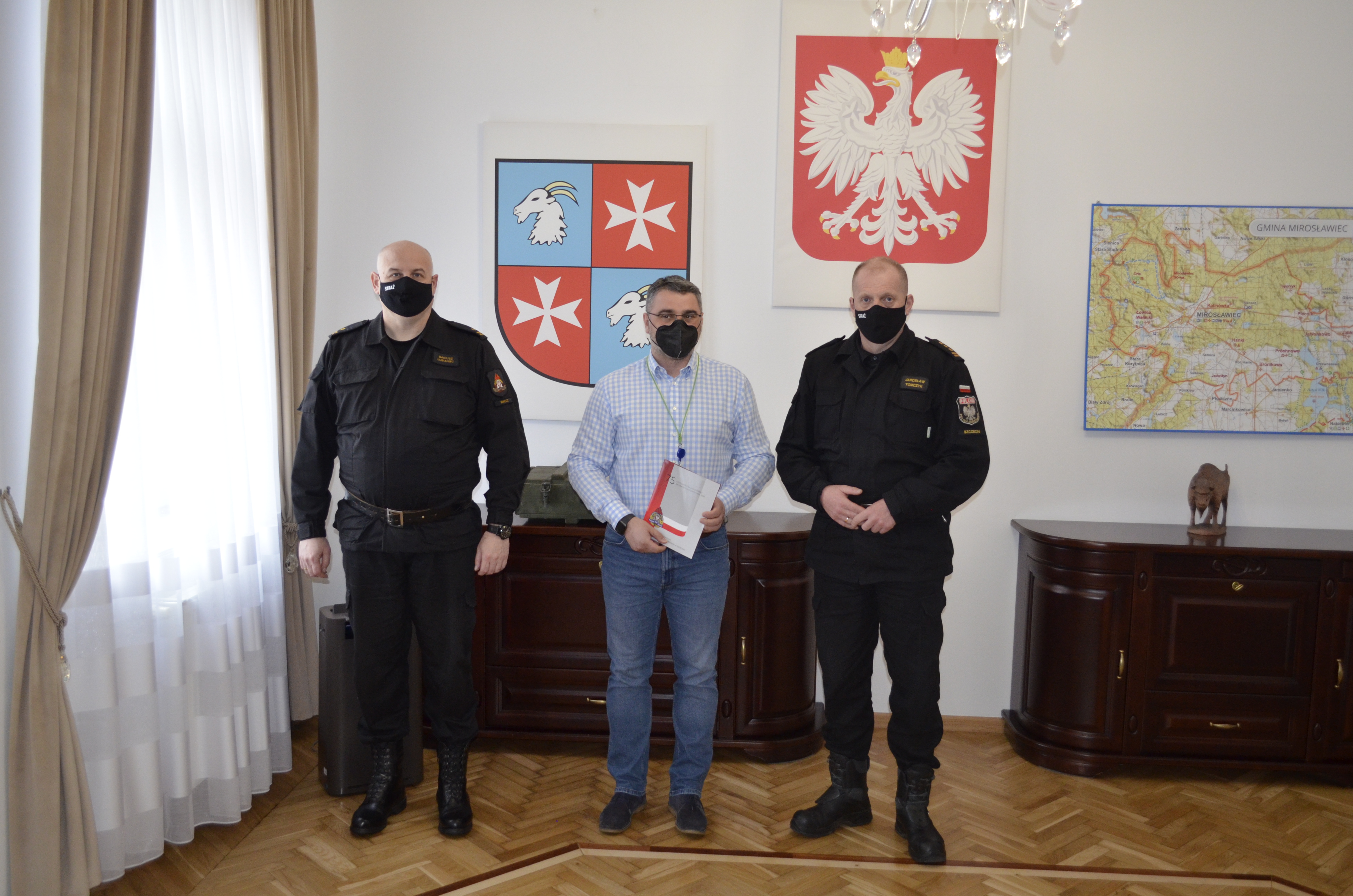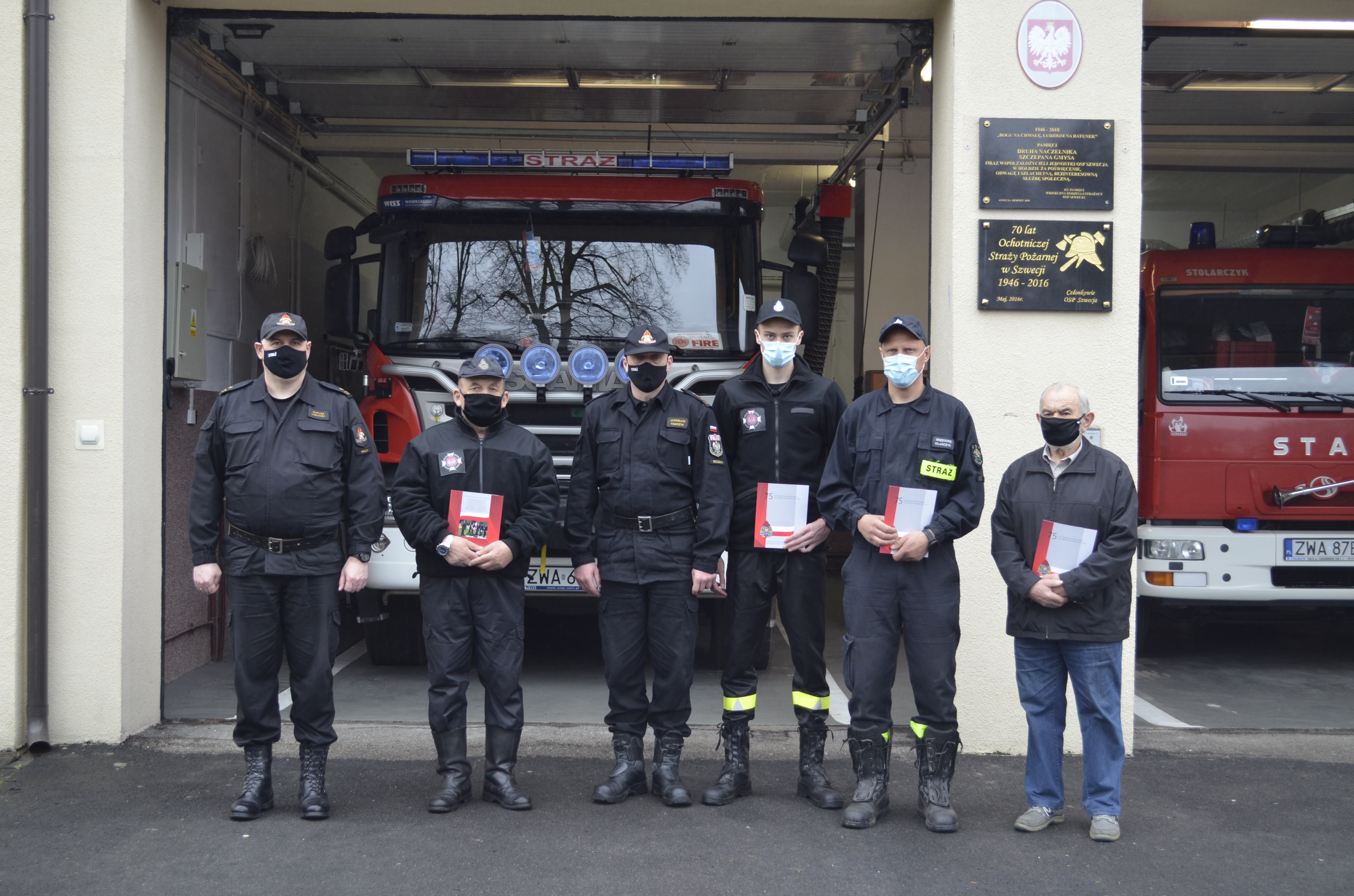 Podczas wszystkich spotkań st. bryg. Jarosław Tomczyk wręczył druhom strażakom oraz samorządowcom okolicznościowy biuletyn wydany z okazji 75 lat pożarnictwa zawodowego na pomorzu zachodnim w latach 1945-2020. Spotkania uwieńczono na wspólnych pamiątkowych fotografiach.