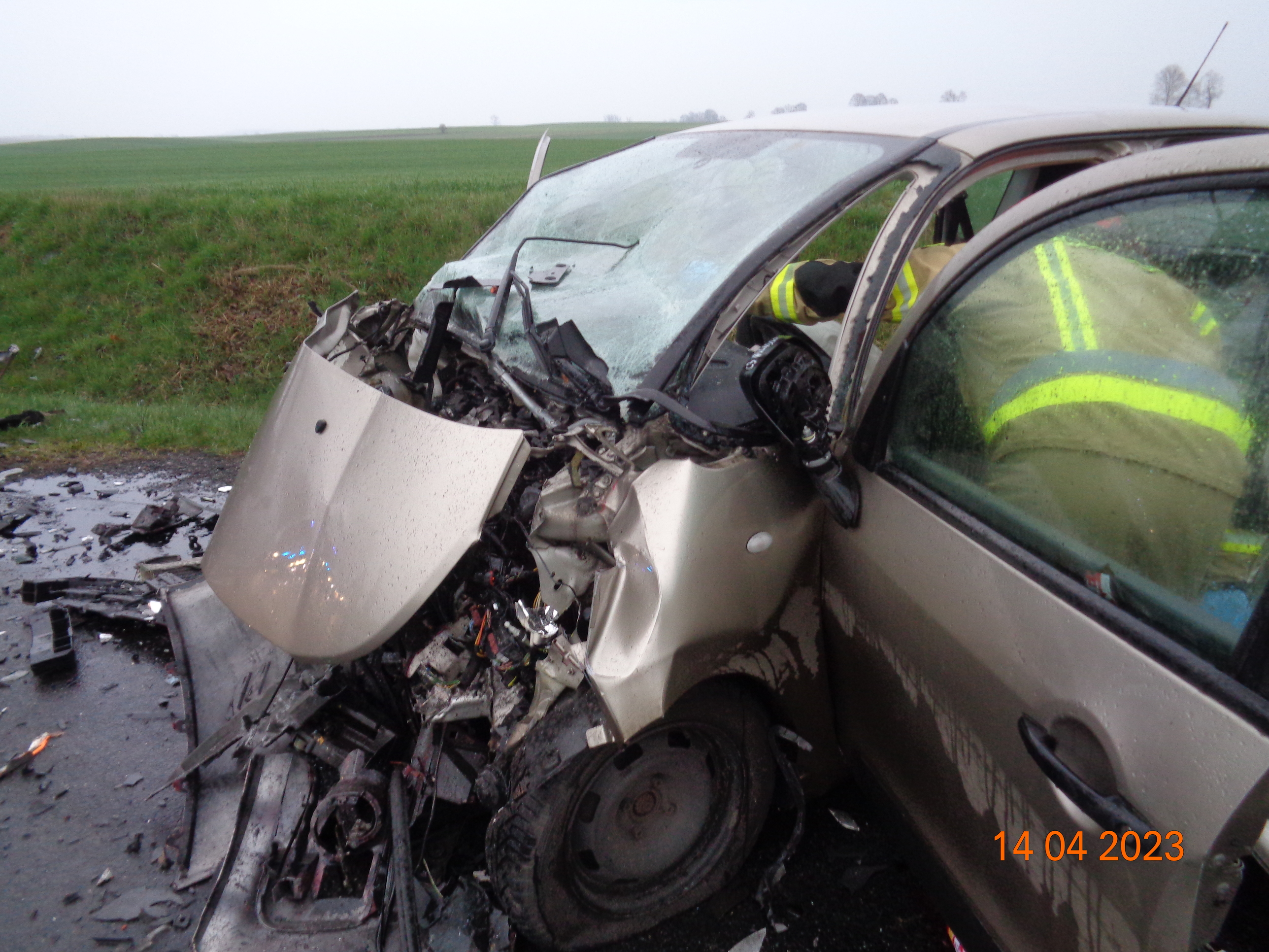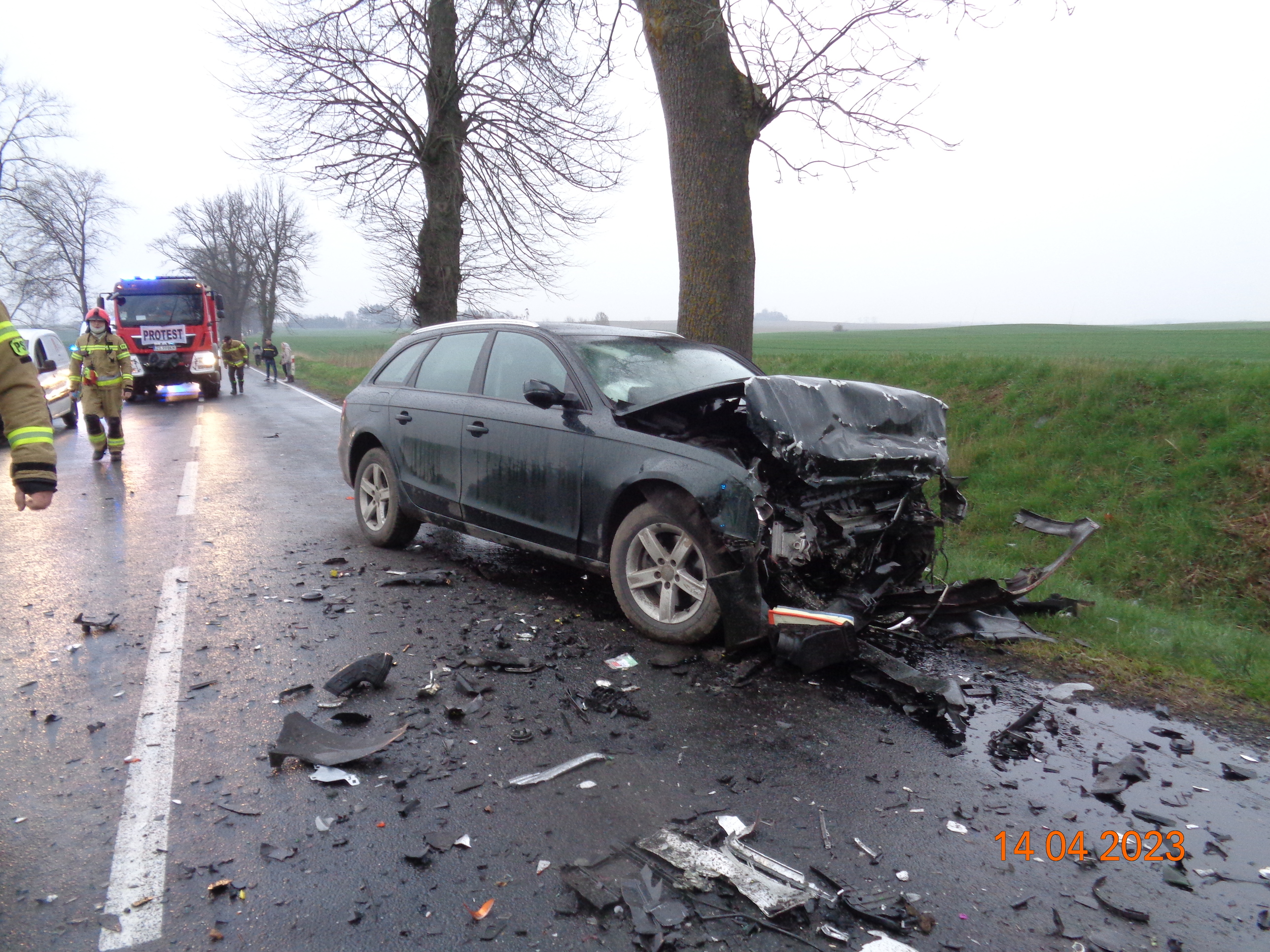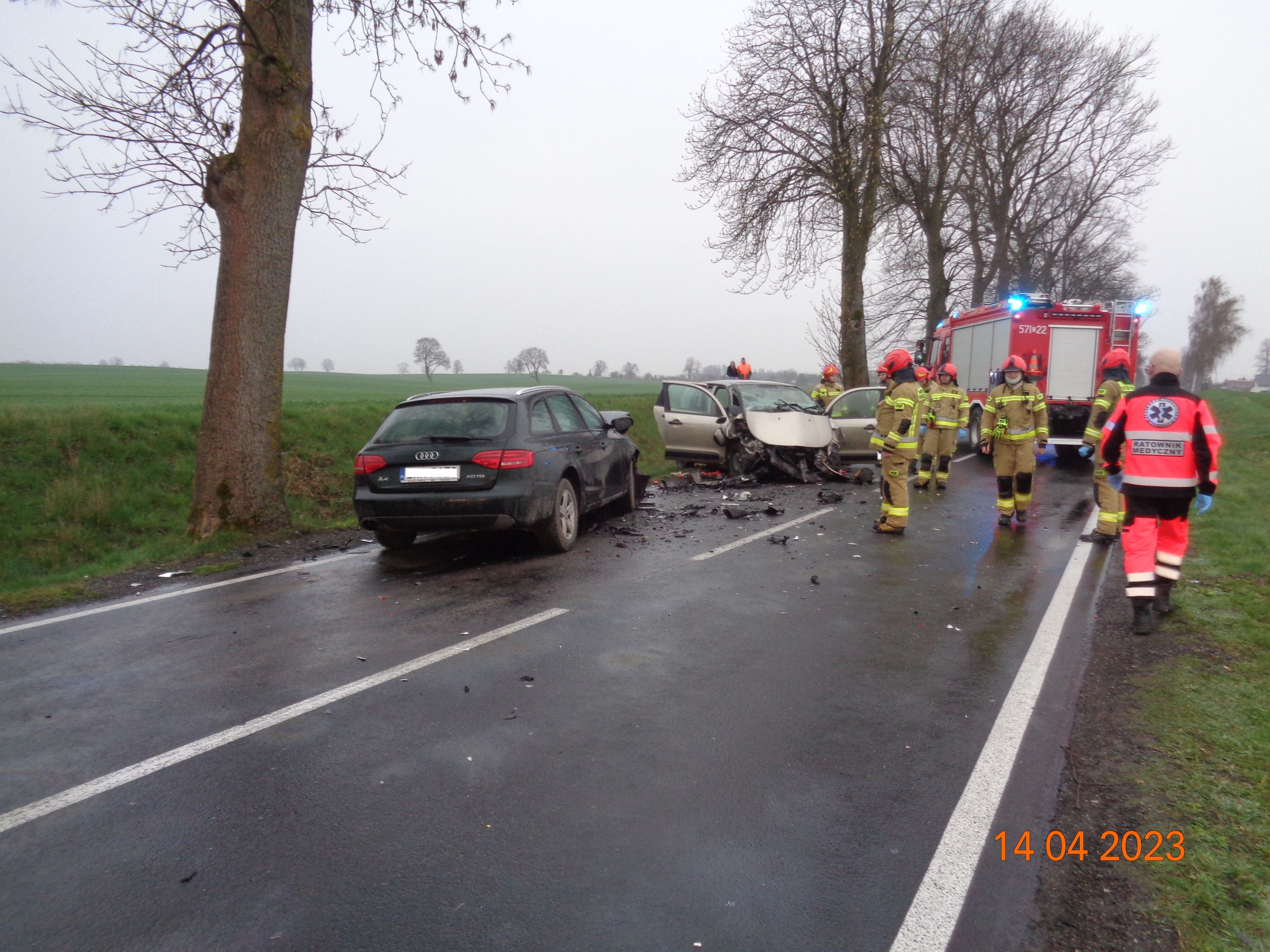 W dniu 14 kwietnia br. o godzinie 6:31 do Stanowiska Kierowania Komendanta Powiatowego PSP w Wałczu wpłynęło zgłoszenie o wypadku drogowym na drodze wojewódzkiej nr 178 przed miejscowością Gostomia. Na miejsce zadysponowano 2 zastępy z Jednostki Ratowniczo Gaśniczej Komendy Powiatowej PSP w Wałczu, zastęp Wojskowej Straży Pożarnej z Wałcza oraz Oficera Operacyjnego.