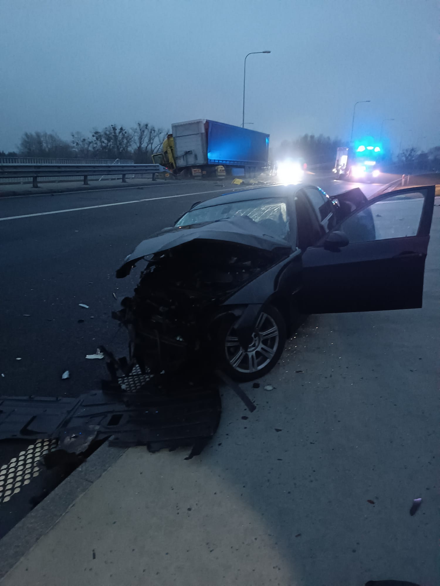 W dniu 29.11.2022 r. godzinie 1530 dyżurny Stanowiska Kierowania Komendanta Powiatowego PSP w Wałczu otrzymał zgłoszenie o wypadku drogowym w okolicach węzła Wałcz Wschód na drodze S10.