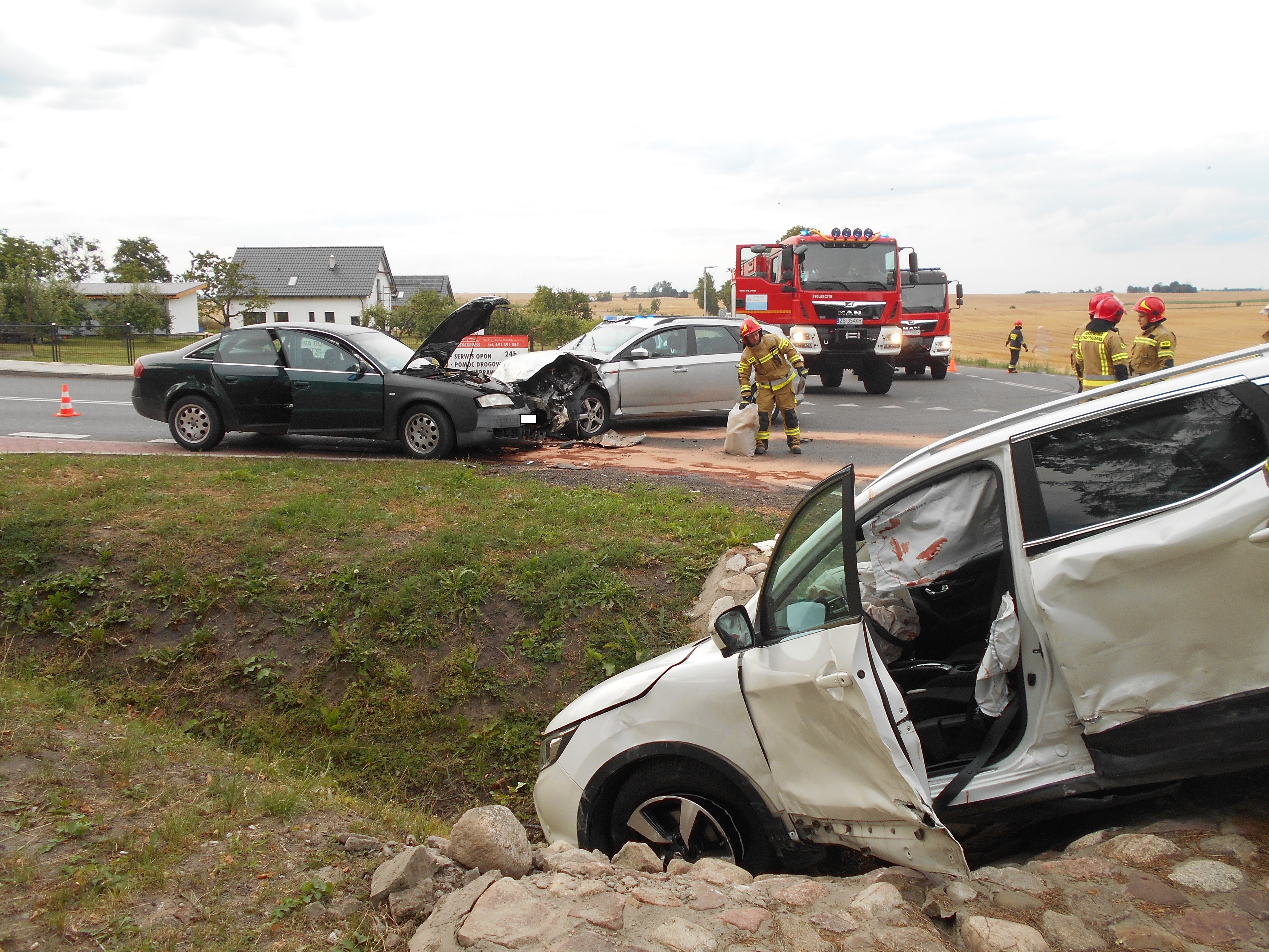 W dniu 07 sierpnia 2021 o godz. 18:08 do Stanowiska Kierowania Komendanta Powiatowego Państwowej Straży Pożarnej w Wałczu wpłynęło zgłoszenie o wypadku komunikacyjnym na skrzyżowaniu dróg wojewódzkich DW 178 i 179 w miejscowości Gostomia z udziałem trzech samochodów osobowych.