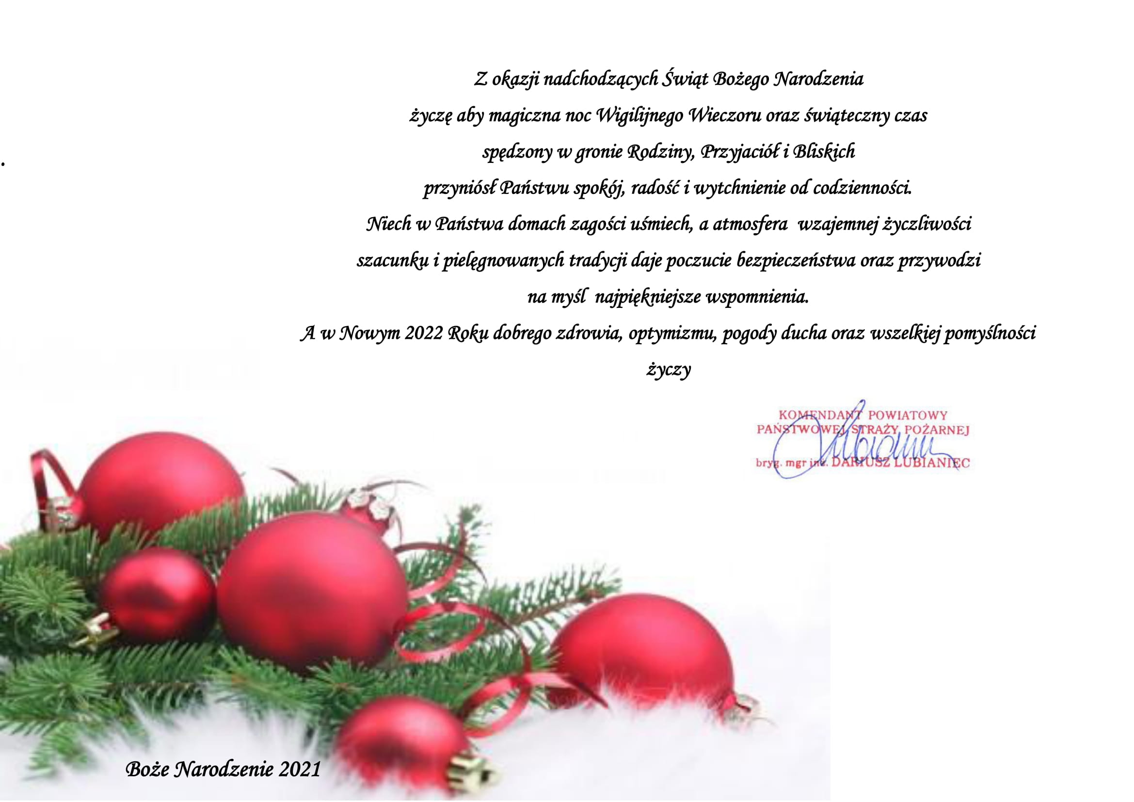 Życzenia Świąteczne Komendanta Powiatowego PSP w Wałczu