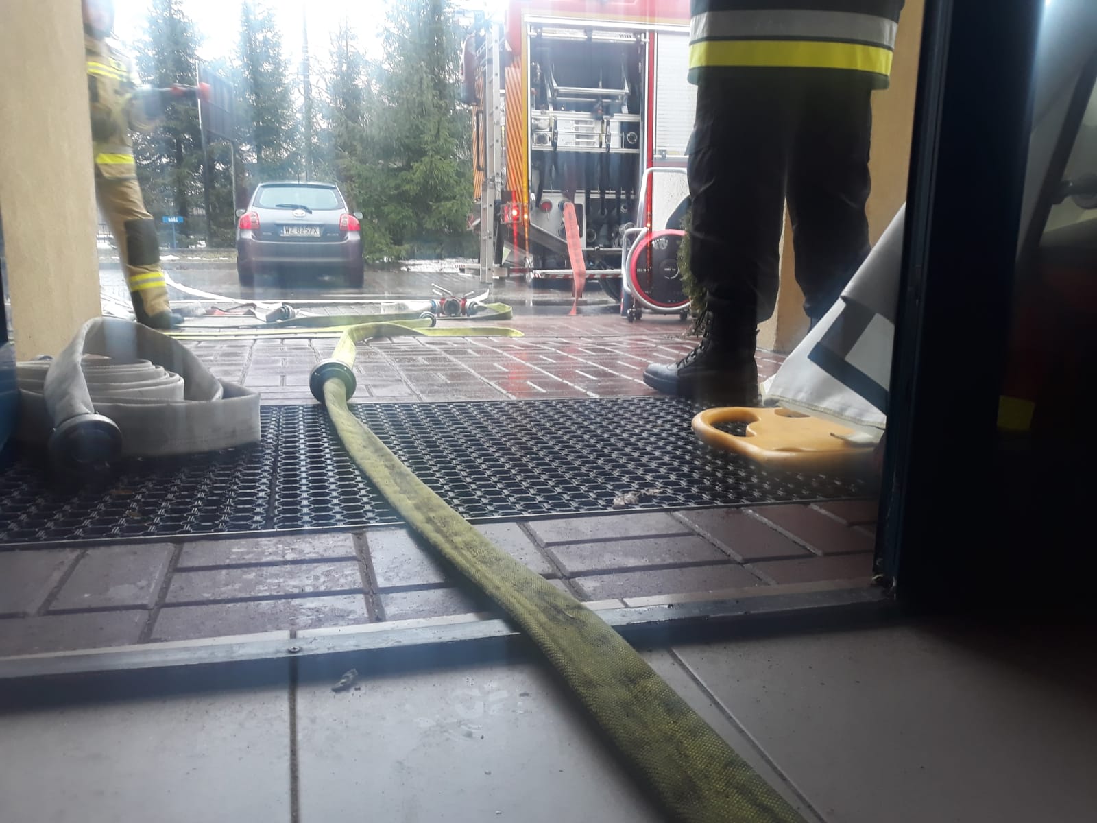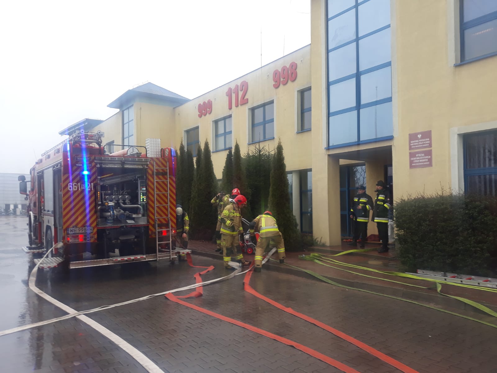 W dniu dzisiejszym do Stanowska Kierowania Komendanta Powiatowego PSP w Powiecie Warszawskim Zachodnim wpłynęło zgłoszenie, że w Błoniu w budynku przy ulicy Lesznowskiej 20a doszło do zadymienia klatki schodowej, na piętrze mogą znajdować się osoby poszkodowane. Jak się okazało jest to budynek KP PSP w Błoniu. Na miejsce natychmiast zostały zadysponowane zastępy PSP. Strażacy przystąpili do działań, do budynku zostały wprowadzone dwie roty ratowników z liniami gaśniczymi w celu podjęcia ewentualnych działań gaśniczych oraz przeszukania zagrożonych pomieszczeń. Wszystko to działo się oczywiście w związku z przeprowadzoną inspekcją gotowości operacyjnej tut. JRG. Jak widać na załączonych zdjęciach nawet w przededniu nocy sylwestrowej gotowość operacyjna musi być na najwyższym poziomie. Mamy nadzieję, że dzisiejsze działania zakończą się jedynie na ćwiczeniach.
