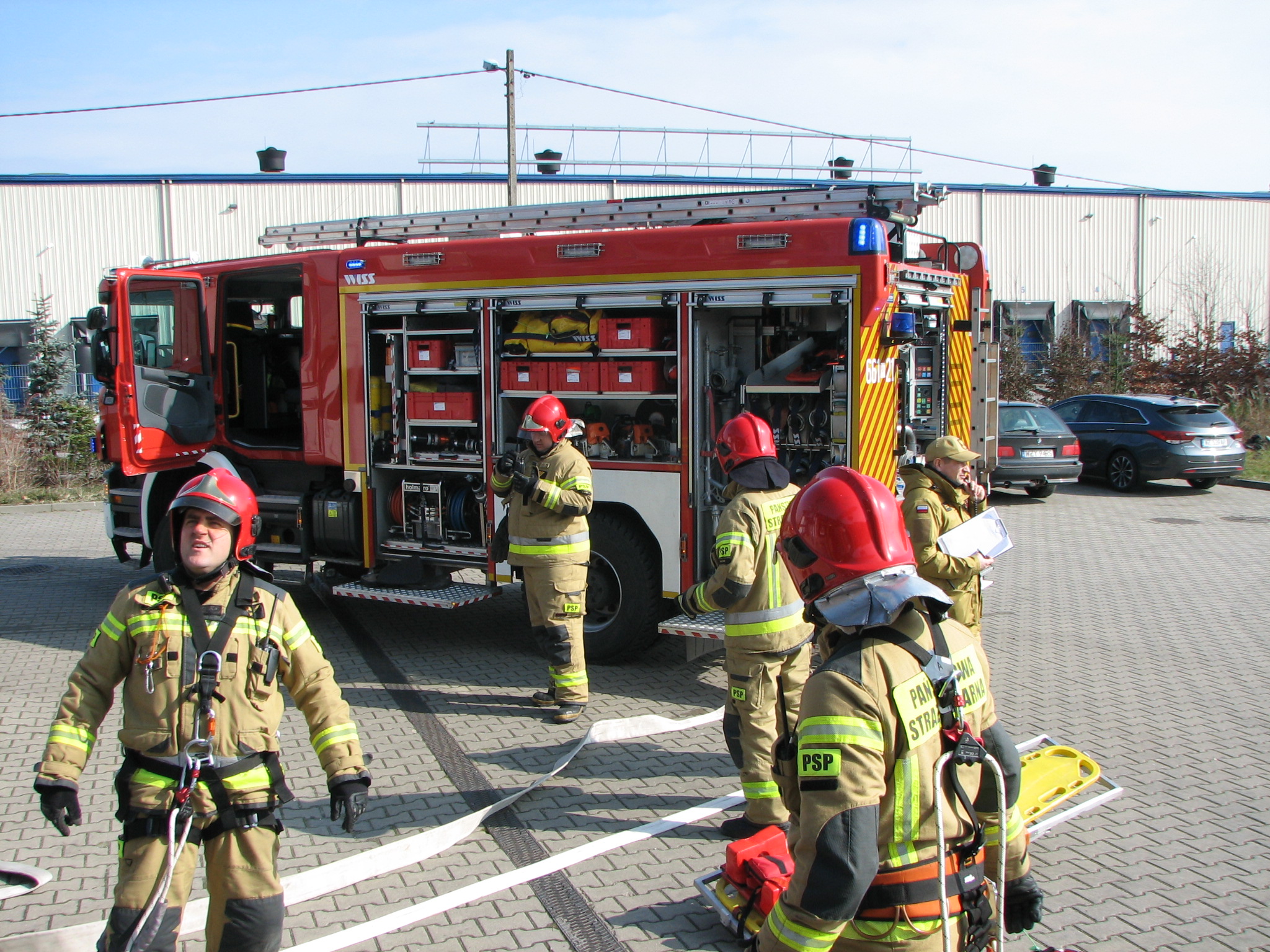 W dniu 22 marca około godziny 13 w budynku Jednostki Ratowniczo Gaśniczej w Błoniu rozległ się dźwięk dzwonków alarmowych. Zastępy GBA i SH25 wyjazd alarmowy przed garaże. Jak się okazało To tylko inspekcja gotowości operacyjnej. Zespół inspekcyjny przeprowadził kontrolę wyposażenia oraz posiadanych dokumentów przez ratowników. Po potwierdzeniu zgodności obsady z rozkazem przystąpiono do wykonania ćwiczenia. Założenie? Osoba poszkodowana podczas prac dekarskich znajdująca się na dachu garażu. Dodatkowo pożar dachu spowodowany przegrzaniem papy palnikiem gazowym. Dotarcie do poszkodowanego było możliwe po wieży przyległej do dachu. W taki sam sposób została poprowadzona linia gaśnicza. Poszkodowanego ewakuowano na noszach i udzielono KPP, następnie aplikacyjnie przekazano zespołowi ratownictwa medycznego. W między czasie prowadzone były działania gaśnicze, które udało się opanować w obrębie powstania pożaru. Po zakończonym ćwiczeniu praktycznym przystąpiono do sprawdzenia wiedzy teoretycznej. Inspekcja zakończyła się oceną pozytywną a strażacy potwierdzili swoją gotowość to prowadzenia działań ratowniczych na najwyższym poziomie.