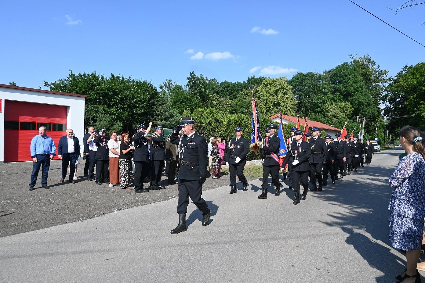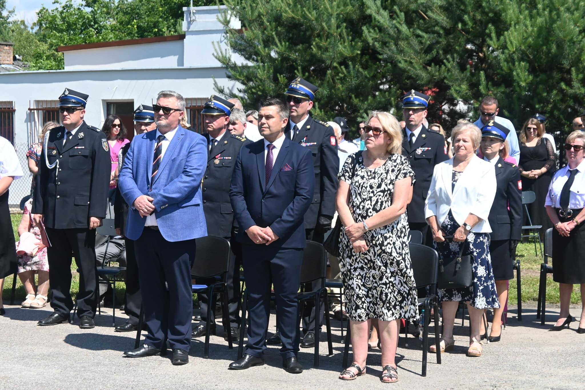 oraz władze samorządowe, przedstawiciele firm, poczty sztandarowe, druhny i druhowie Ochotniczych Straży Pożarnych.