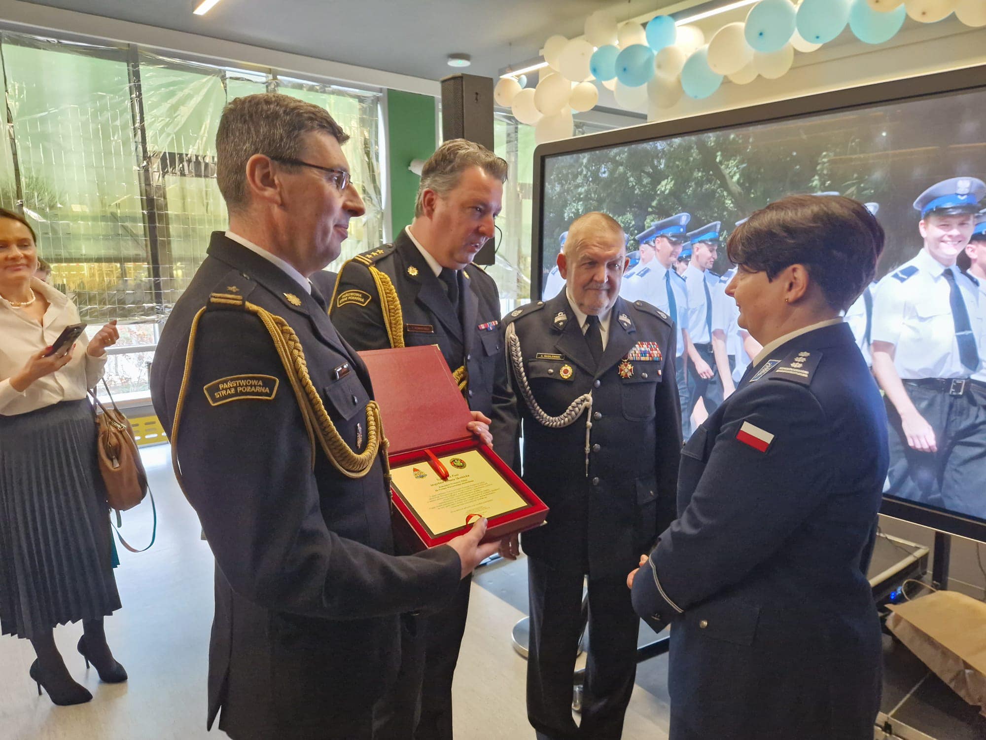 Z tej wyjątkowej okazji, na ręce Pani Komendant Policji, nasza komenda przekazała symboliczną pamiątkę jako wyraz uznania i współpracy na rzecz bezpieczeństwa w powiecie.