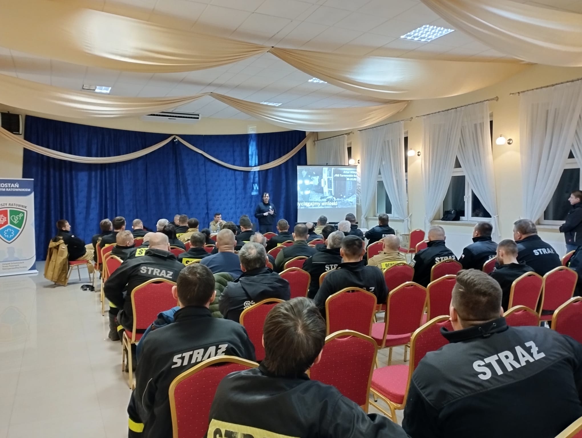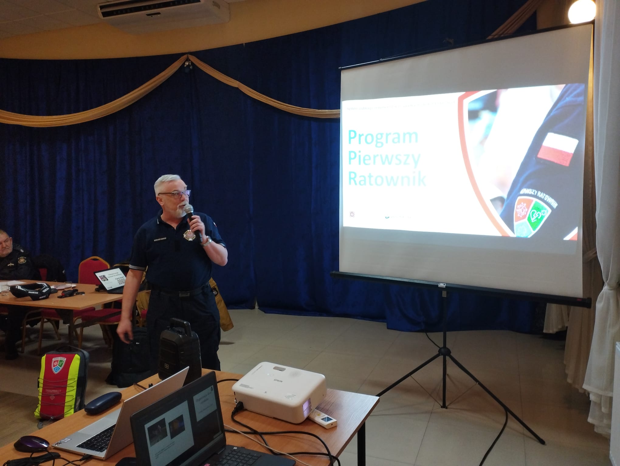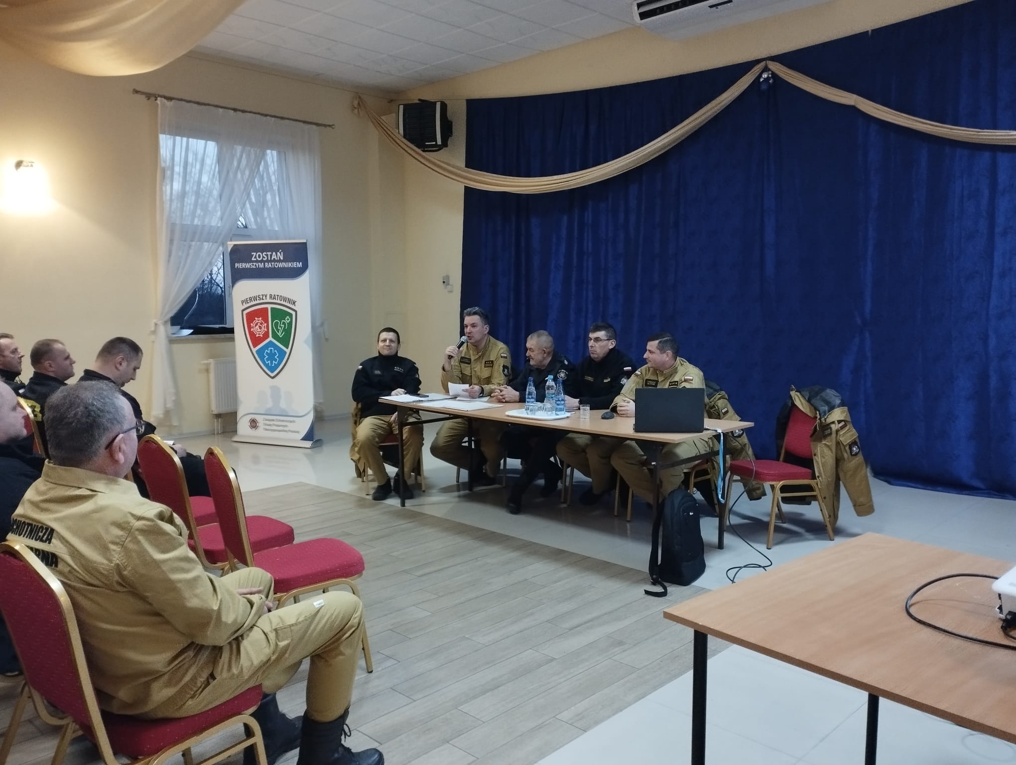 Wystąpił również druh Tomasz Drapiński z OSP Błonie przedstawiając ramowe zasady Akcji Pierwszego Ratownika. Ewentualną chęć przystąpienia do inicjatywy można zgłaszać do druha Tomasza.
