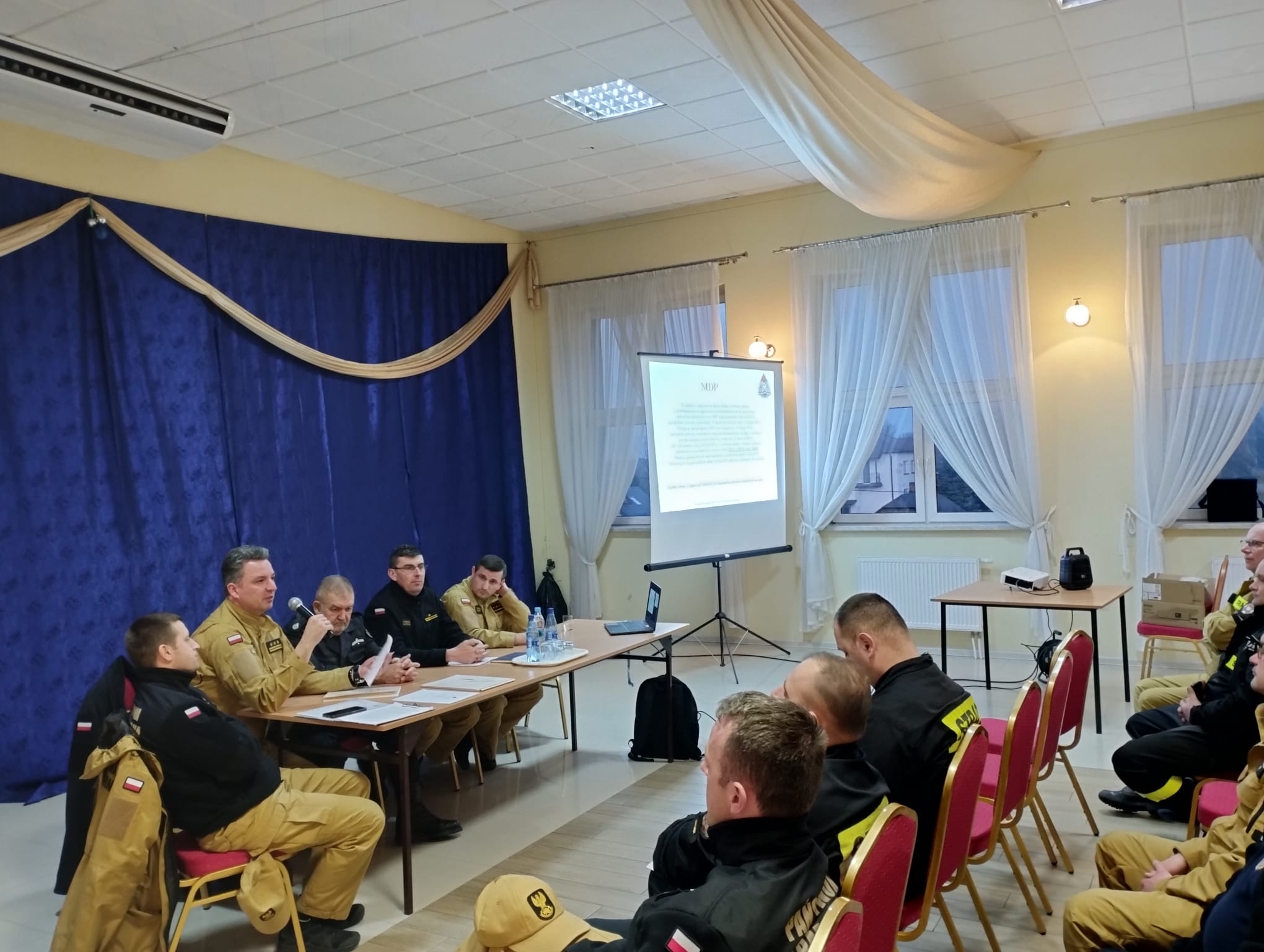 Przedstawiona została realizacja szkoleń za 2023 r. oraz plan na 2024 r. dla Ochotniczych Straży Pożarnych.