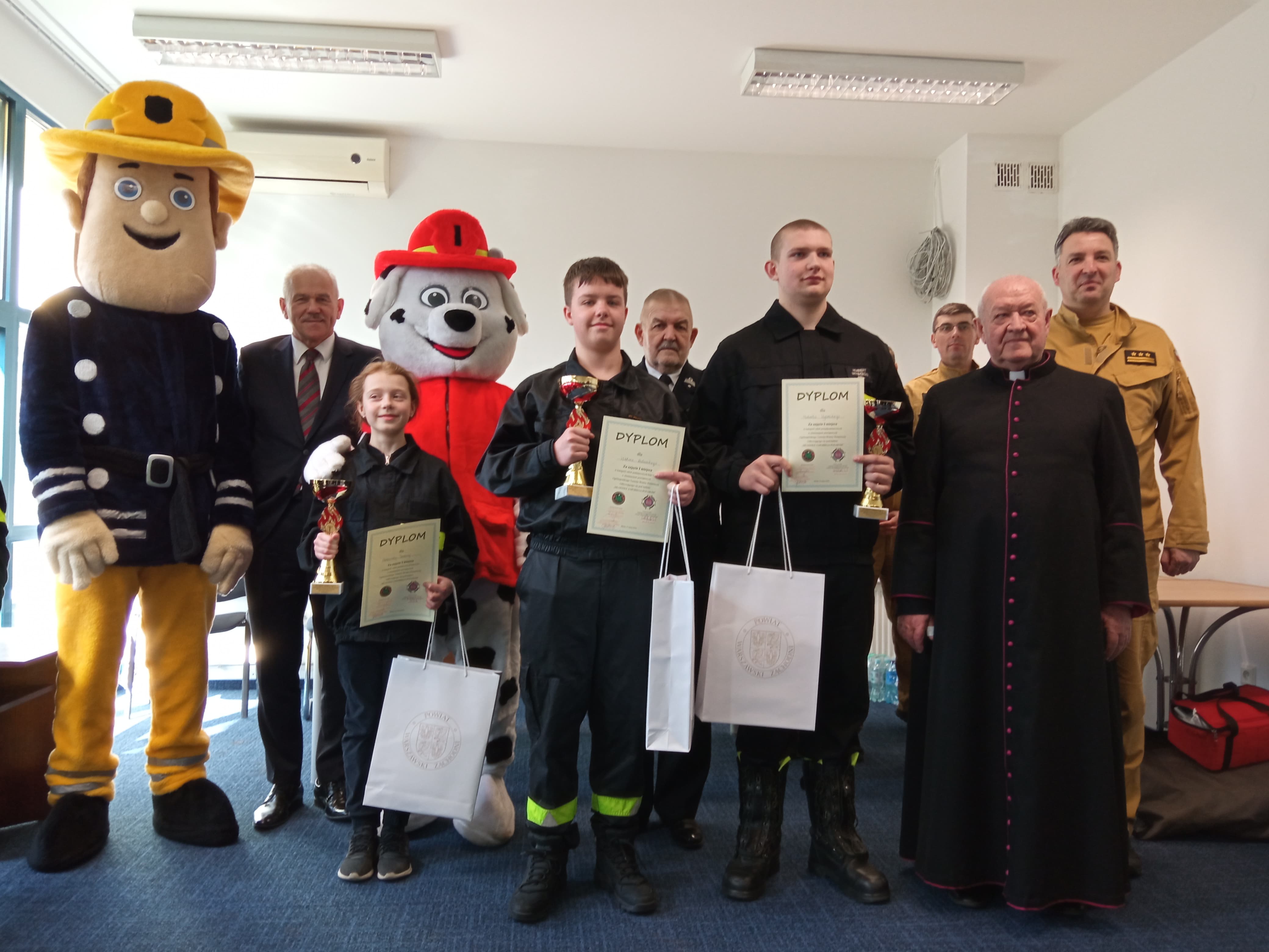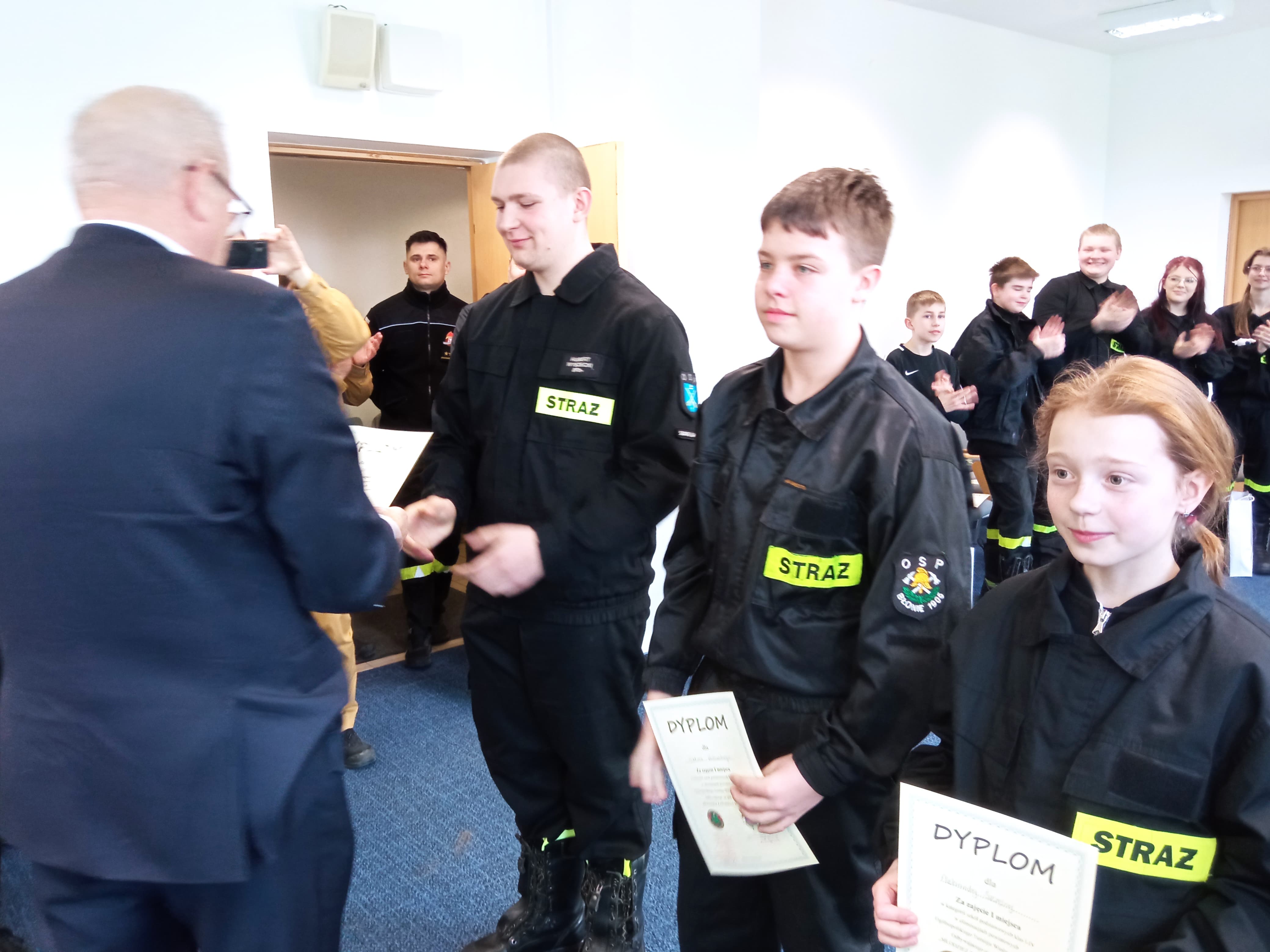 Wyróżnienia uczestnikom wręczyli Starosta Warszawski Zachodni Jan Żychliński, Komendant Powiatowy PSP w Powiecie Warszawskim Zachodnim st. bryg. Robert Nowakowski i Wiceprezes Zarządu Oddziału Wojewódzkiego ZOSP RP dh. Andrzej Wasilewski.