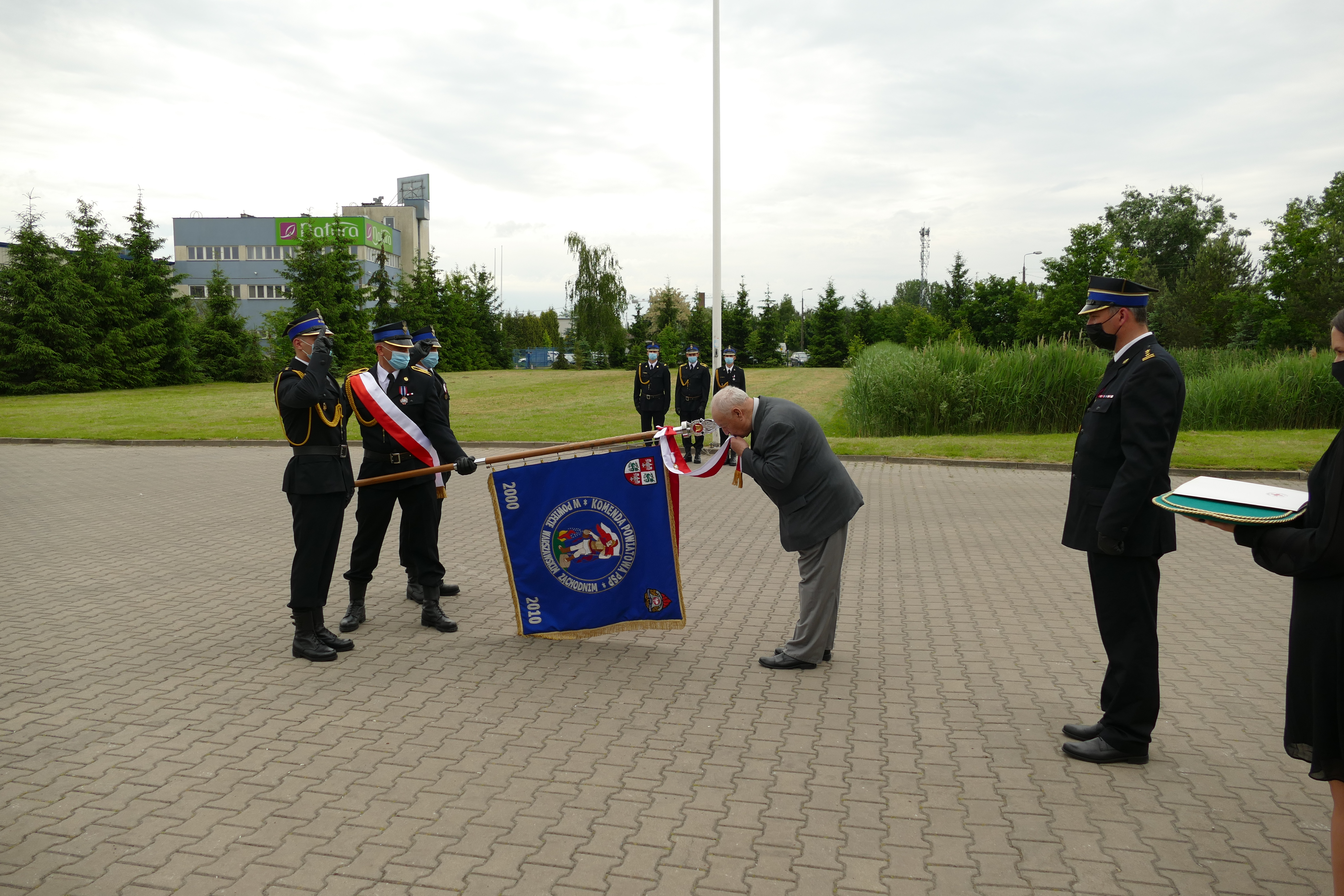 W dalszej części uroczystości nastąpiło wręczenie Odznaki Honorowej II stopnia przyznanej przez Kapitułę Odznaki Honorowej Polskiego Czerwonego Krzyża dla Komendy Powiatowej Państwowej Straży Pożarnej w Powiecie Warszawskim Zachodnim. Aktu dekoracji sztandaru dokonał Prezes Zarządu Rejonowego Polskiego Czerwonego Krzyża Włodzimierz Żabka.