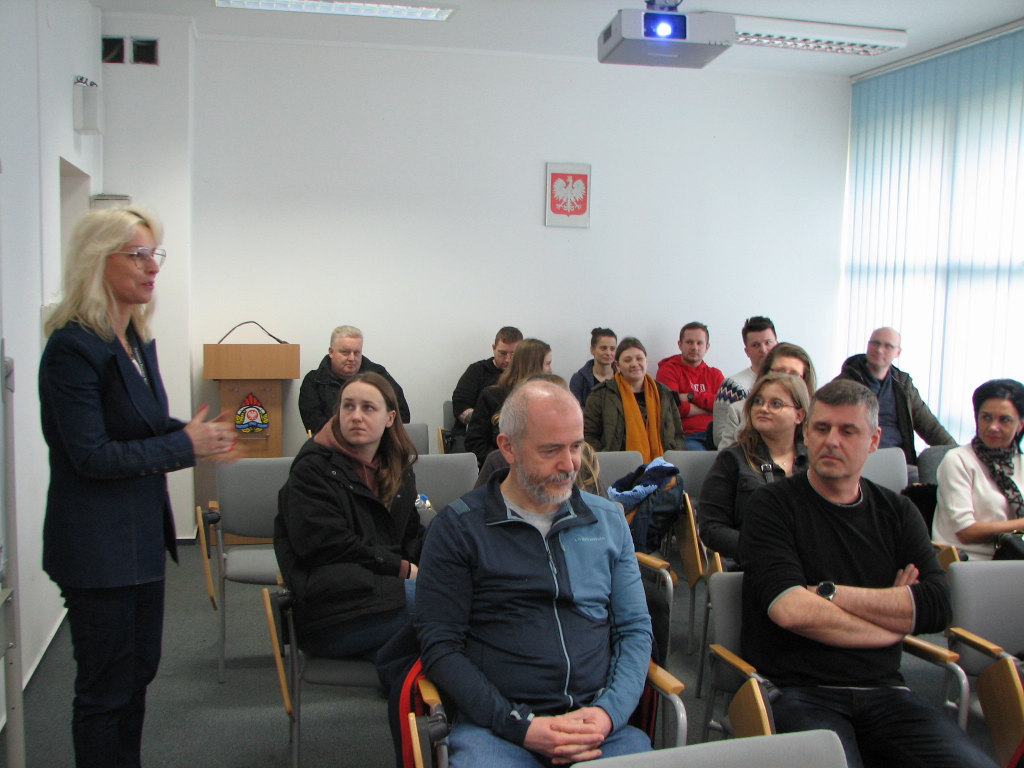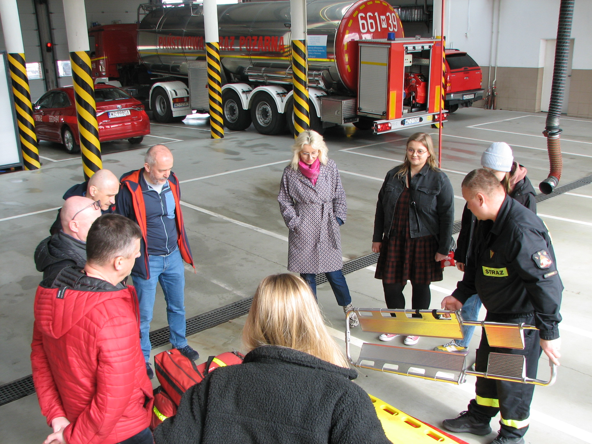 W dniu dzisiejszym w siedzibie KP PSP w Błoniu odbyły się praktyki dla ratowników medycznych poszerzających swoje kwalifikacje. Komendant Powiatowy Państwowej Straży Pożarnej w Powiecie Warszawskim Zachodnim st. bryg. Robert Nowakowski przywitał gości i kilku zdaniach zakreślił charakterystykę funkcjonowania Jednostek Ochrony Przeciwpożarowej. Ponadto omówione zostały zasady działania Krajowego Systemu Ratowniczo Gaśniczego, rozmieszczenie jednostek ochrony przeciwpożarowej oraz zakresu w jakim działają w przypadku udzielania Kwalifikowanej Pierwszej Pomocy. Praktykanci zostali zaznajomieni ze sprzętem będącym na wyposażeniu jednostek KSRG oraz procedurami obowiązującymi w systemie. Aby przybliżyć specyfikę pracy w straży na koniec zaprezentowana została komora dymowa oraz sala edukacyjna „Ognik”.