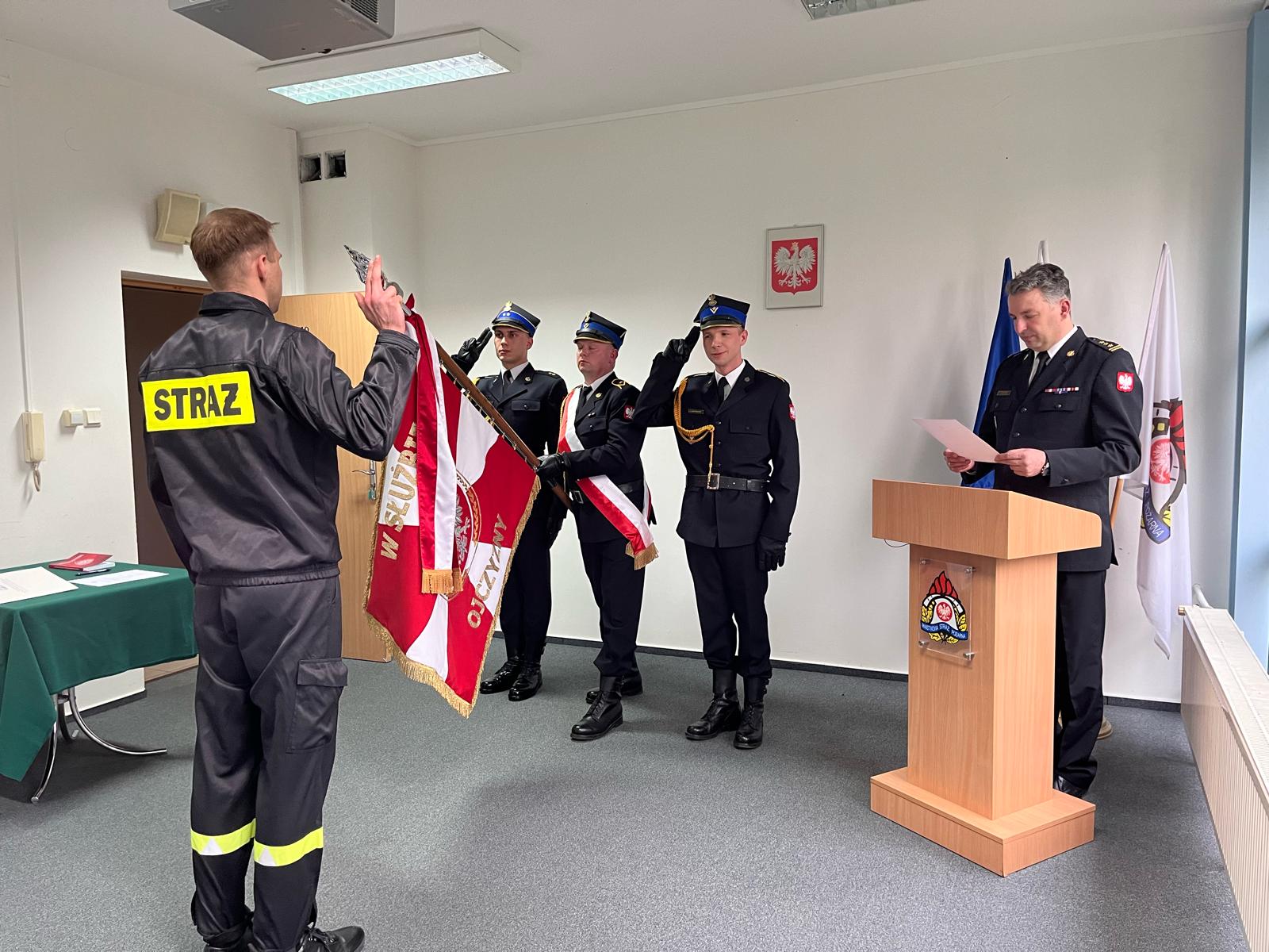 W dniu 29.02.2024 odbyło się ślubowanie, niedawno zatrudnionego strażaka Łukasza Krajewskiego. Aktualnie Łukasz czeka na szkolenie, które przygotuje go do wyzwań, jakie niesie ze sobą zawód strażaka. Życzymy mu wytrwałości, determinacji i owocnej nauki.