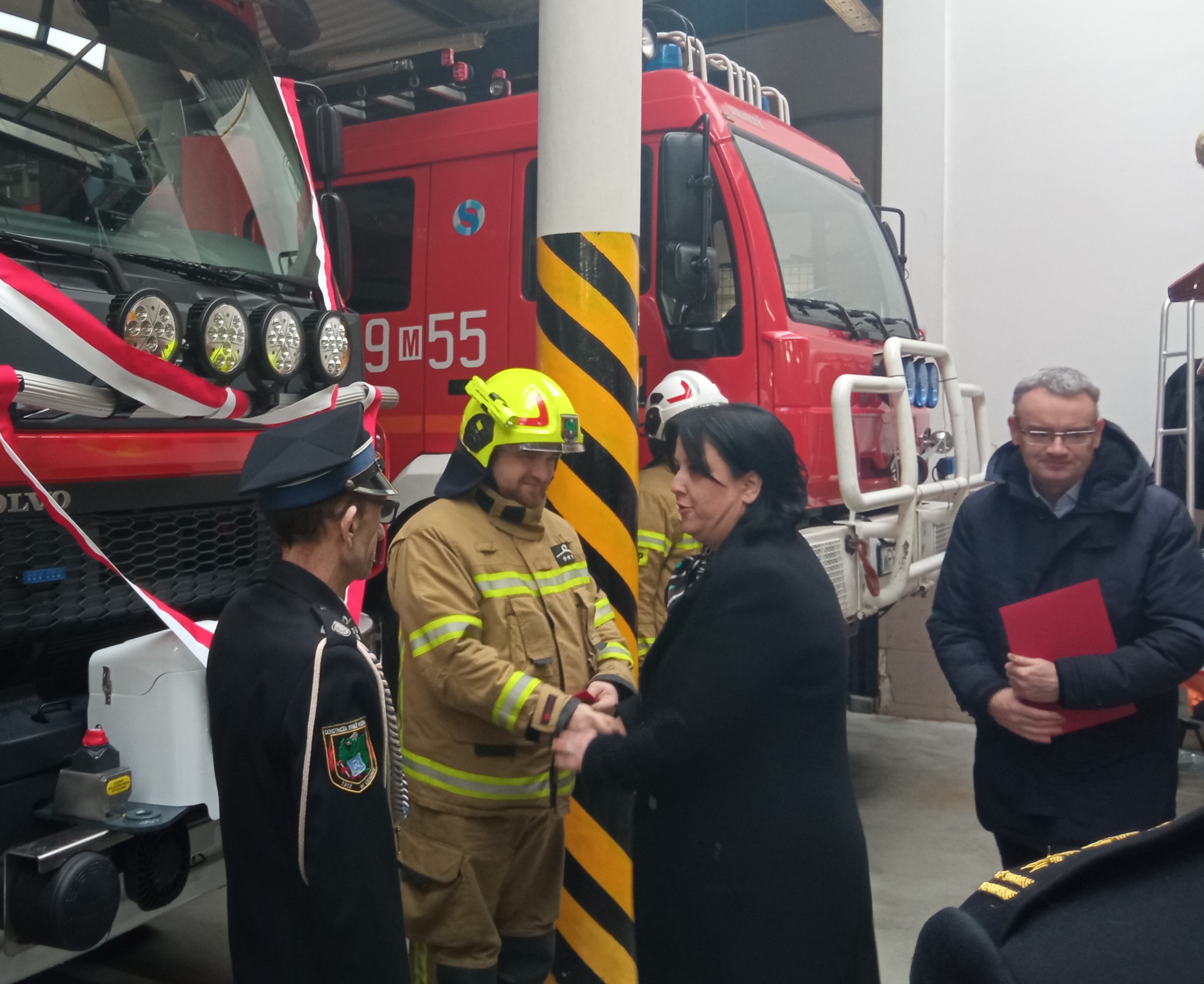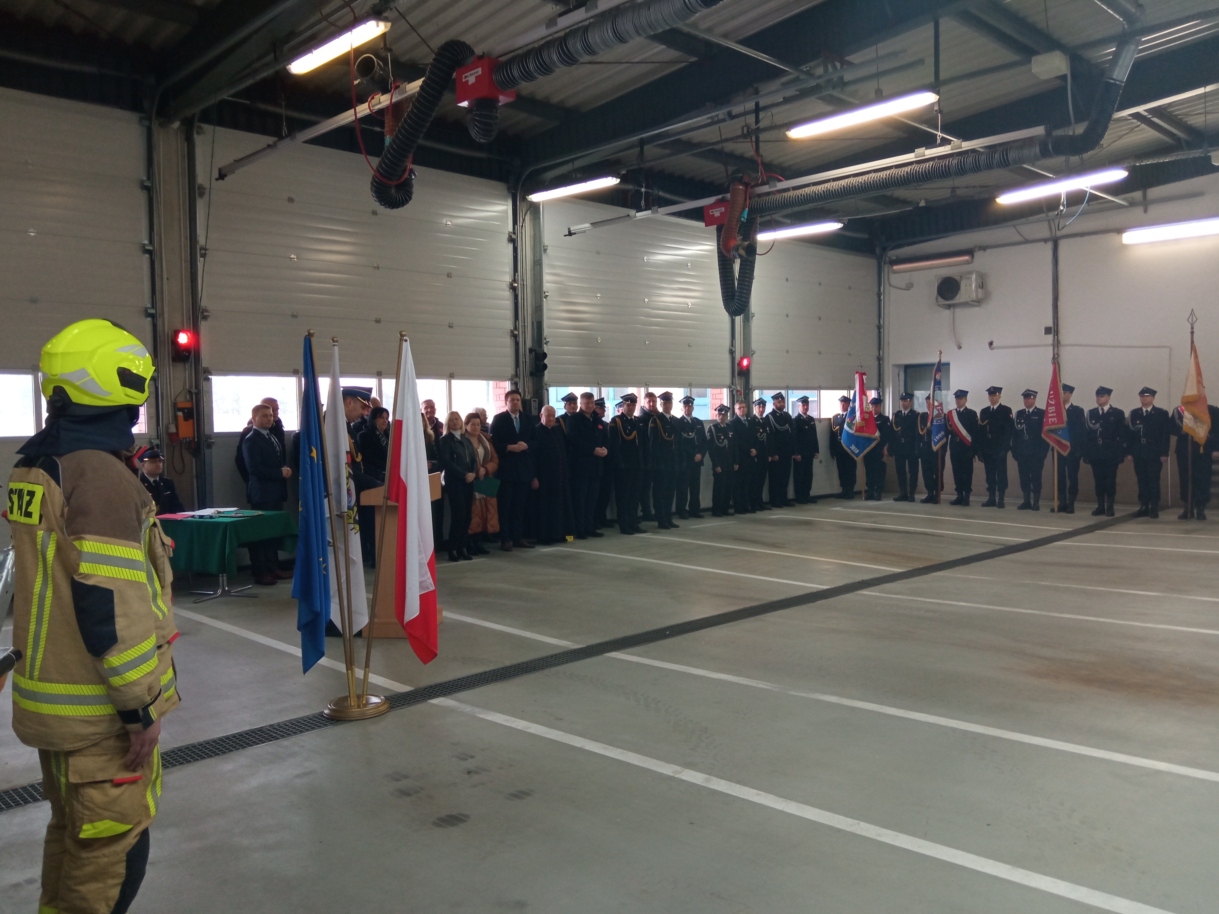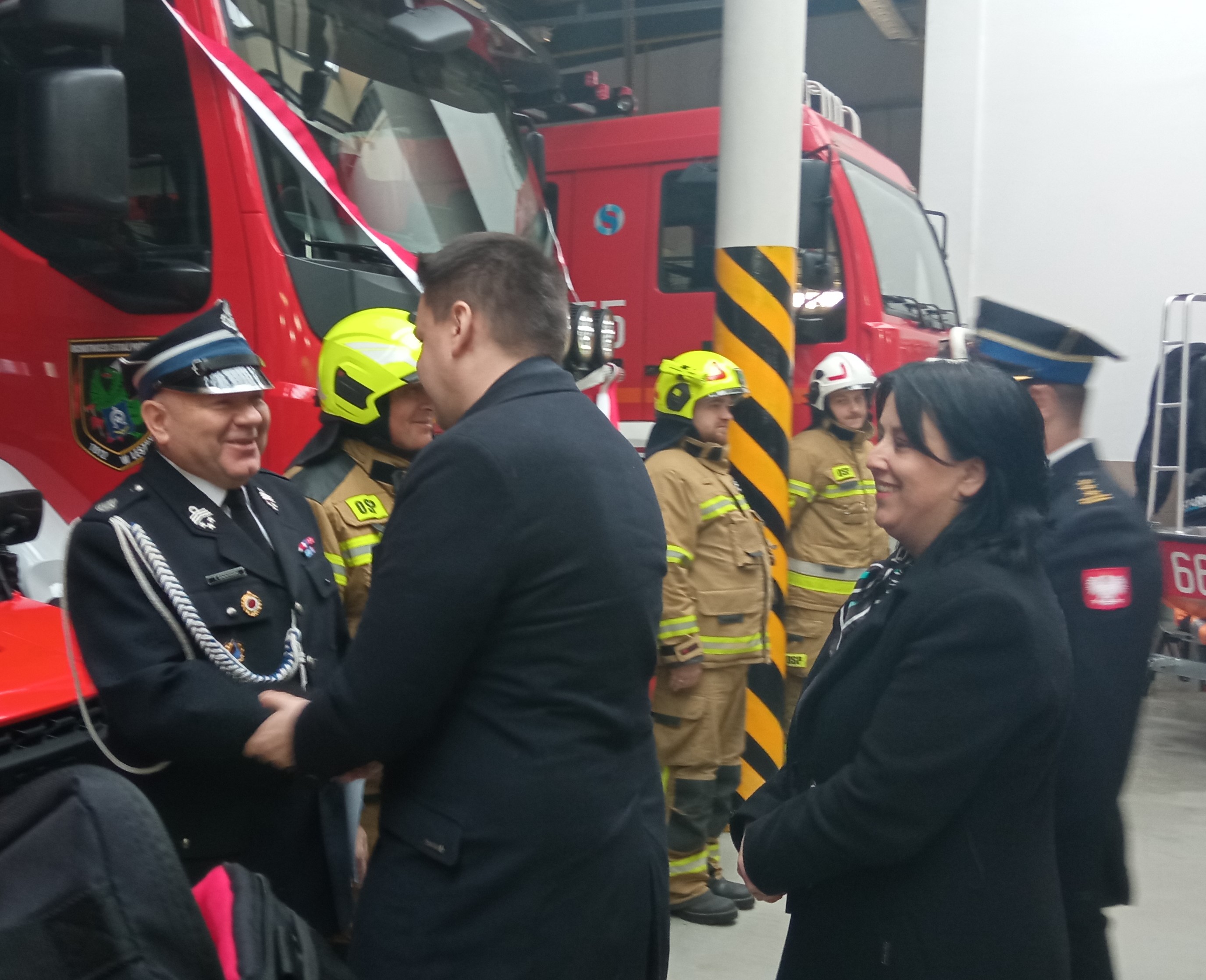 Po przywitaniu przybyłych gości przez st. bryg. Roberta Nowakowskiego Komendanta Powiatowego Państwowej Straży Pożarnej w Powiecie Warszawskim Zachodnim nastąpiło uroczyste wręczenie aktów przekazania wyposażenia.