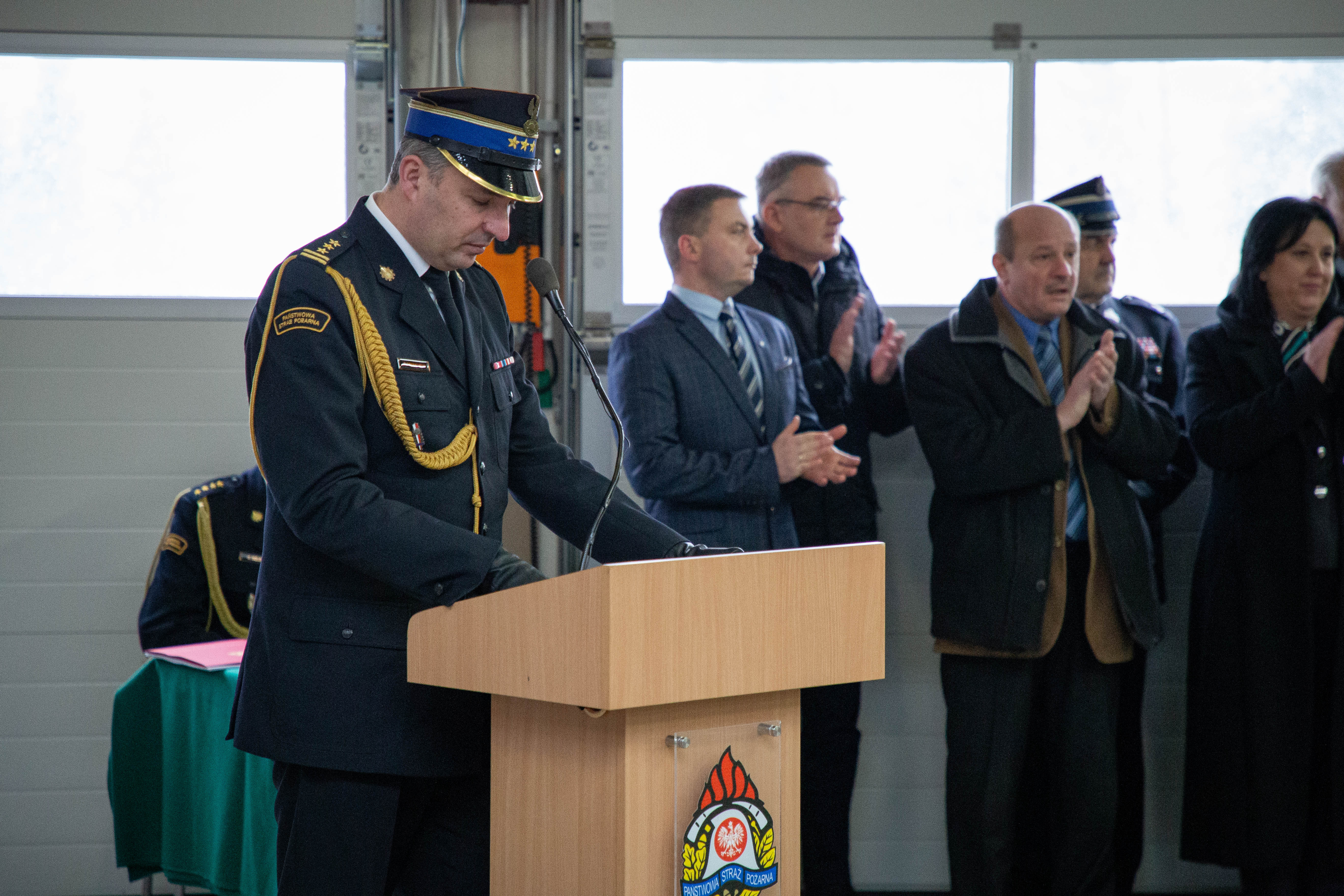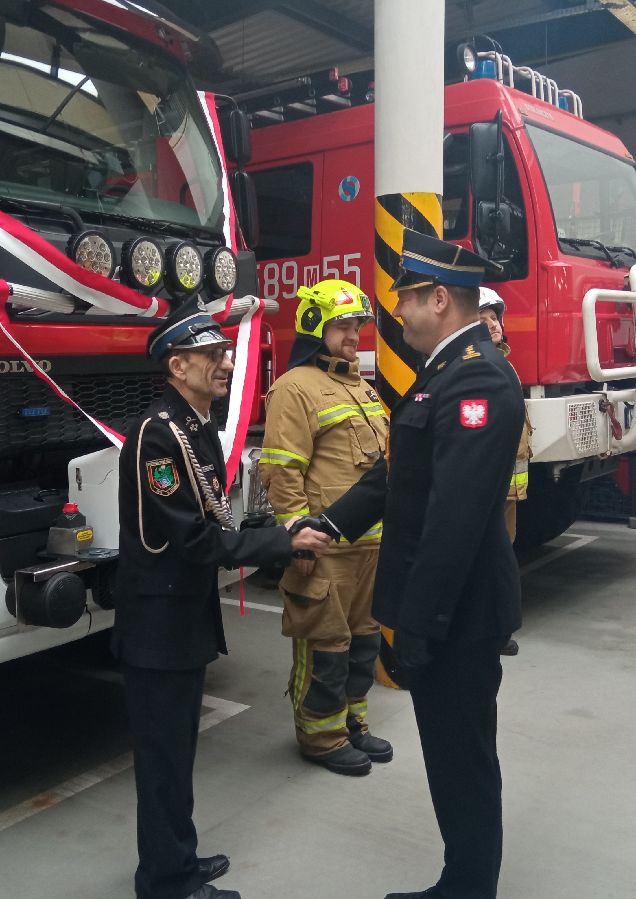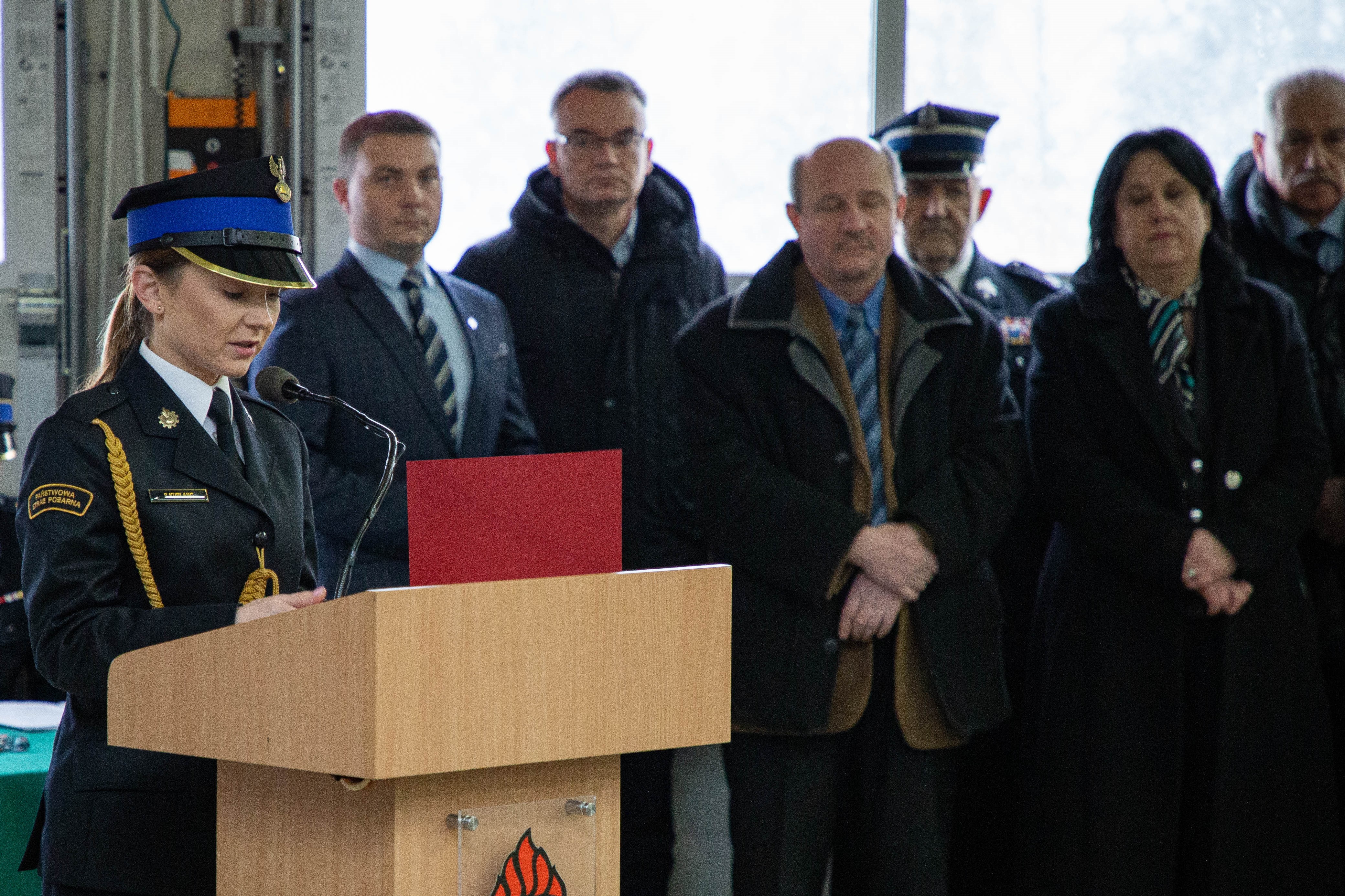 Po przywitaniu przybyłych gości przez st. bryg. Roberta Nowakowskiego Komendanta Powiatowego Państwowej Straży Pożarnej w Powiecie Warszawskim Zachodnim nastąpiło uroczyste wręczenie aktów przekazania wyposażenia.