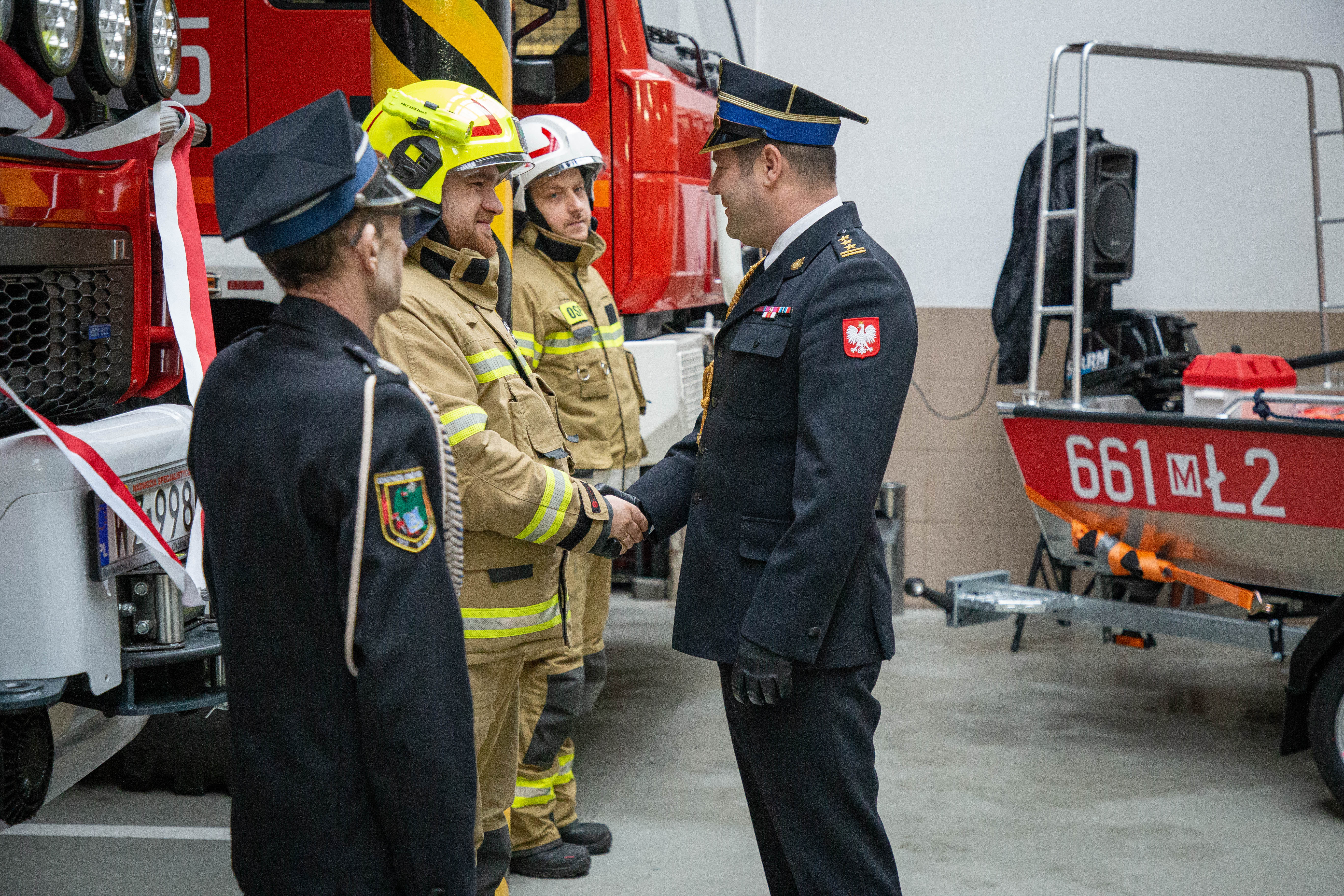 W czasie uroczystości przekazano w użytkowanie dla OSP Leszno średni samochód ratowniczo-gaśniczy VOLVO GBA 3,2/16-4/40. Zakup został zrealizowany w ramach zadania publicznego pt. ‘’ Zapewnienie gotowości bojowej jednostki ochrony przeciwpożarowej włączonej do krajowej systemu ratowniczo-gaśniczego’’. Dokonano również przekazania średniego samochodu ratowniczo-gaśniczego 2/16/4-STAR M90/1466 dla OSP Brwinów. Ponadto przekazano 2 nowe płaskodenne aluminiowe łodzie ratownicze wraz z wyposażeniem dla jednostki OSP Dziekanów Polski i OSP Łomianki. Łodzie zakupione zostały w ramach realizacji pilotażowego programu zakupu łodzi ratowniczych dla jednostek Ochotniczych Straży Pożarnych z terenu województwa mazowieckiego, finansowanego z rezerwy celowej Budżetu Państwa.
