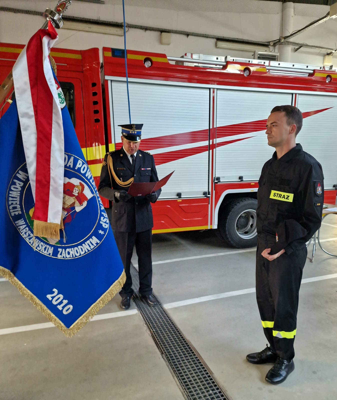W dniu 1.09.2023 r. w Komendzie Powiatowej Państwowej Straży Pożarnej w Powiecie Warszawskim Zachodnim z siedzibą w Błoniu odbyła się uroczysta zbiórka z okazji ślubowania przyjętego w 2023 roku stażysty - strażaka do służby w PSP.