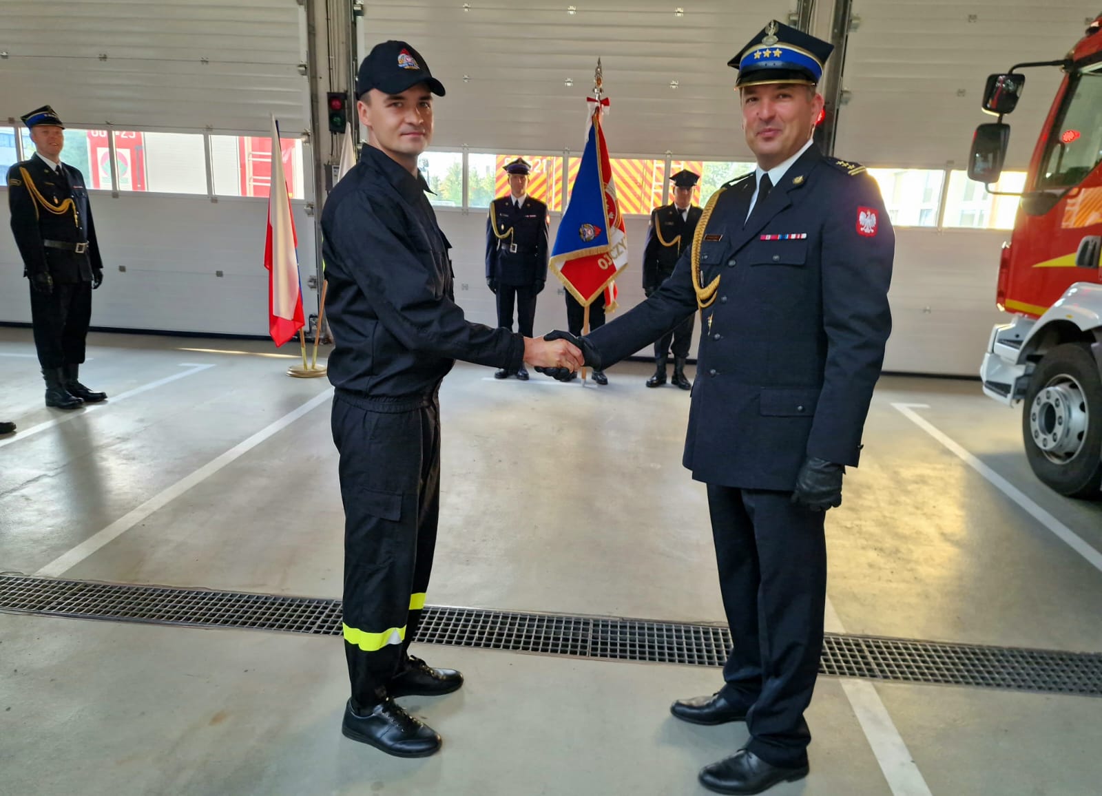 Nowo przyjętemu strażakowi życzymy zdrowia, wytrwałości oraz realizowania się w służbie. Niech satysfakcja z dokonanego wyboru drogi życiowej i zawodowej w przyszłości przyniesie dumę z faktu niesienia pomocy potrzebującym jak również z bycia strażakiem.