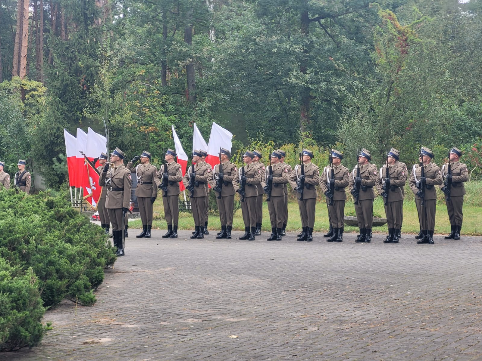 Po odczytaniu Apelu Pamięci Kompania Reprezentacyjna Wojska Polskiego oddala salwę honorową, po której delegacje złożyły wieńce i kwiaty na grobach pomordowanych. Wieniec w imieniu Mazowieckiego Komendanta Wojewódzkiego złożył mł. bryg. mgr inż. Łukasz Zieliński, w imieniu Powiatowego Komendanta Państwowej Straży Pożarnej w Powiecie Warszawskim Zachodnim mł. bryg. Michał Prochenka oraz asp. Tomasz Janowski, bryg. Łukasz Kochanowski Zastępca Komendanta Powiatowego PSP w Nowym Dworze Mazowieckim oraz w imieniu Rektora-Komendanta Akademii Pożarniczej kwiaty złożył kpt. T. Górski.