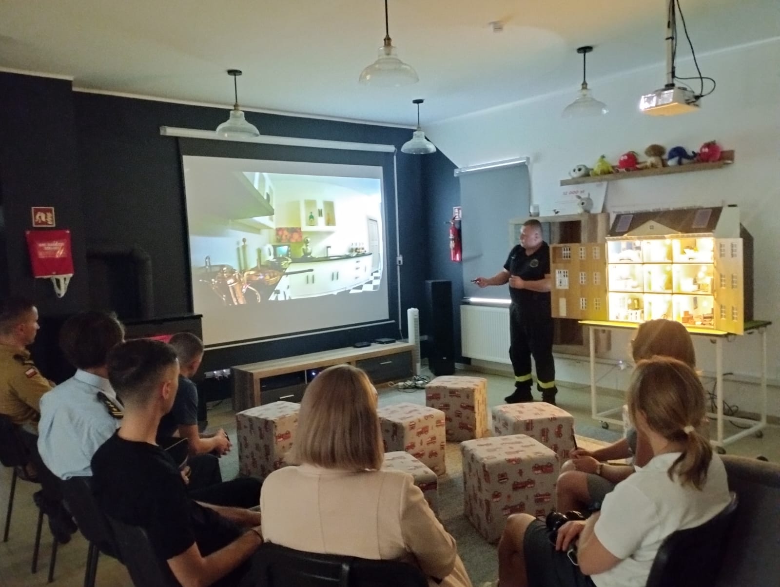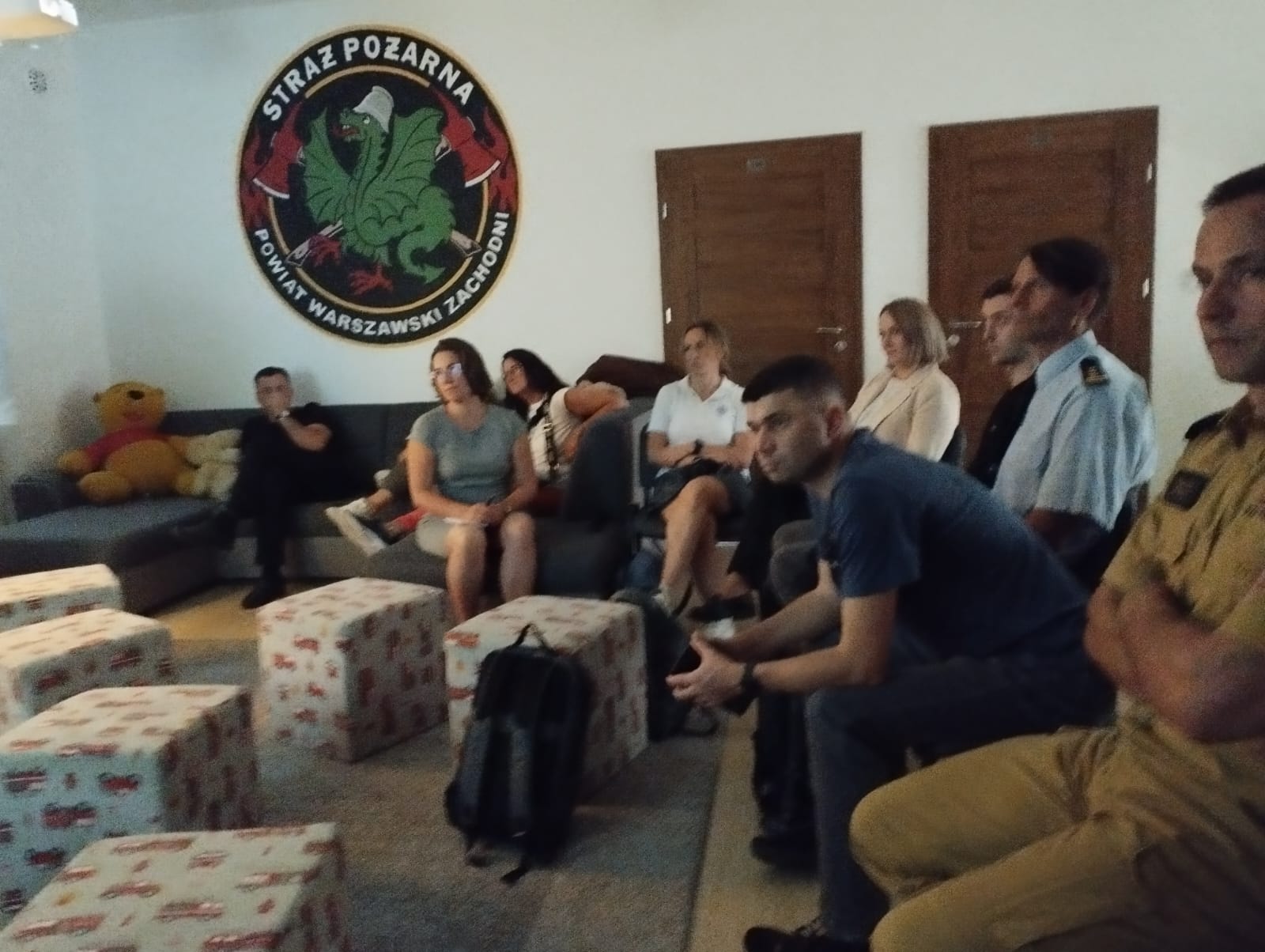 W Komendzie Powiatowej PSP w powiecie Warszawskim Zachodnim zapoznali się z systemem szkoleniowym strażaków PSP i OSP. Zostali oprowadzeni po komorze dymowej i opowiedziano o zasadach przeprowadzenia okresowych szkoleń i testów. Zapoznali się również z salą edukacyjną „Ognik” gdzie zobaczyli jak edukujemy najmłodsze pokolenie przedstawiając zagorzenia oraz sposób powiadamiania służb i udzielania pierwszej pomocy.