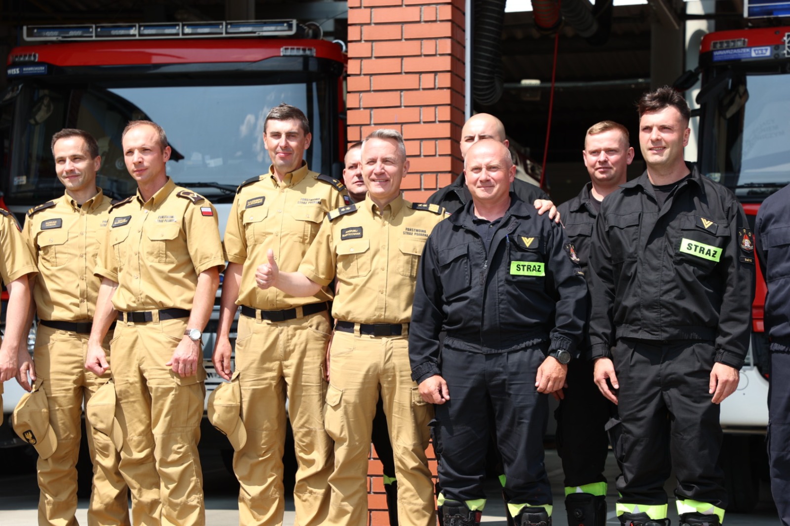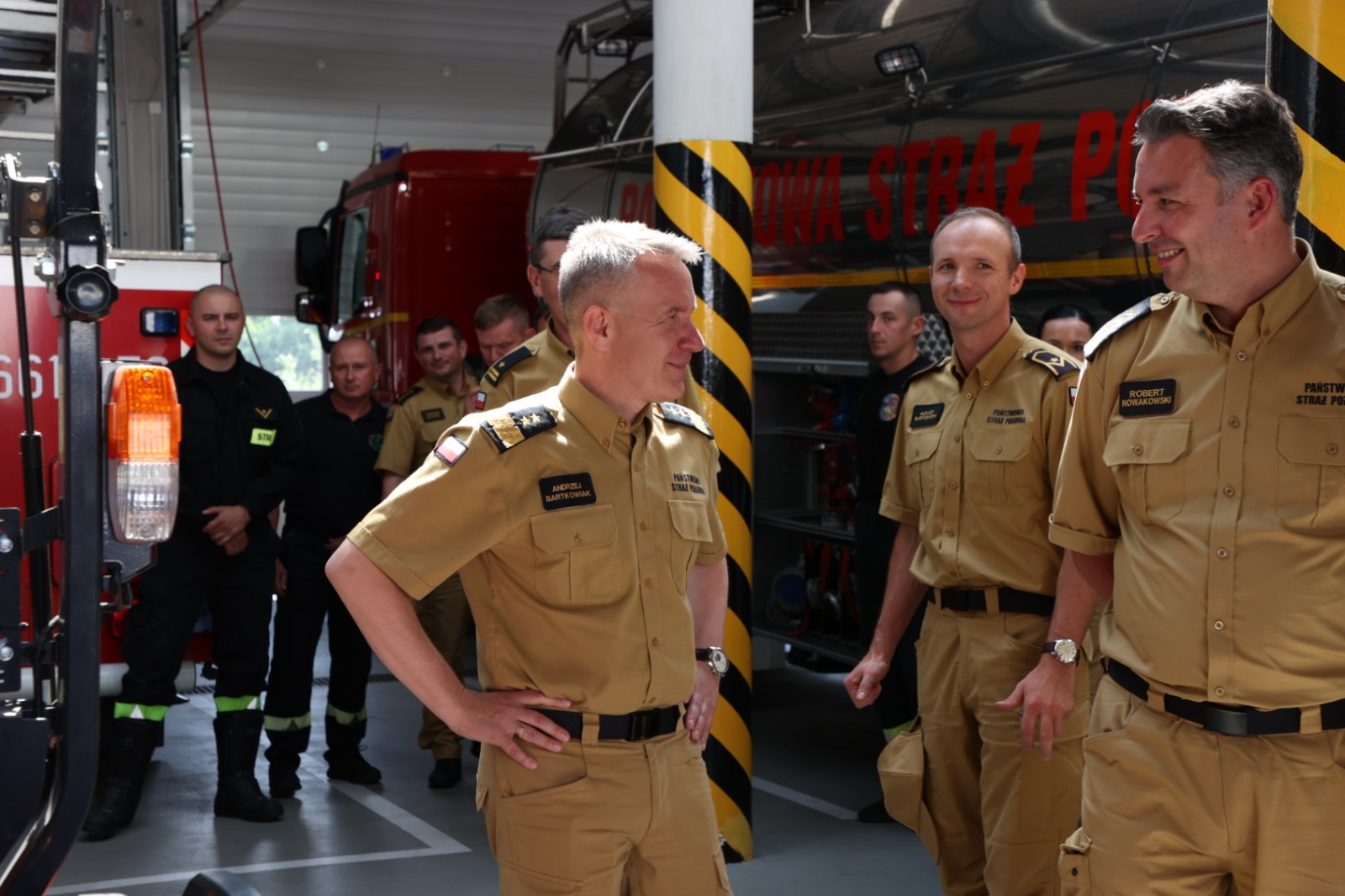 Komendant główny PSP zapoznał się z warunkami służby w jednostce, zapleczem sprzętowym oraz spotkał się ze strażakami pełniącymi tego dnia służbę w podziale bojowym.