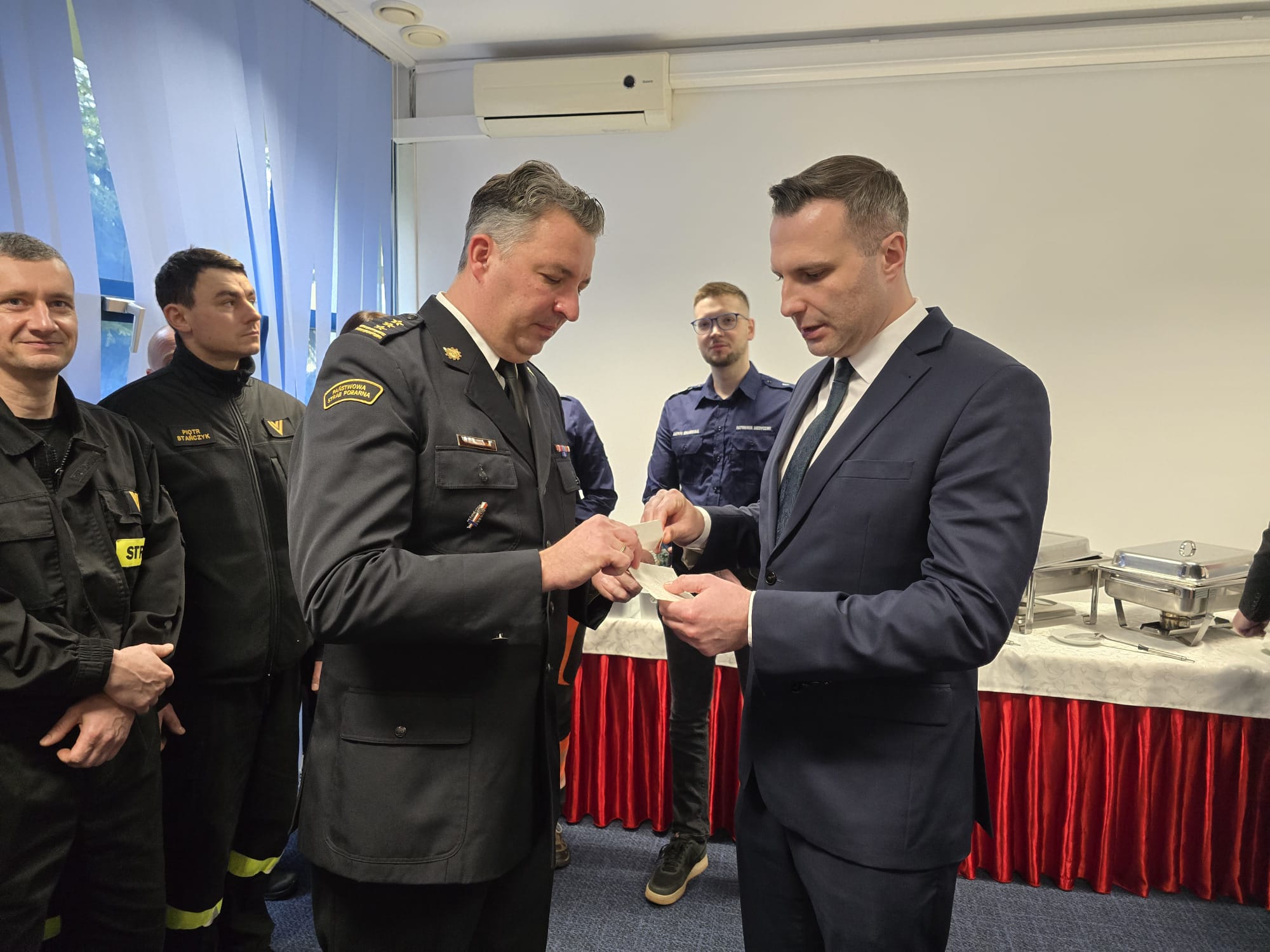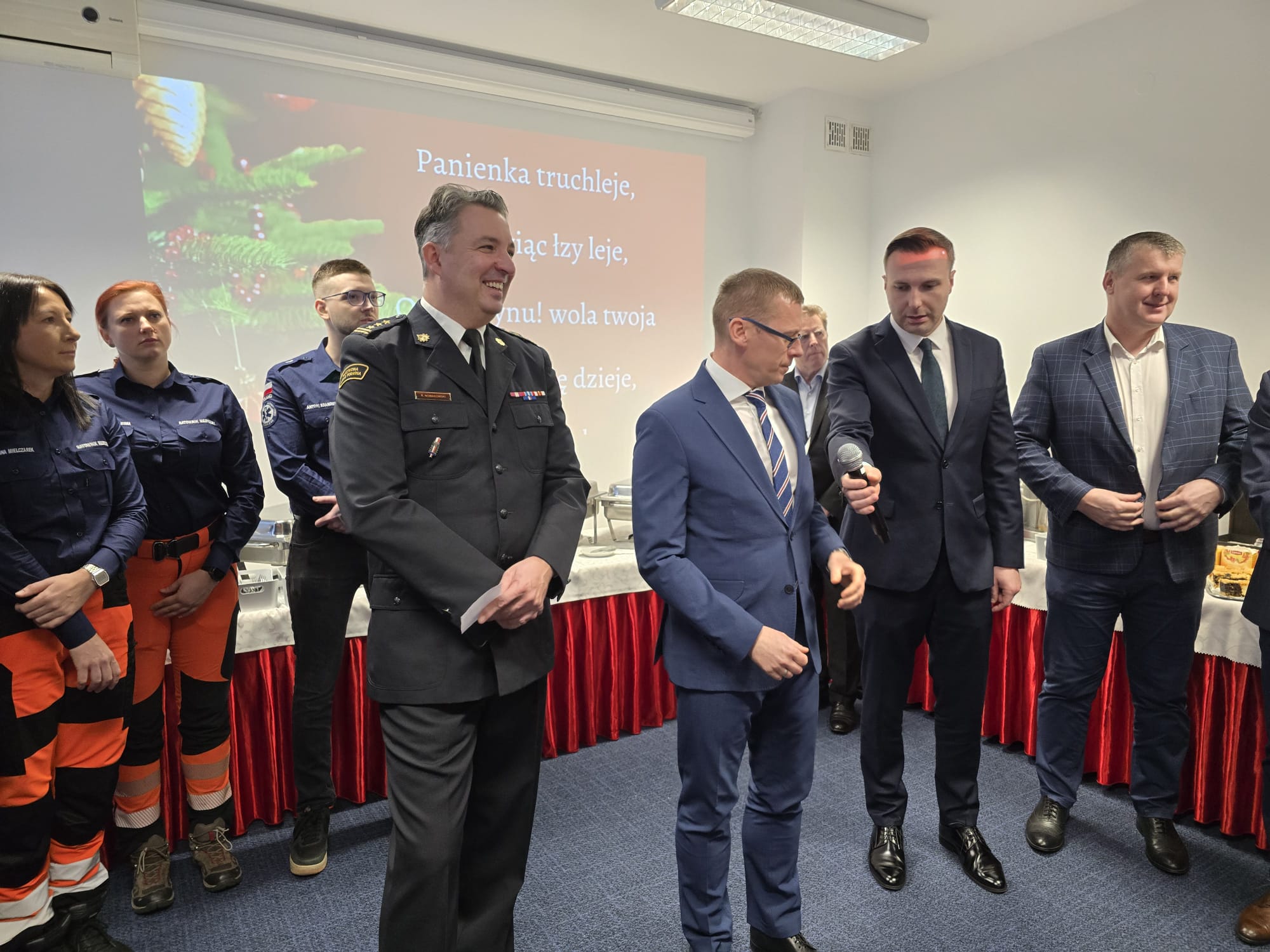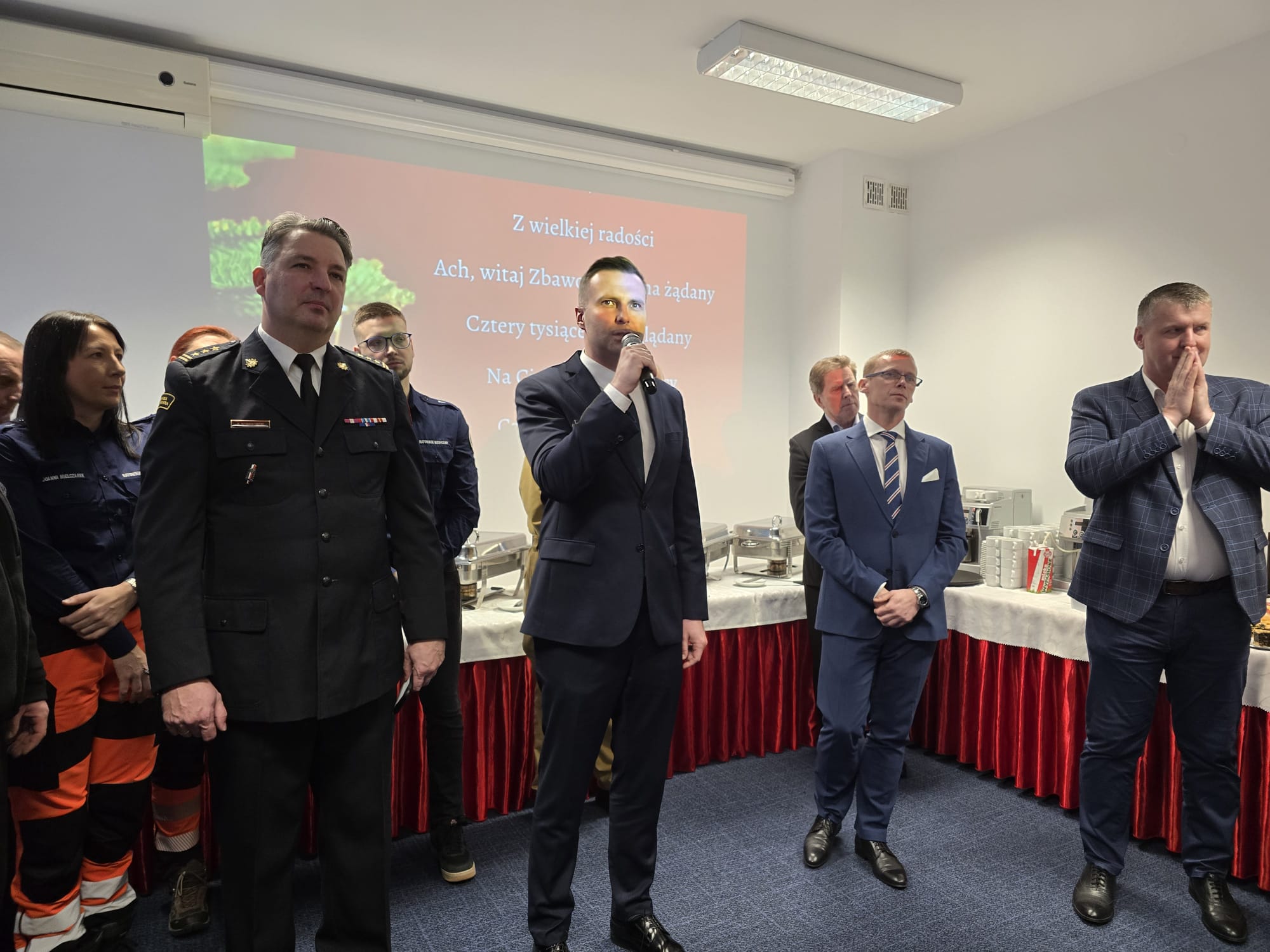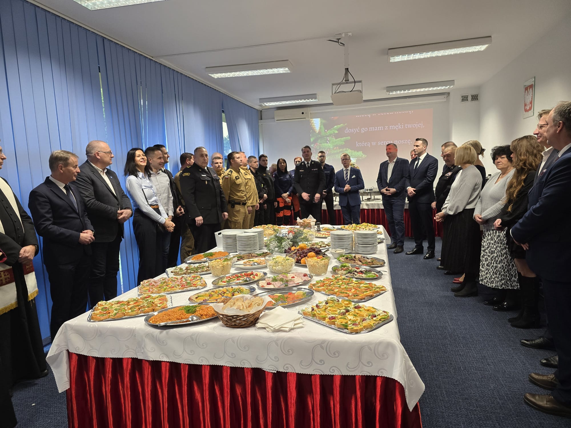 Duchową część uroczystości poprowadził Ksiądz Kapelan Tadeusz Jaworski wraz z Księdzem Proboszczem Jarosławem Wasielewskim, którzy odmówili wspólną modlitwę i rozpoczęli tradycyjne przełamanie się opłatkiem. W atmosferze wzajemnej życzliwości uczestnicy składali sobie świąteczne życzenia, podkreślając znaczenie współpracy, wzajemnego wsparcia oraz jedności formacji ratowniczych.