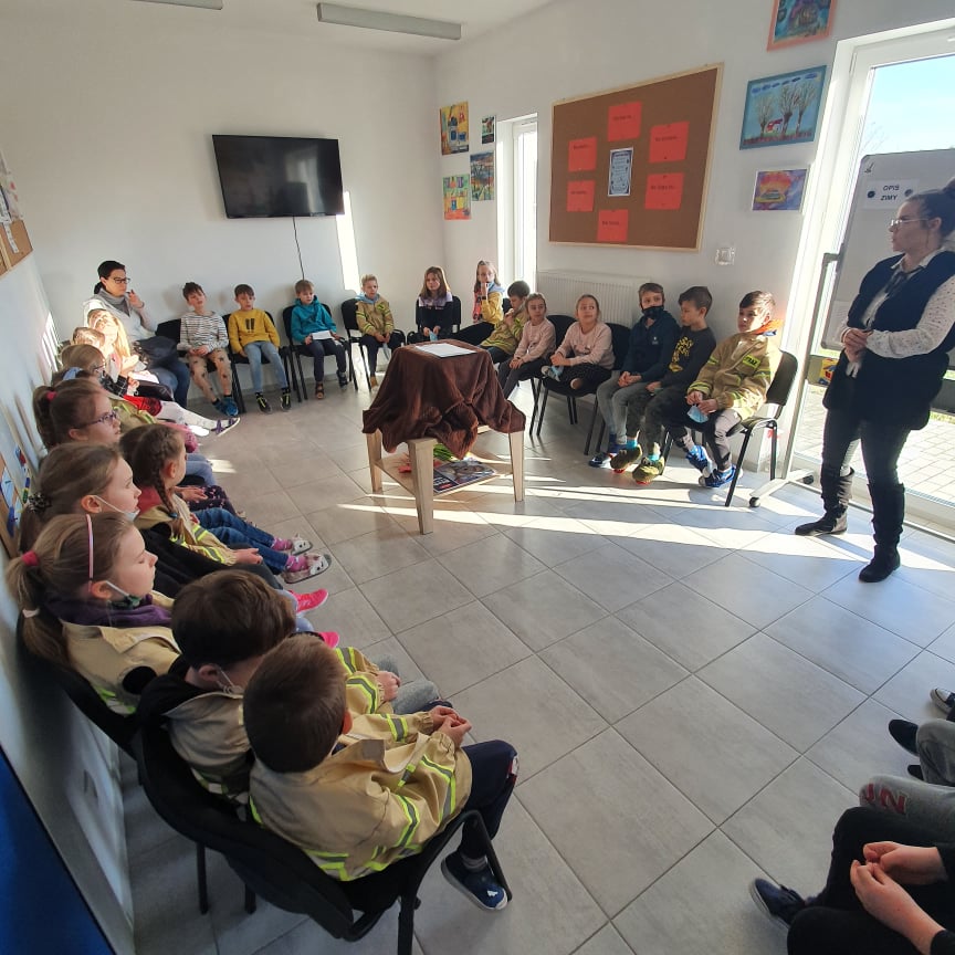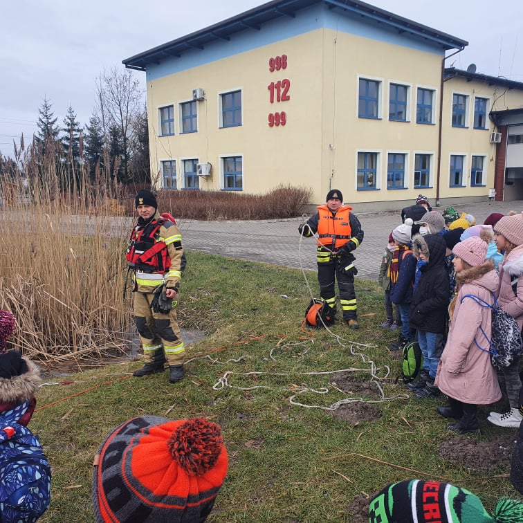 Dziś gościliśmy grupę uczniów z Ożarowa Mazowieckiego, która miała okazję wziąć udział w zajęciach na Sali Ognik oraz obejrzeć pokaz ratownictwa lodowego w wykonaniu strażaków Jednostki Ratowniczo - Gaśniczej.