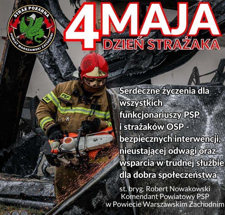 Życzenia Komendanta Powiatowego PSP w Powiecie Warszawskim Zachodnim st. bryg. Robert Nowakowski z okazji Międzynarodowego Dnia Strażaka