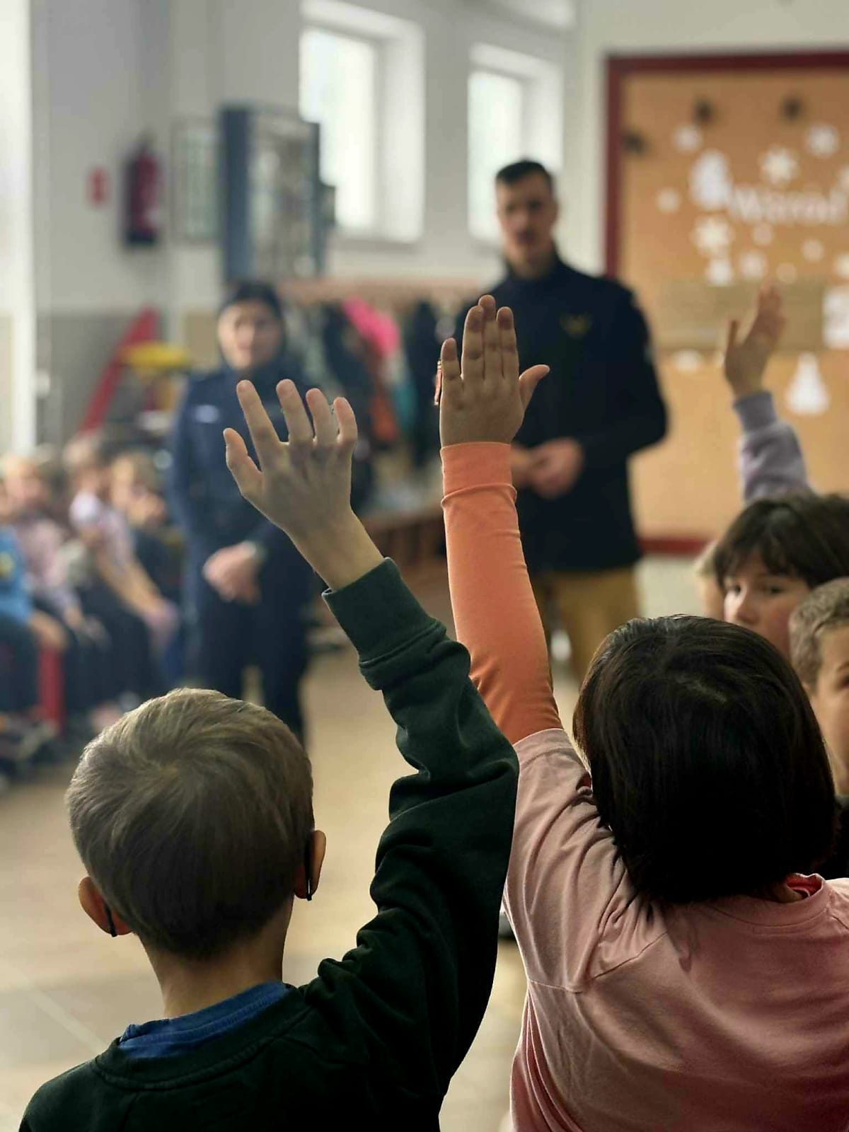 Podczas zajęć mundurowi omówili zasady bezpiecznego zachowania się w czasie ferii zimowych, zarówno w domu, jak i na świeżym powietrzu. Zwrócili szczególną uwagę na zagrożenia związane z zabawami na lodzie, kontaktami z nieznajomymi oraz bezpiecznym poruszaniem się po drogach. W ramach akcji „Czujka na straży Twojego bezpieczeństwa” funkcjonariusz Straży Pożarnej przypomniał o zagrożeniach wynikających z pożarów oraz o znaczeniu posiadania czujek tlenku węgla w domach.