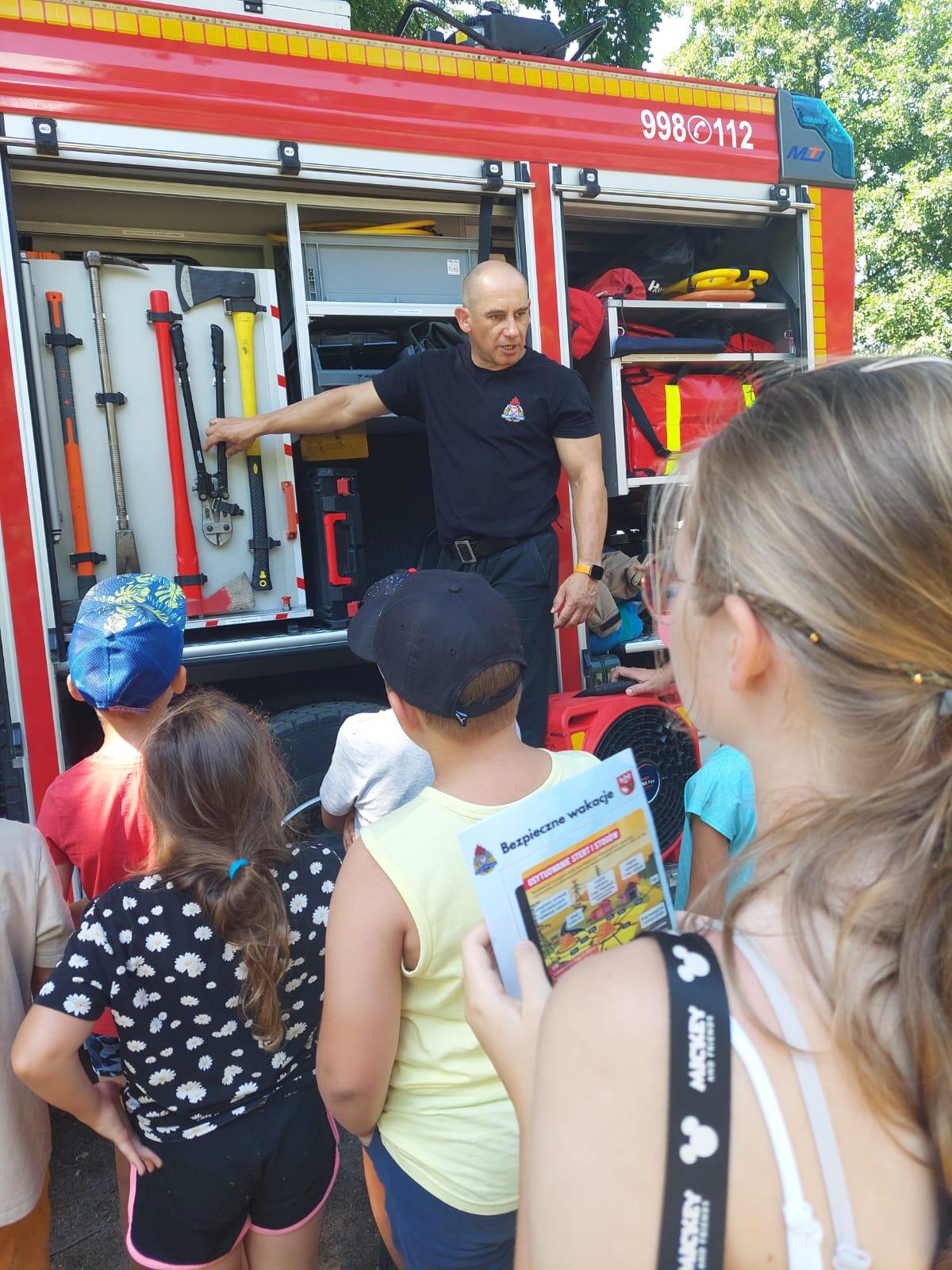 Wakacje to czas zabawy, wypoczynku dzieci i młodzieży na koloniach, obozach, oraz całych rodzin na wyjazdach. Właściwe zachowanie się i przestrzeganie zasad bezpieczeństwa jest gwarancją spokojnego pobytu oraz uniknięcia sytuacji zagrażających życiu i zdrowiu. W związku z tym strażacy z KP PSP w Węgorzewie od początku wakacji biorą udział w pokazach, ćwiczeniach i szkoleniach w ramach akcji „bezpieczne wakacje”. Podczas których omawiają między innymi zasady bezpiecznego wypoczynku nad wodą, udzielania pierwszej pomocy, zachowania się w czasie burzy i silnych wiatrów oraz jak przygotować się do silnych upałów i bezpiecznych żniw.