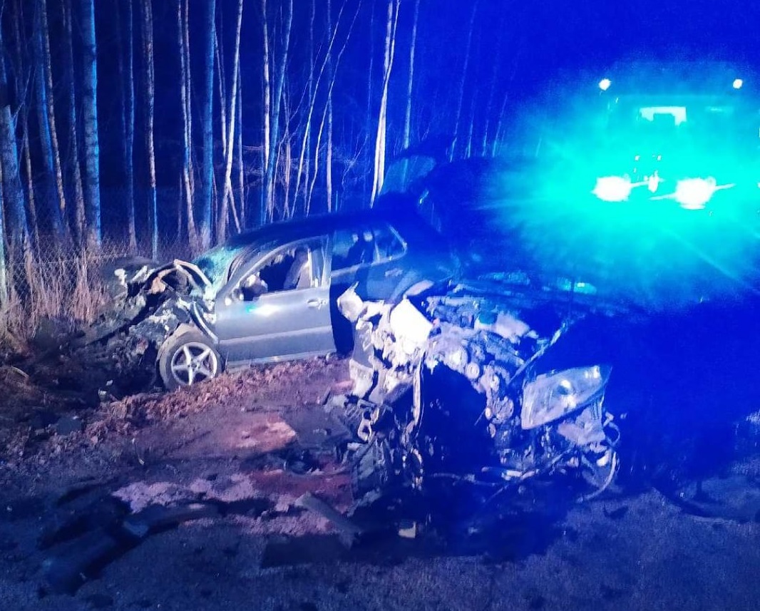 Czołowe zderzenie dwóch samochodów osobowych