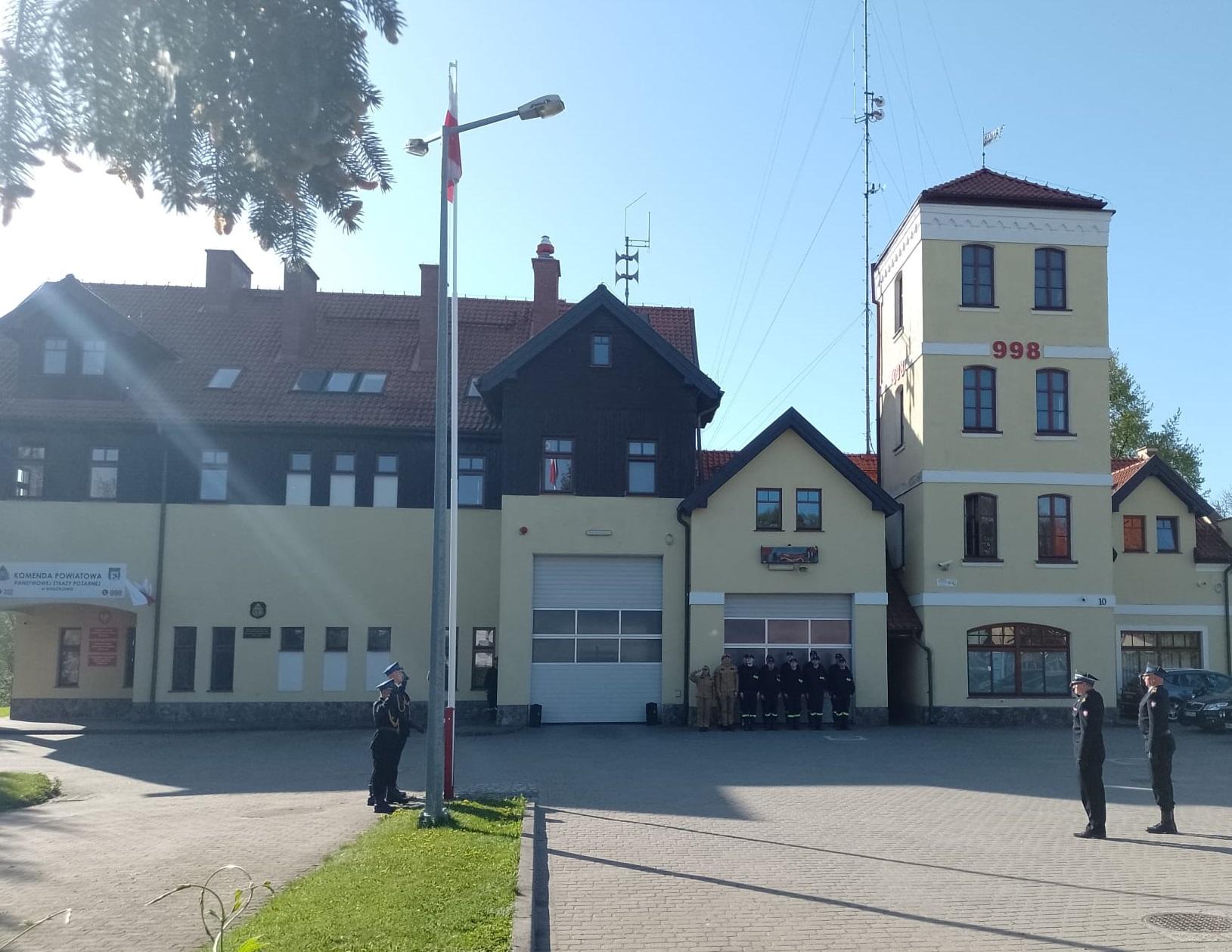 2 maja b.r. na placu Komendy Powiatowej PSP w Węgorzewie odbyła się uroczysta zmiana służby, podczas której dokonano podniesienia flagi na maszt oraz odegraniem hymnu narodowego z okazji Dnia Flagi Rzeczpospolitej Polskiej.