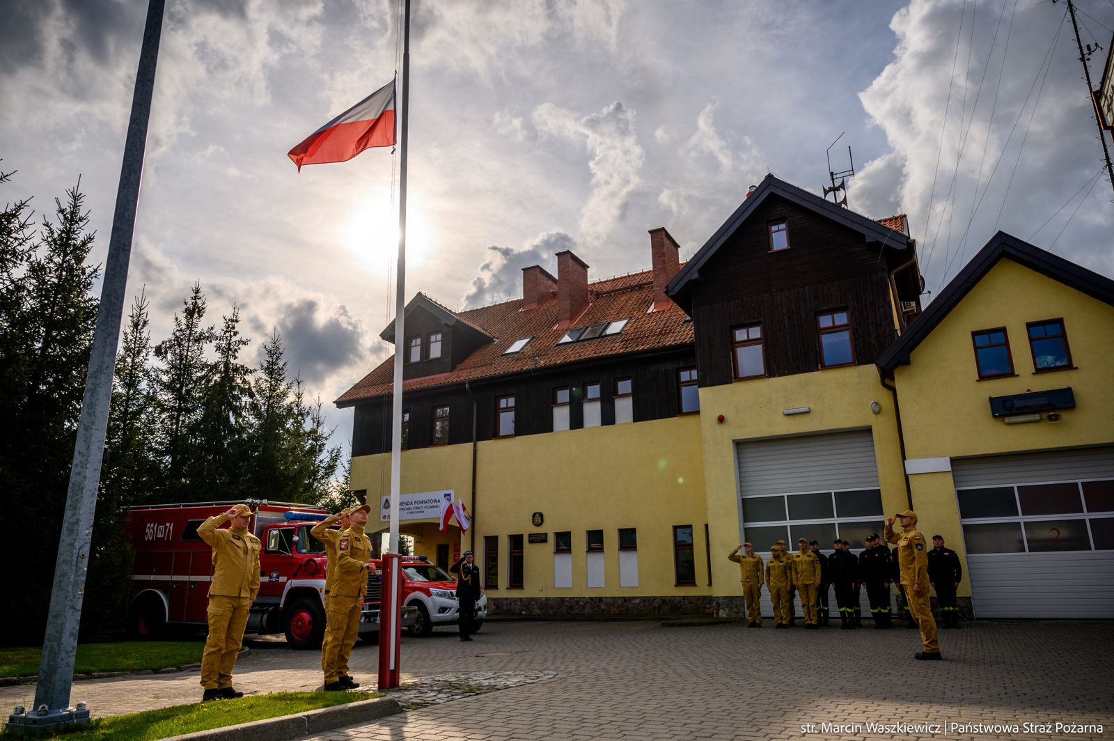 2 maja bieżącego roku na placu Komendy Powiatowej Państwowej Straży Pożarnej w Węgorzewie odbyła się uroczysta zmiana służby, podczas której dokonano podniesienia flagi państwowej na maszt oraz odegrano hymn narodowy z okazji Dnia Flagi Rzeczypospolitej Polskiej.