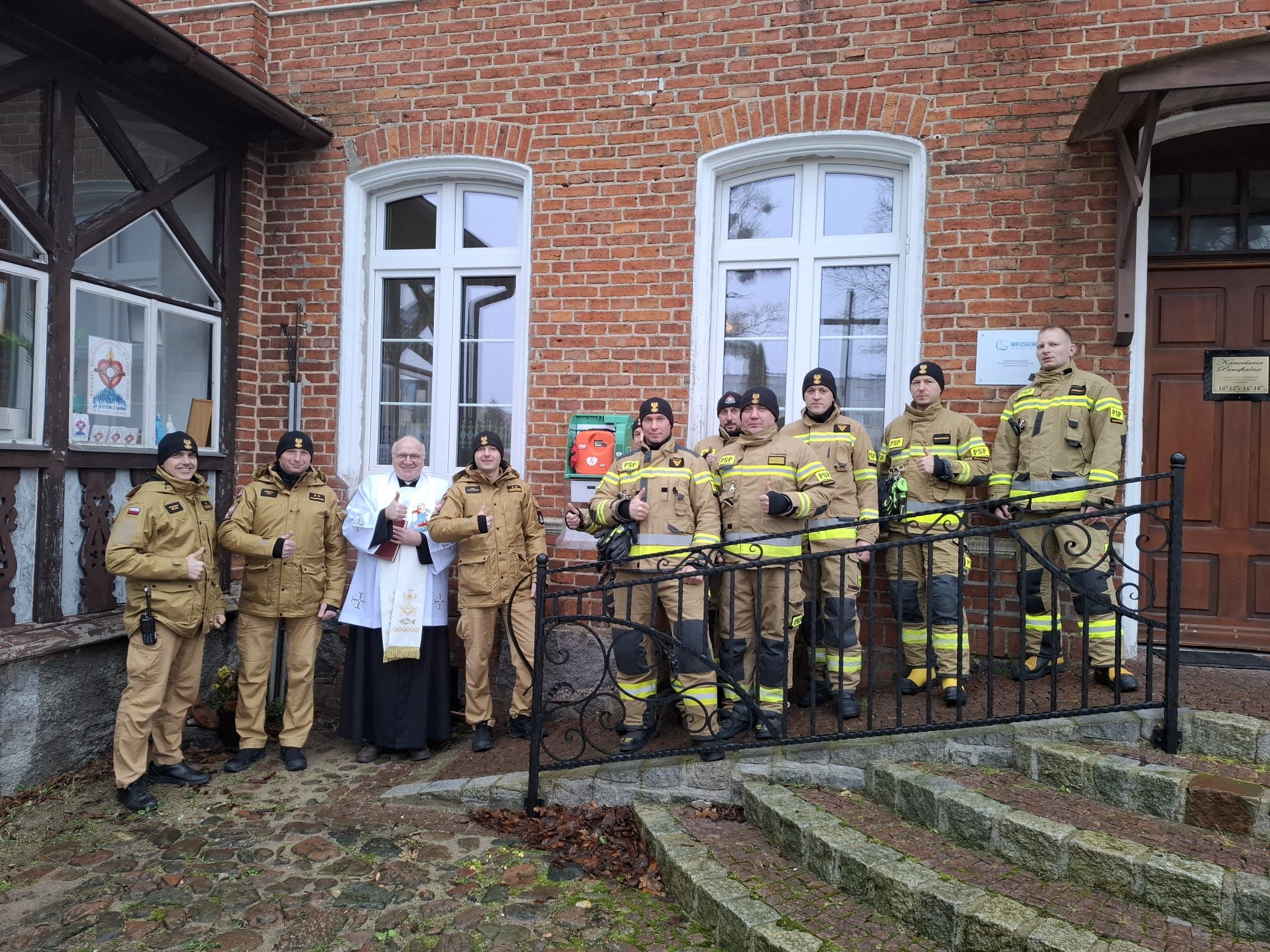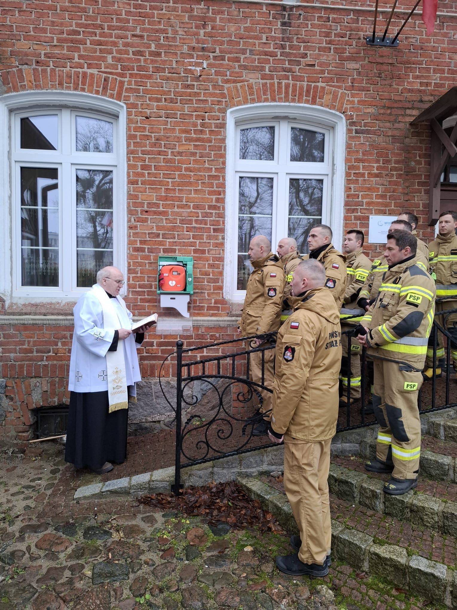 Uroczystego poświęcenia defibrylatora dokonał ks. proboszcz Krzysztof Mulewski. W wydarzeniu uczestniczyli również funkcjonariusze Komendy Powiatowej Państwowej Straży Pożarnej w Węgorzewie, na czele z komendantem bryg. Kamilem Pawlukanisem, podkreślając wagę współpracy pomiędzy lokalną społecznością a służbami ratunkowymi.